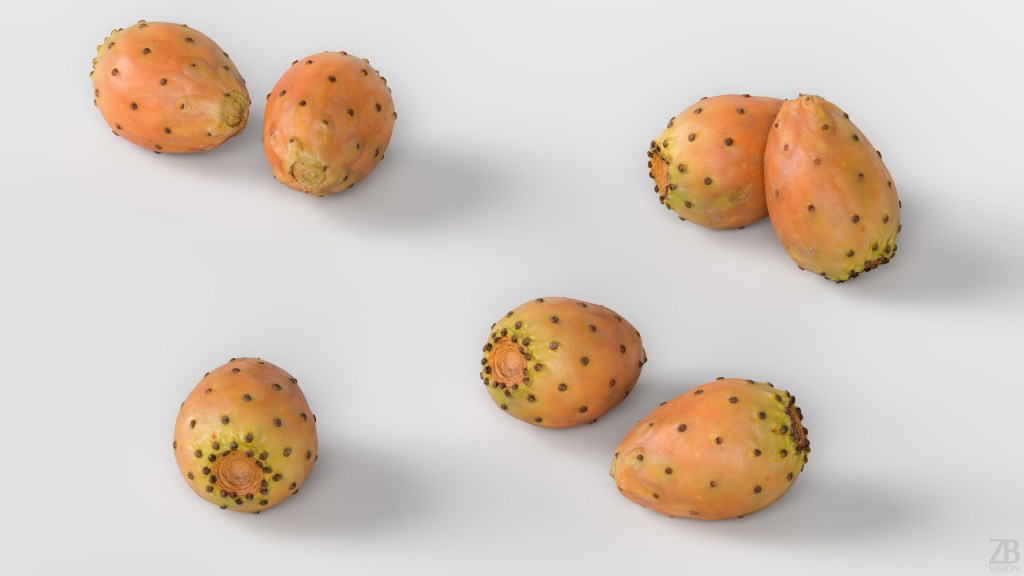 Prickly pear 3D model is available here: https://www.cgtrader.com/3d-models/food/fruit/opuntia-001