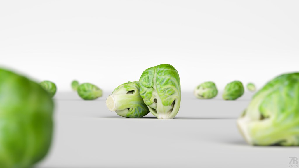 Brussels sprout 3D model is available here: https://www.cgtrader.com/3d-models/food/vegetable/brussels-sprout-001