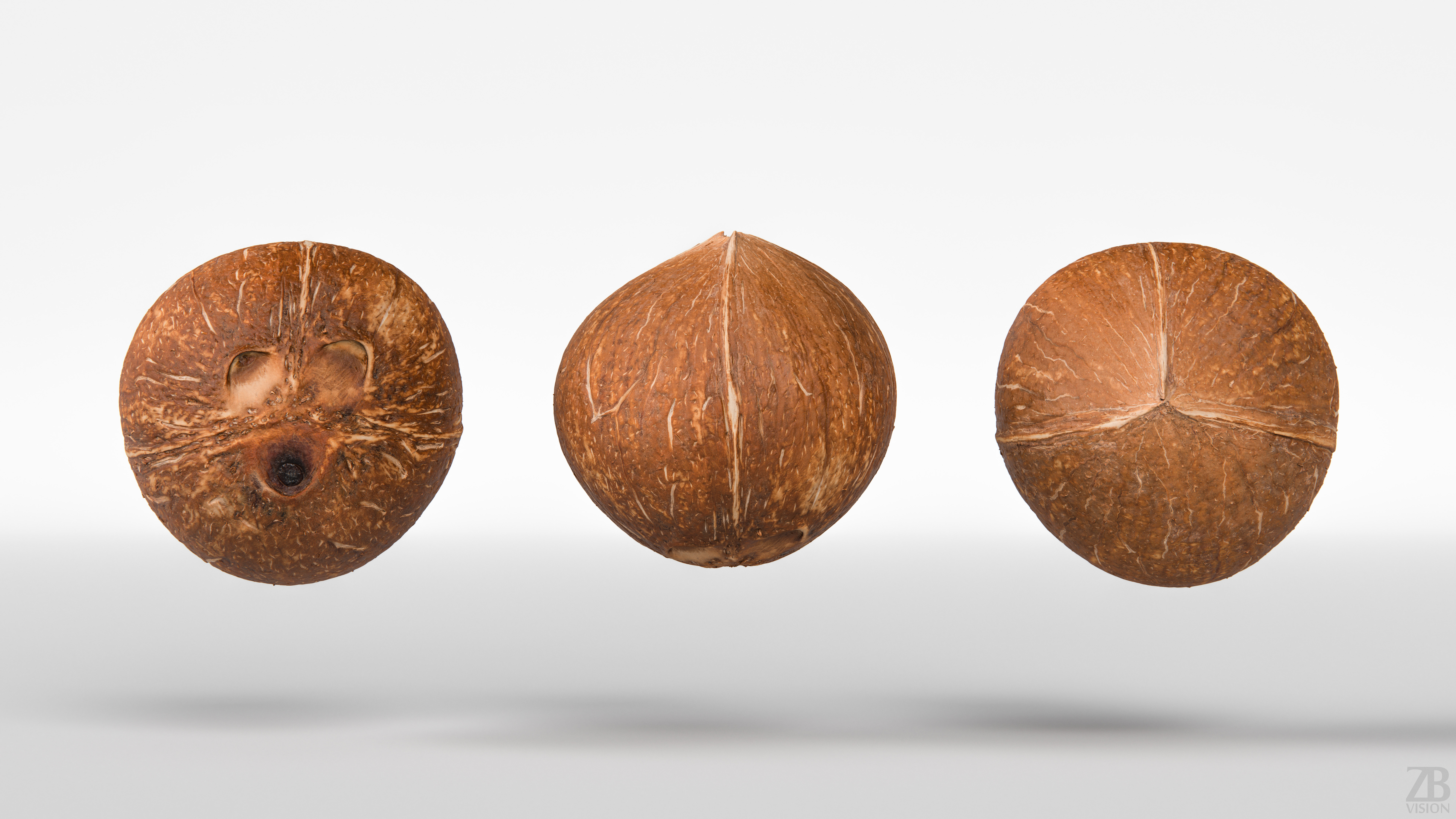 The coconut model is presented as single mesh in 3 subdivision levels: low, middle and high. Meshes are quad based. The polycounts are: 4K, 76K and 1217K . High detail model included in .max, .fbx, .c4d and .obj formats. Raw scan mesh also included in .obj.
