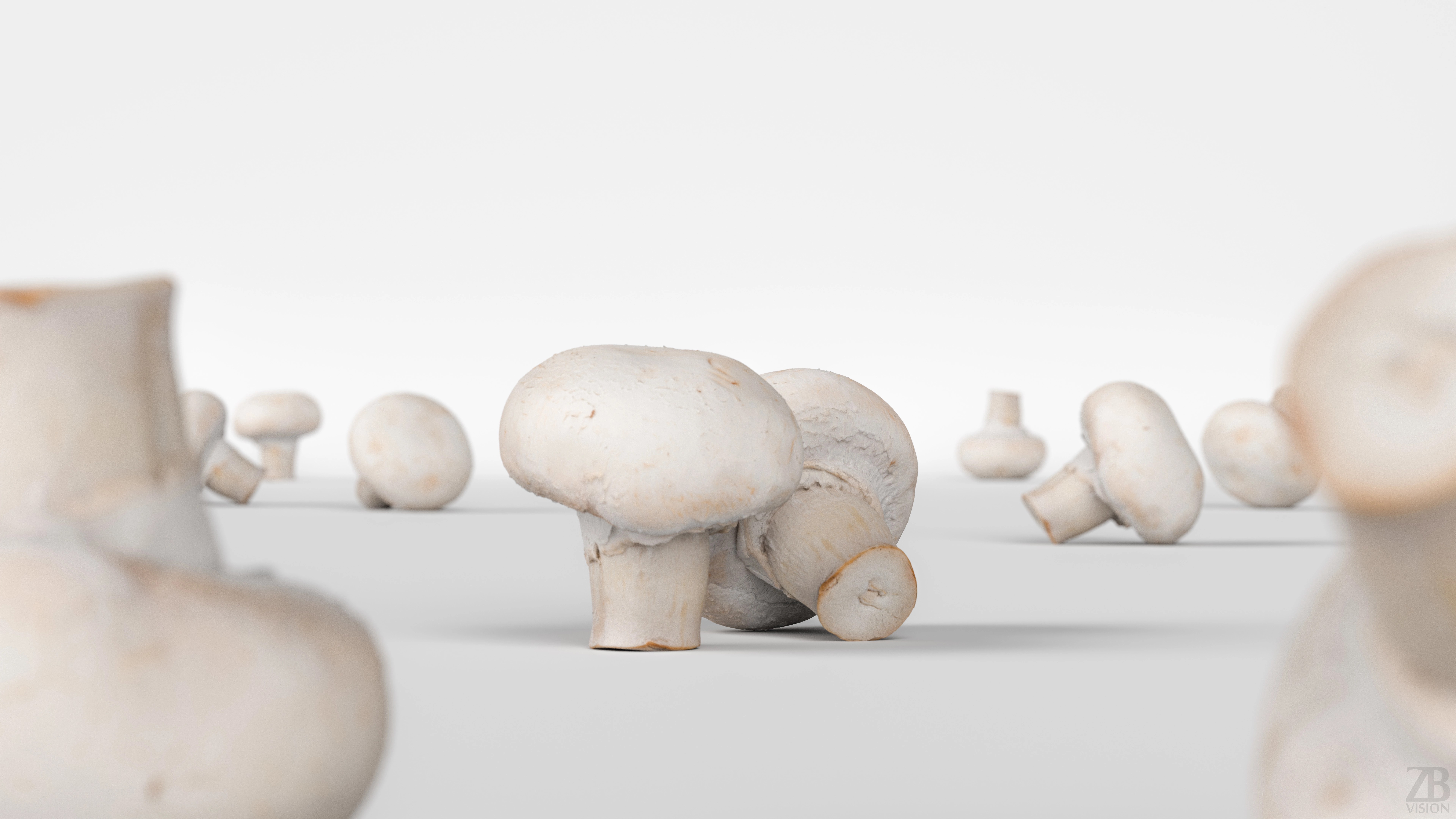 Photorealistic 3D model of white mushroom, aka Agaricus bisporus aka champignon.