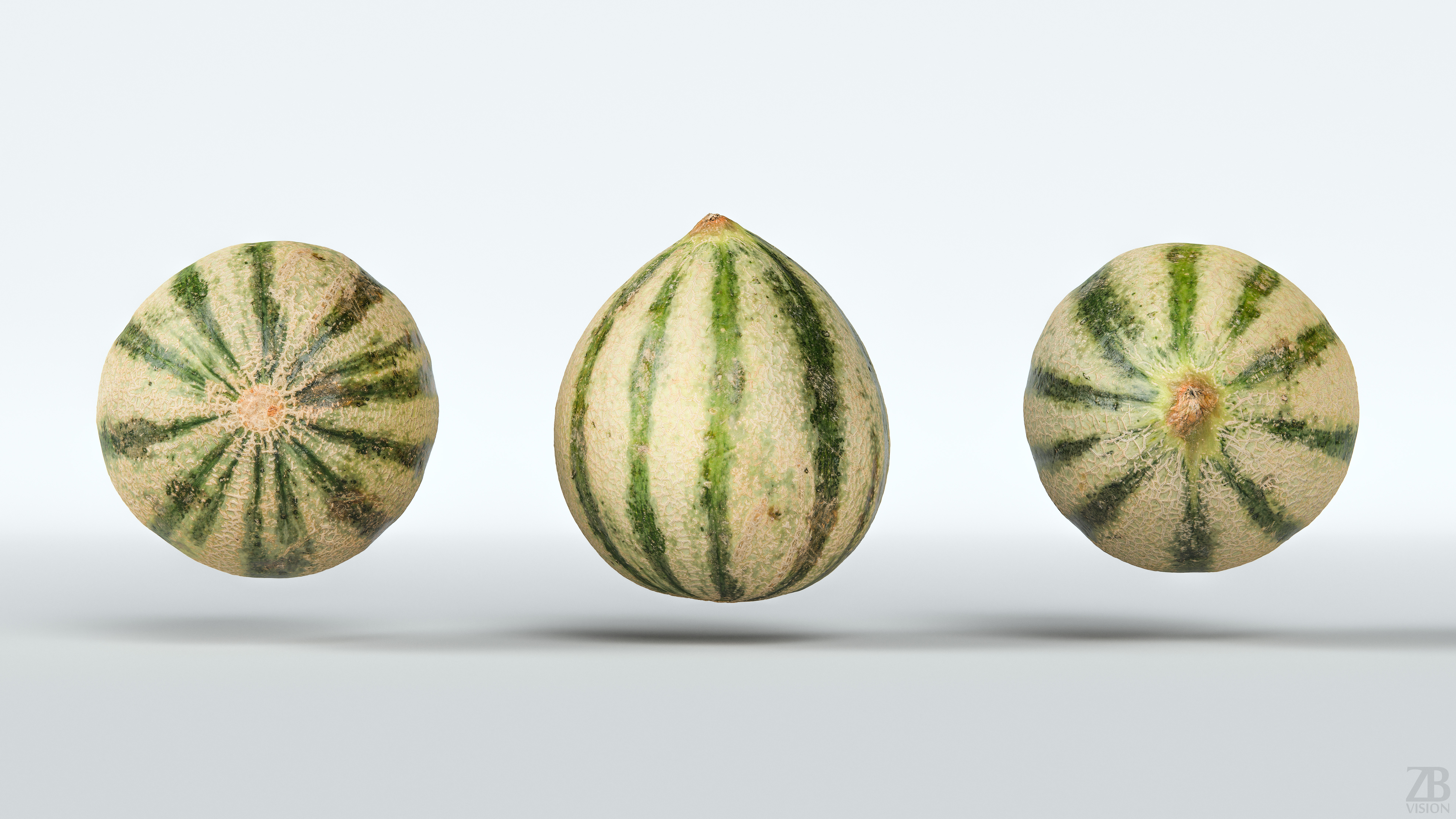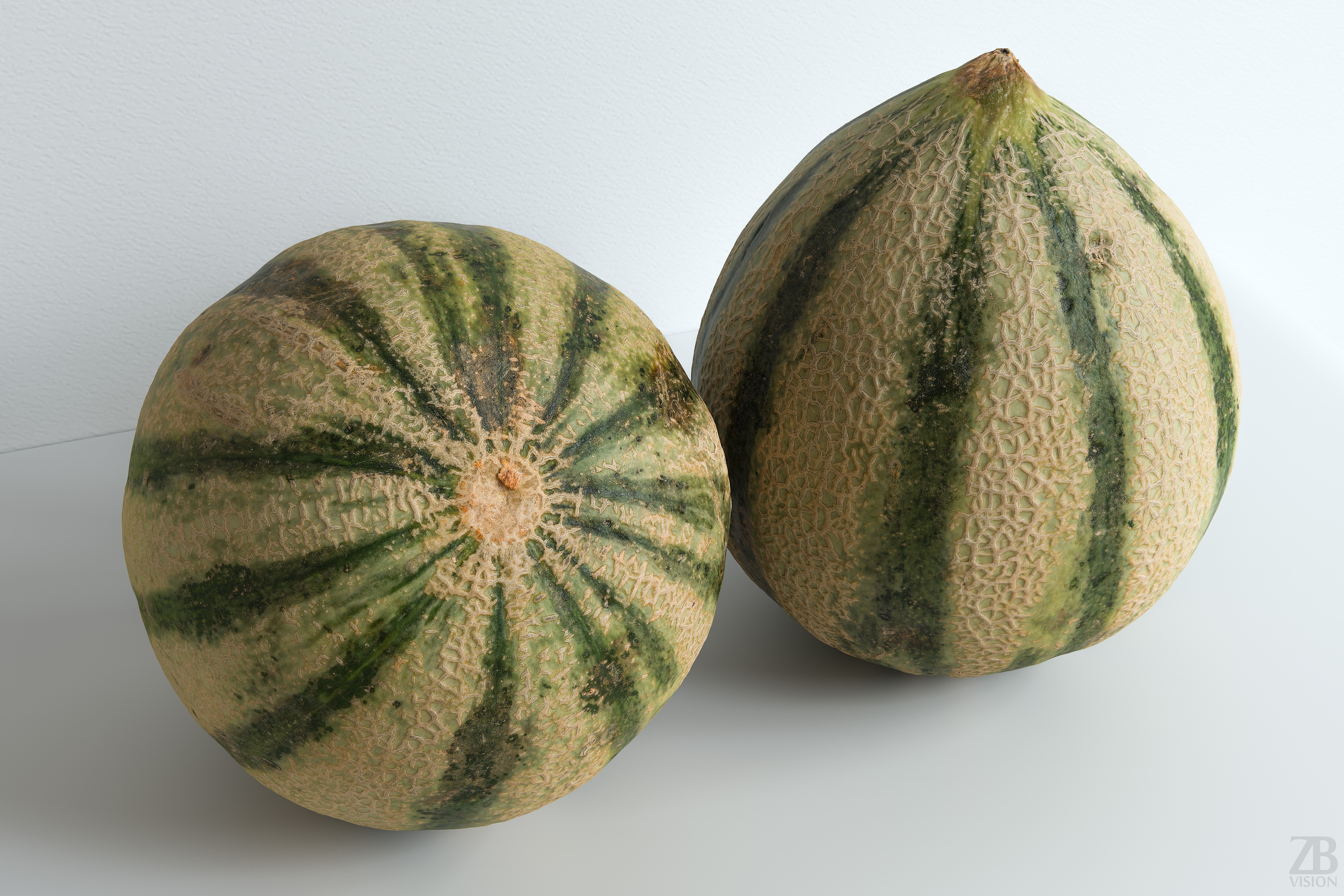 This is a 3d model of a melon, cantaloupe variety. It was scanned and prepared for photorealistic renderings, close-ups, stills and animation. The melon model is ready to be inserted in your scene out of the box.