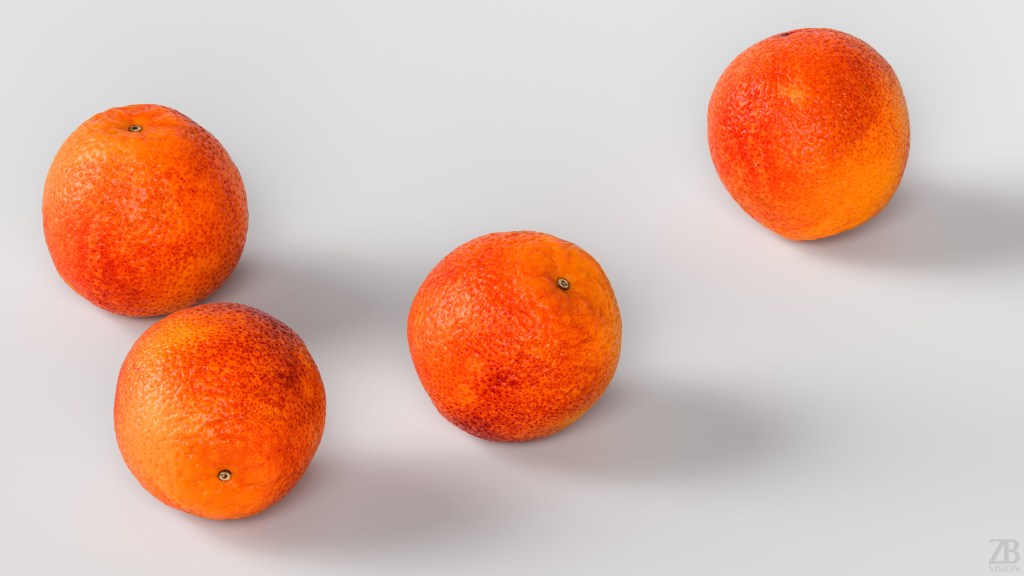 This is a 3d model of a blood orange, Dracula Australia variety. It was scanned and prepared for photorealistic renderings, close-ups, stills and animation. The orange model is ready to be inserted in your scene out of the box.