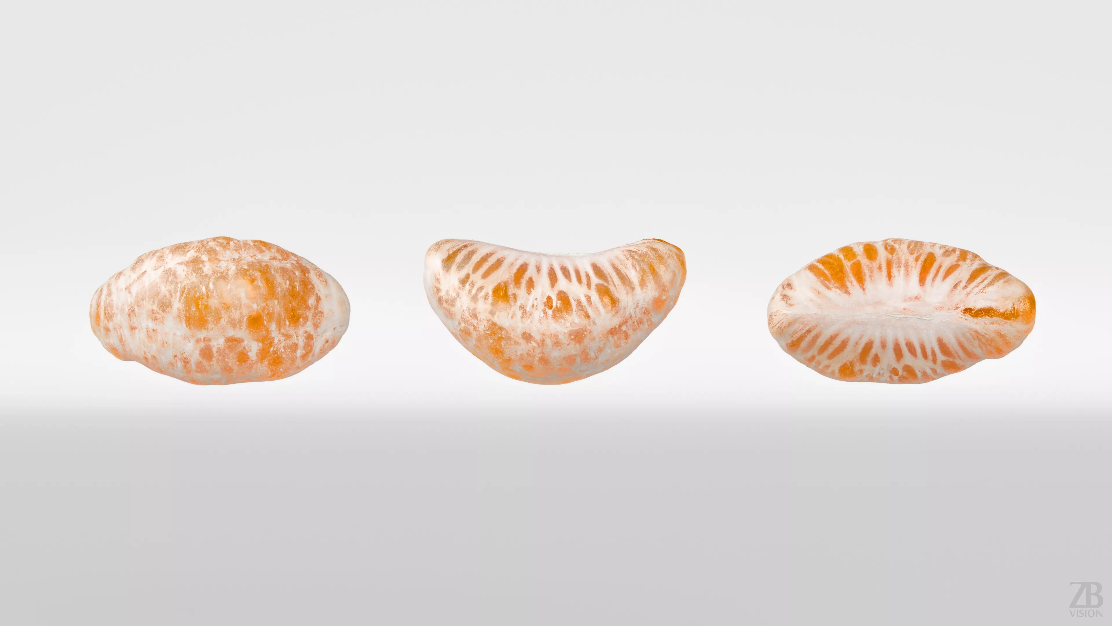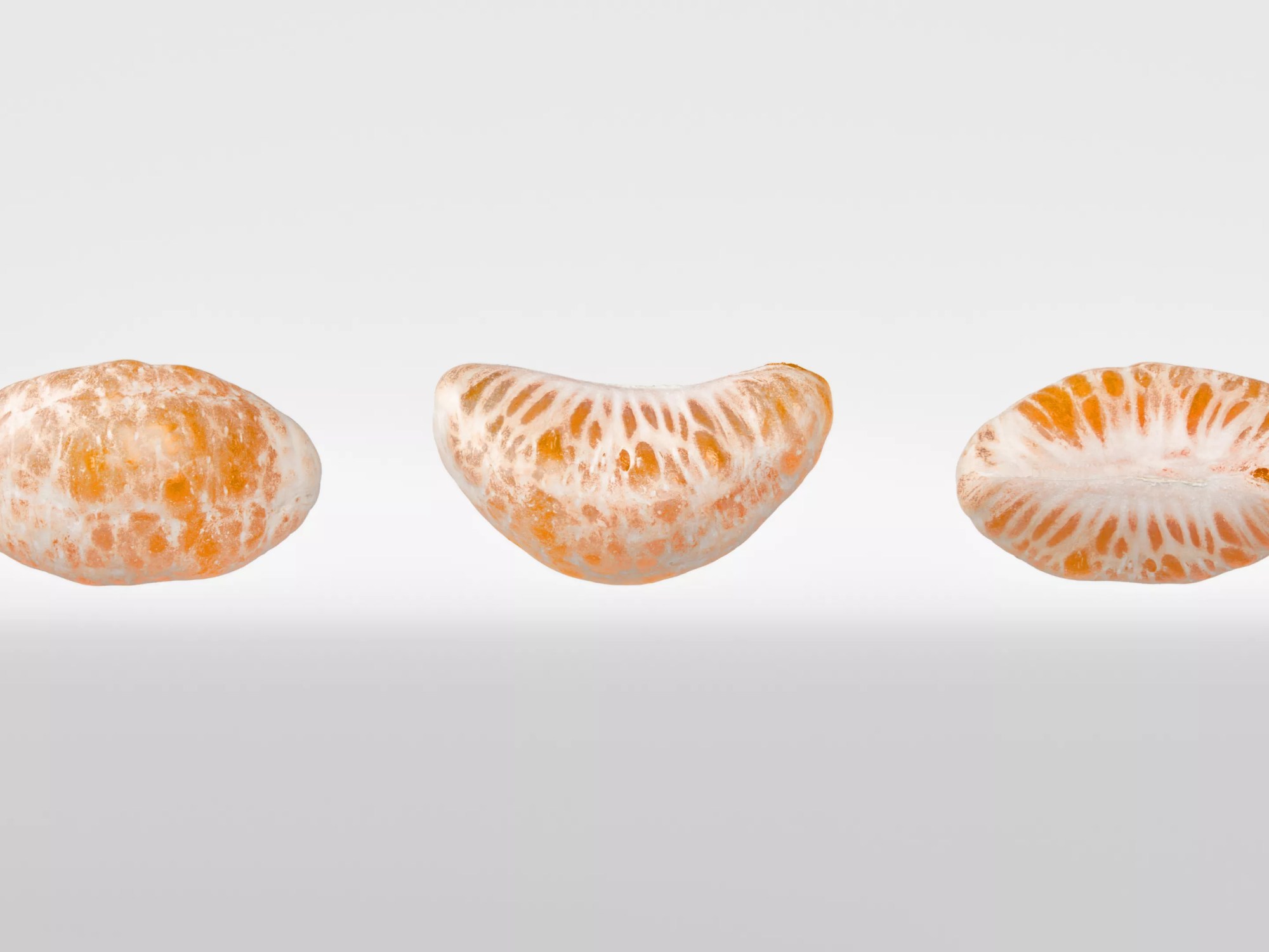 This is a 3d model of a clementine carpel, clemenules variety. It was scanned and prepared for photorealistic renderings, close-ups, stills and animation. The clementine model is ready to be inserted in your scene out of the box.