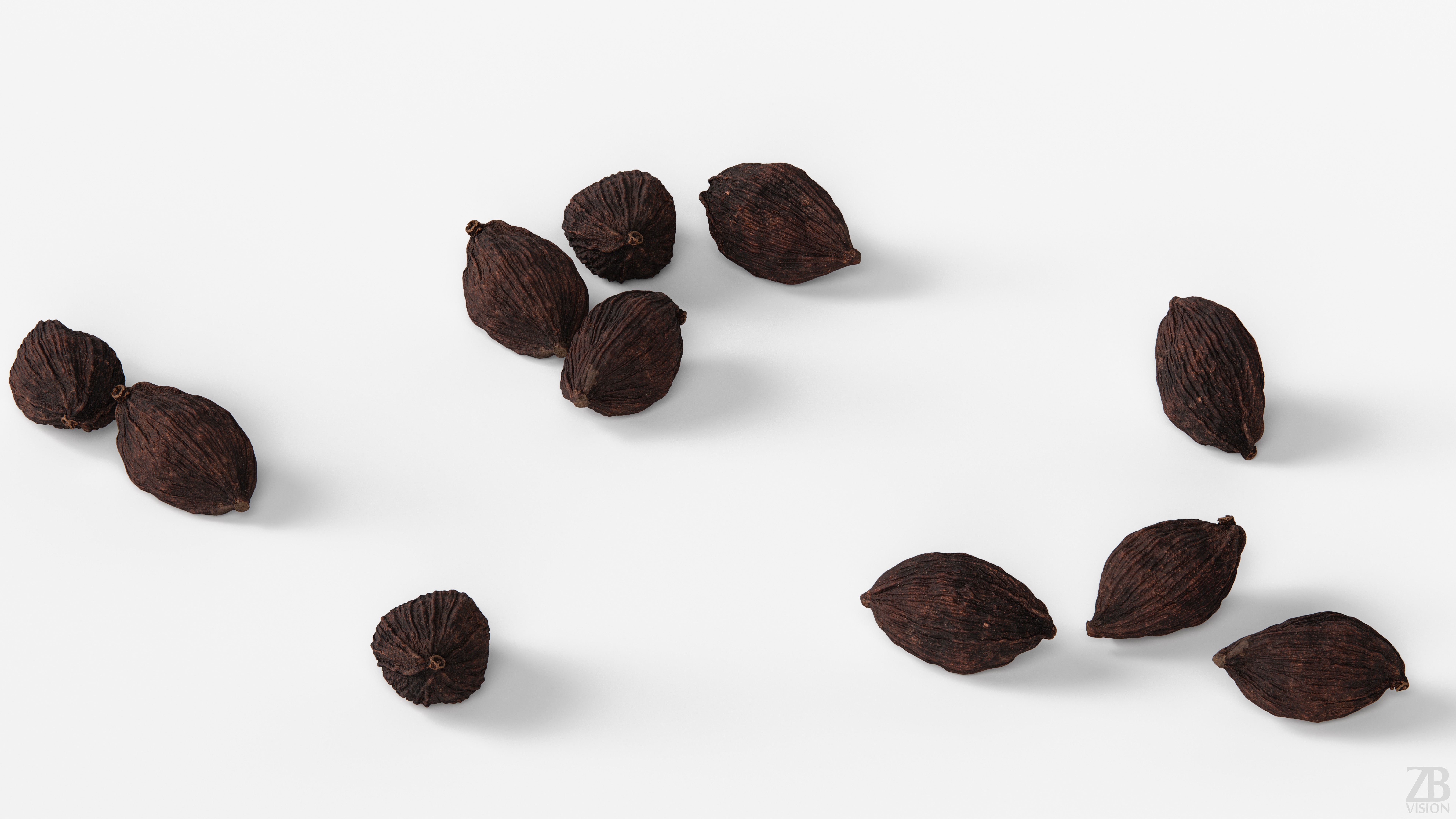 This is a 3d model of a cardamom, black variety. It was scanned and prepared for photorealistic renderings, close-ups, stills and animation. The cardamum model is ready to be inserted in your scene out of the box.