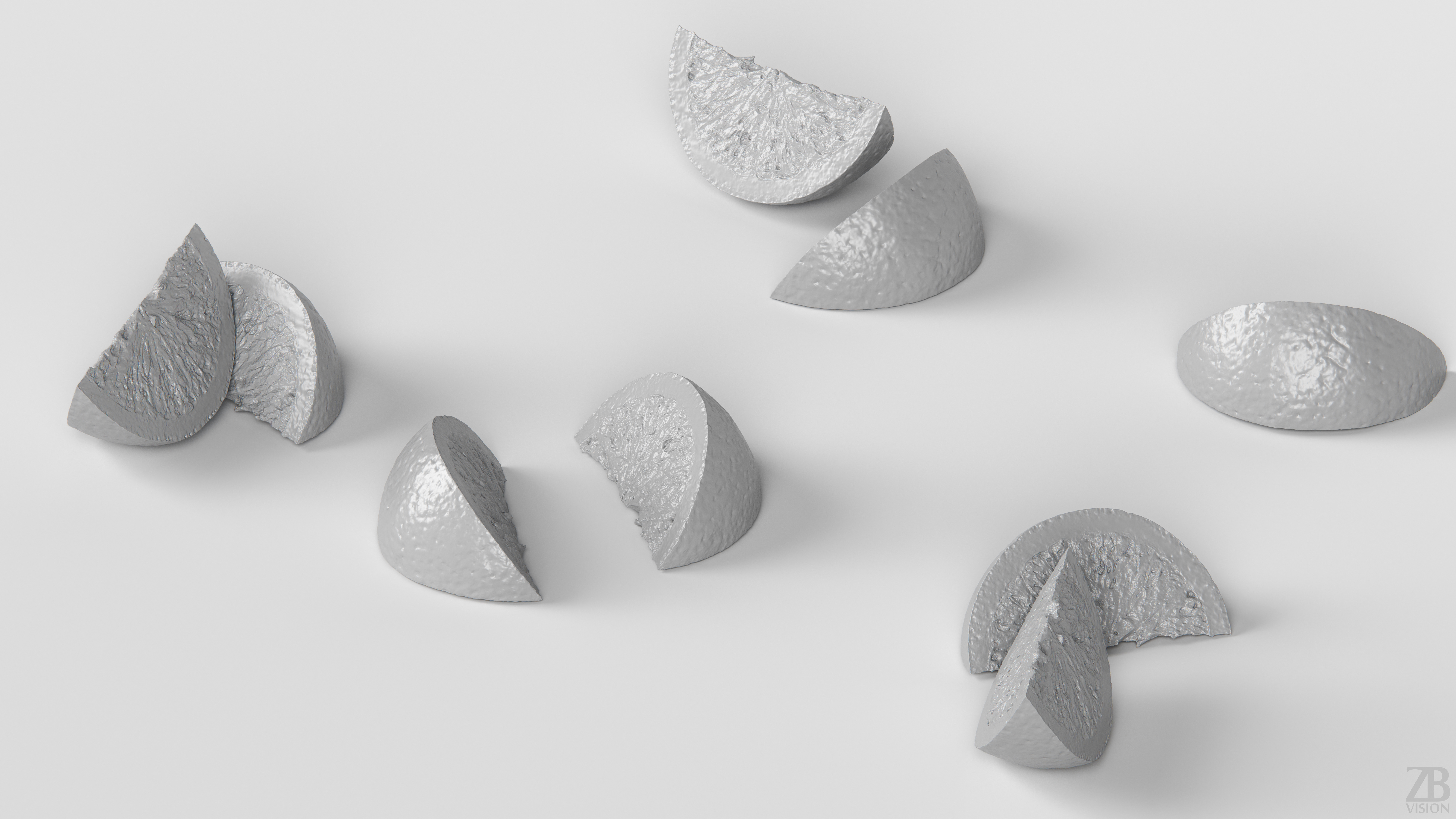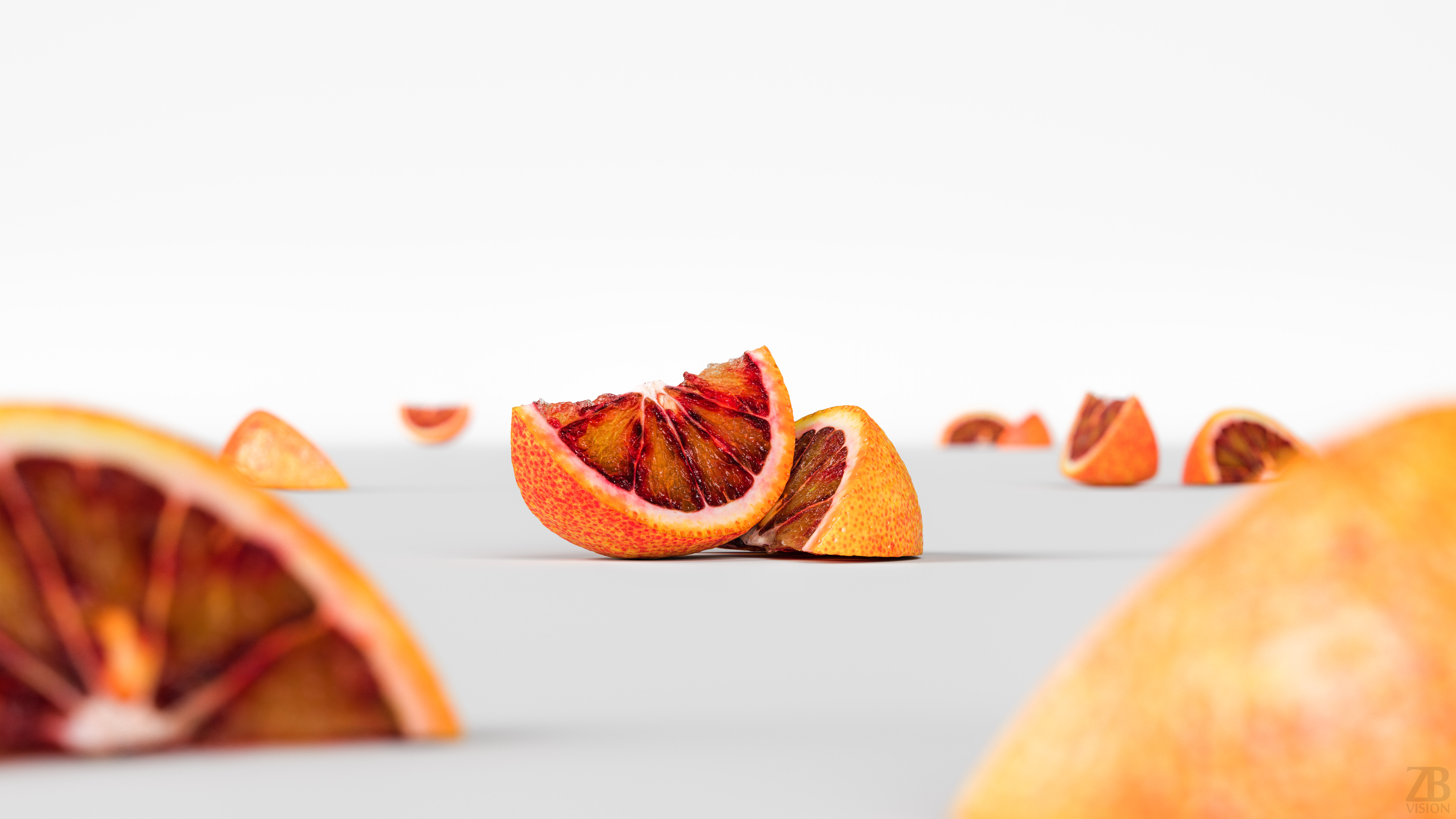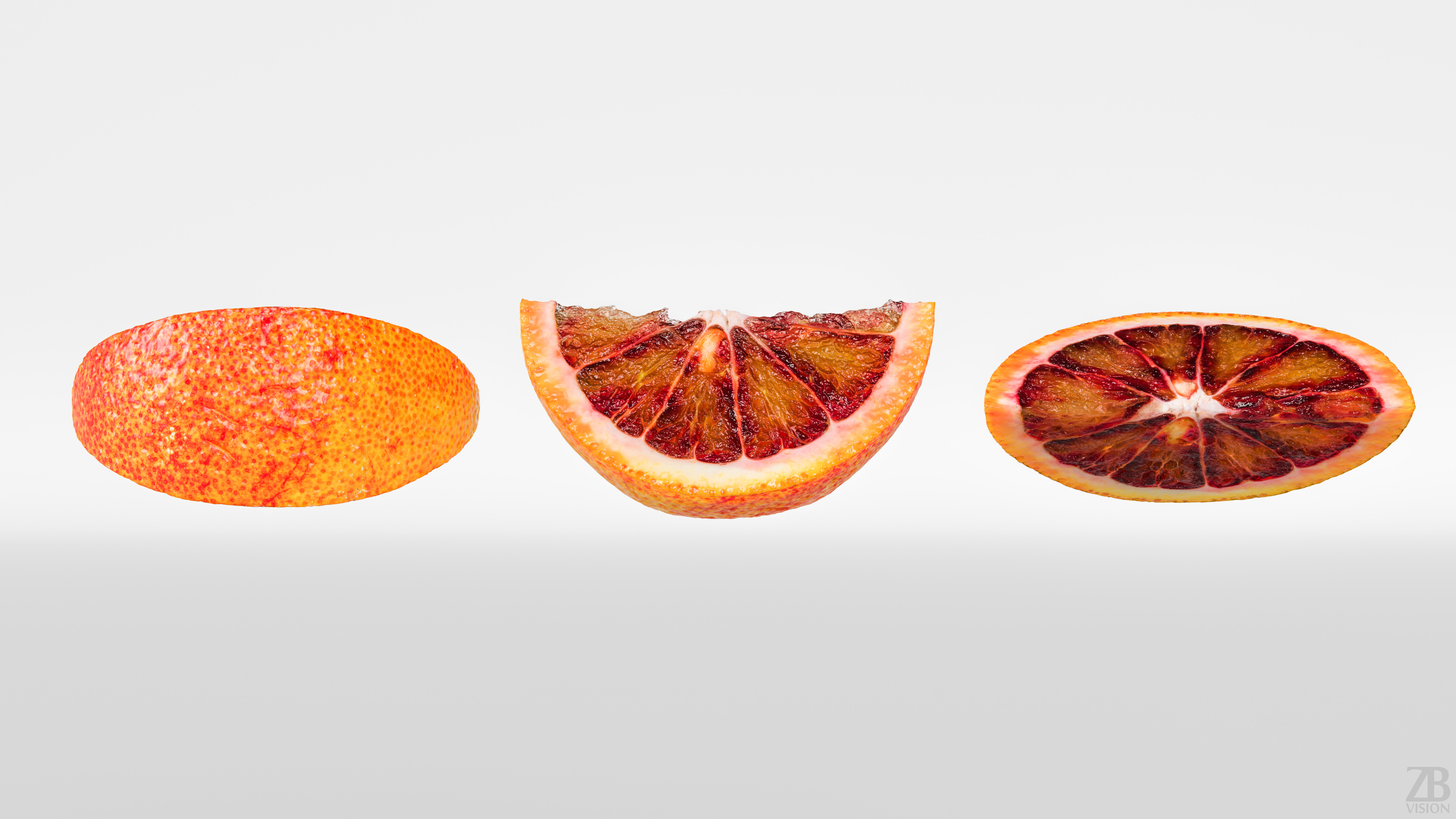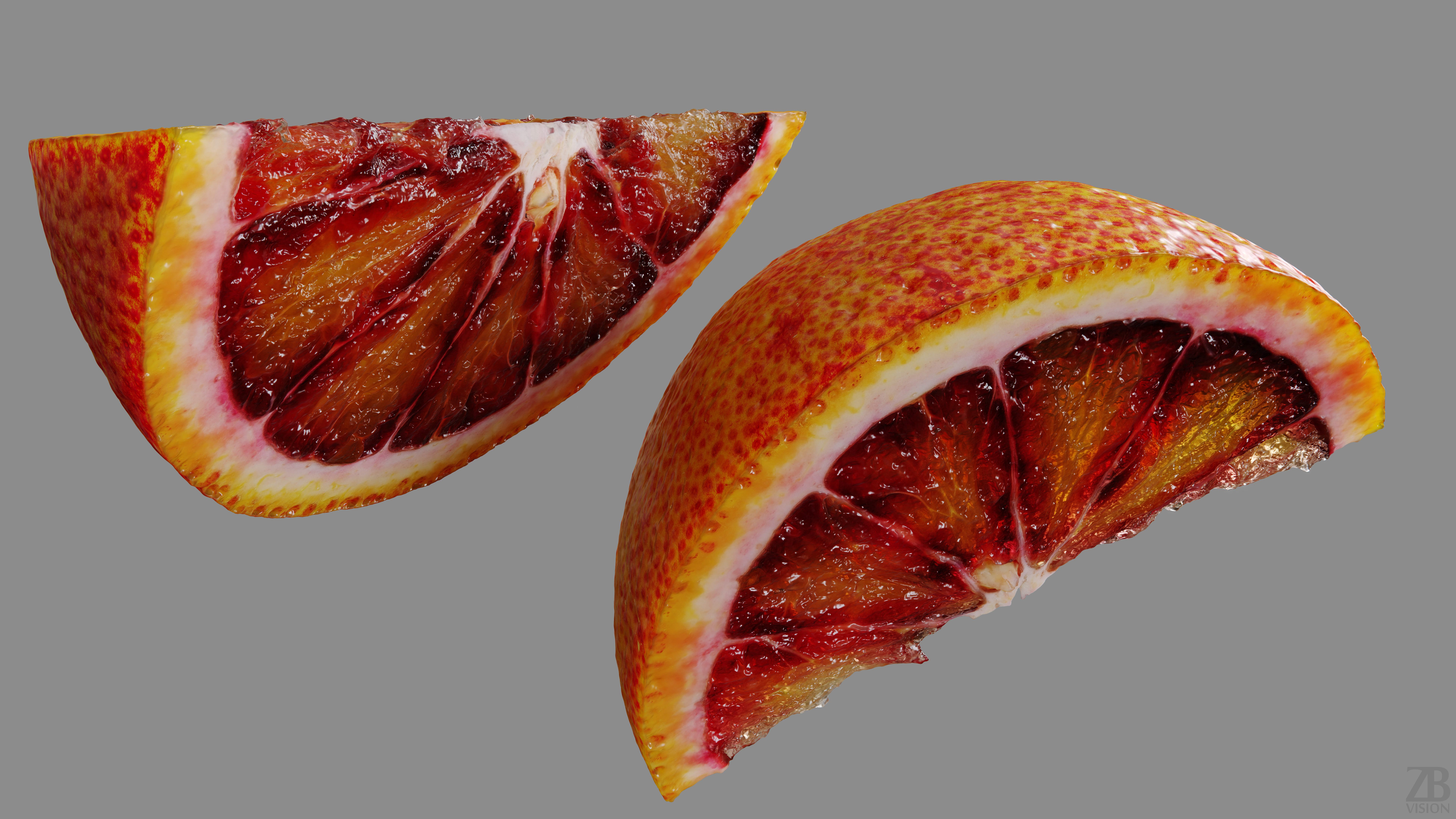 This is a 3d model of a blood orange piece, Dracula Australia variety. It was scanned and prepared for photorealistic renderings, close-ups, stills and animation. The orange model is ready to be inserted in your scene out of the box.