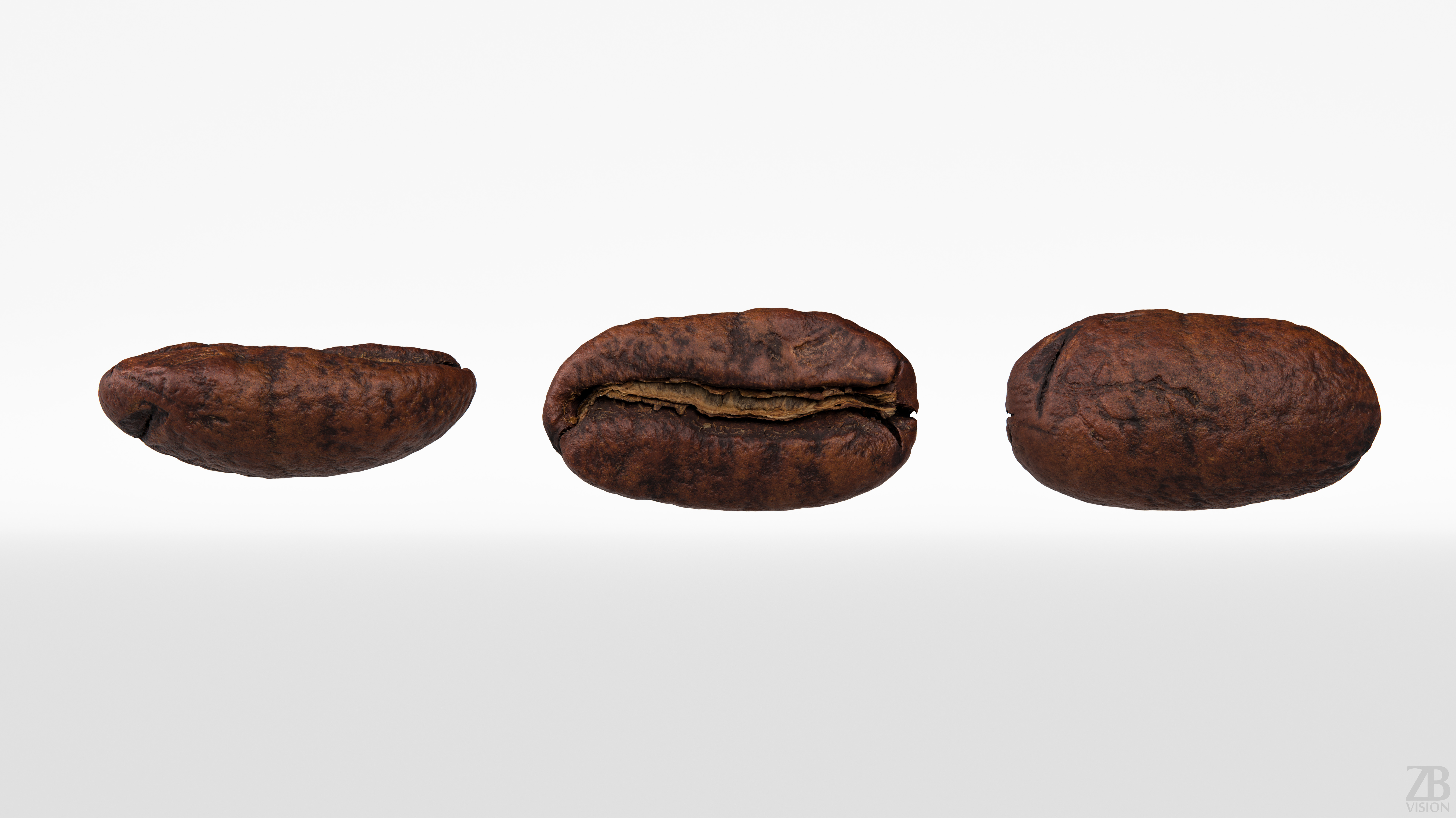 The coffee bean model is presented as single mesh in 3 subdivision levels: low, mid and high. Meshes are quad based. The polycounts are: 8K, 131K and 2106K . High detail model included in .max, .fbx and .obj formats. Raw scan in .obj is provided.