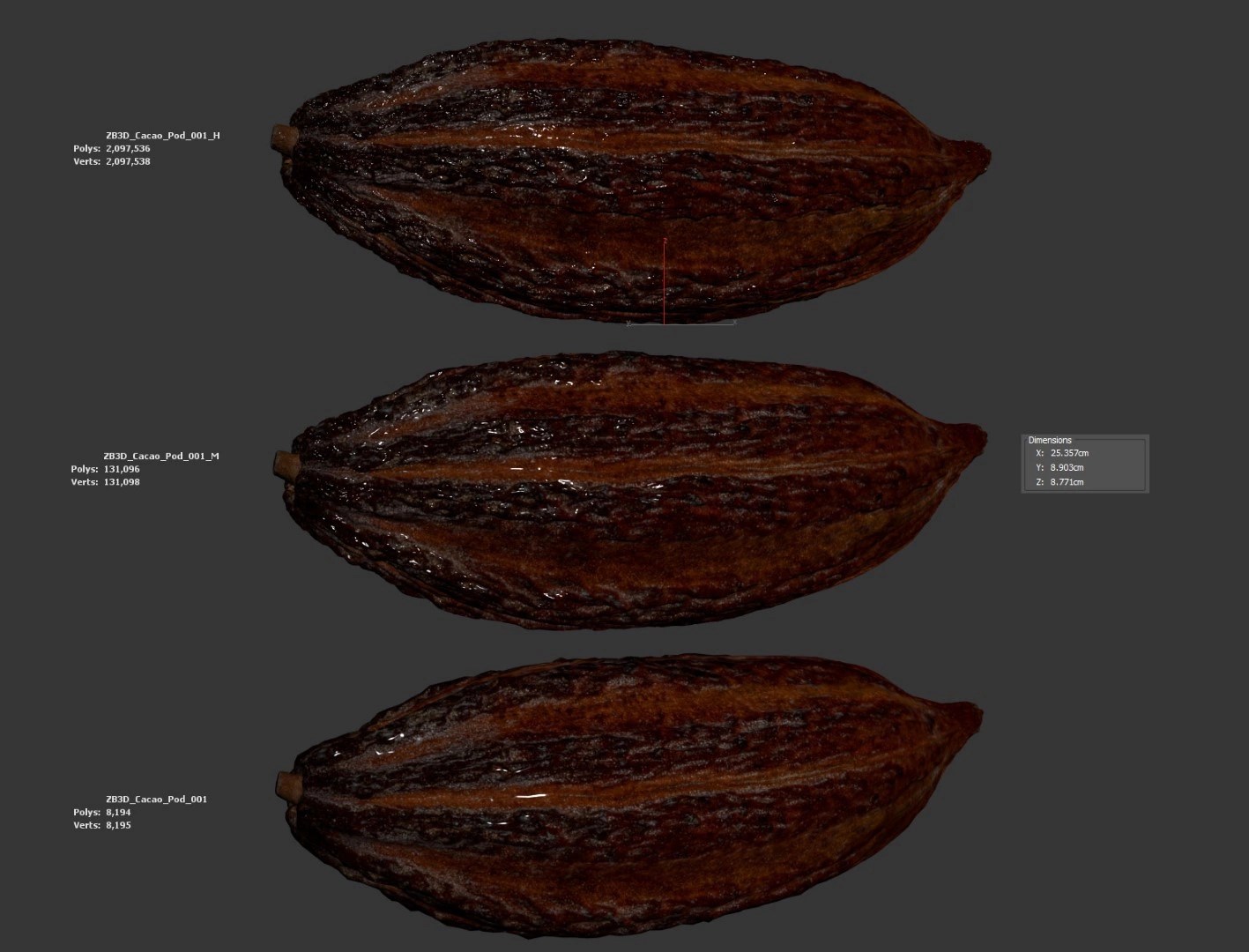 Enhance your visualizations, product designs, or still-life projects with this ultra-realistic 3D cocoa model. Meticulously photogrammetry scanned and textured, it boasts multiple levels of detail (8K, 131K, and 2097K polycounts) for close-ups and broader scenes.
