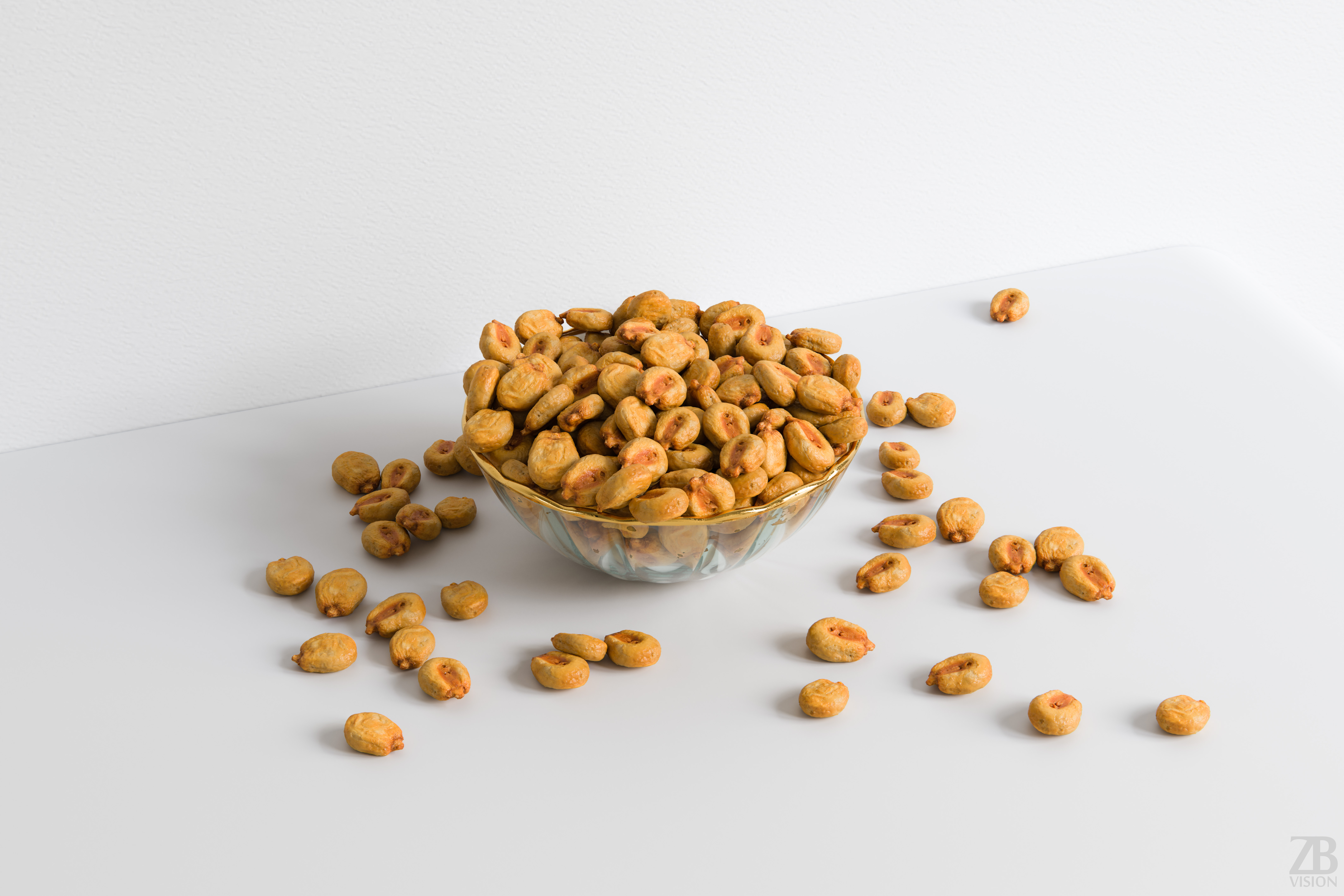 This is a 3d model of a fried and salted corn kernel. It was scanned and prepared for photorealistic renderings, close-ups, stills and animation. The corn snack model is ready to be inserted in your scene out of the box.