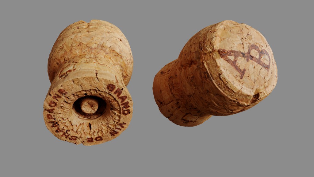 This is a 3d model of a champagne bottle cork. It was scanned and prepared for photorealistic renderings, close-ups, stills and animation. The cork model is ready to be inserted in your scene out of the box.