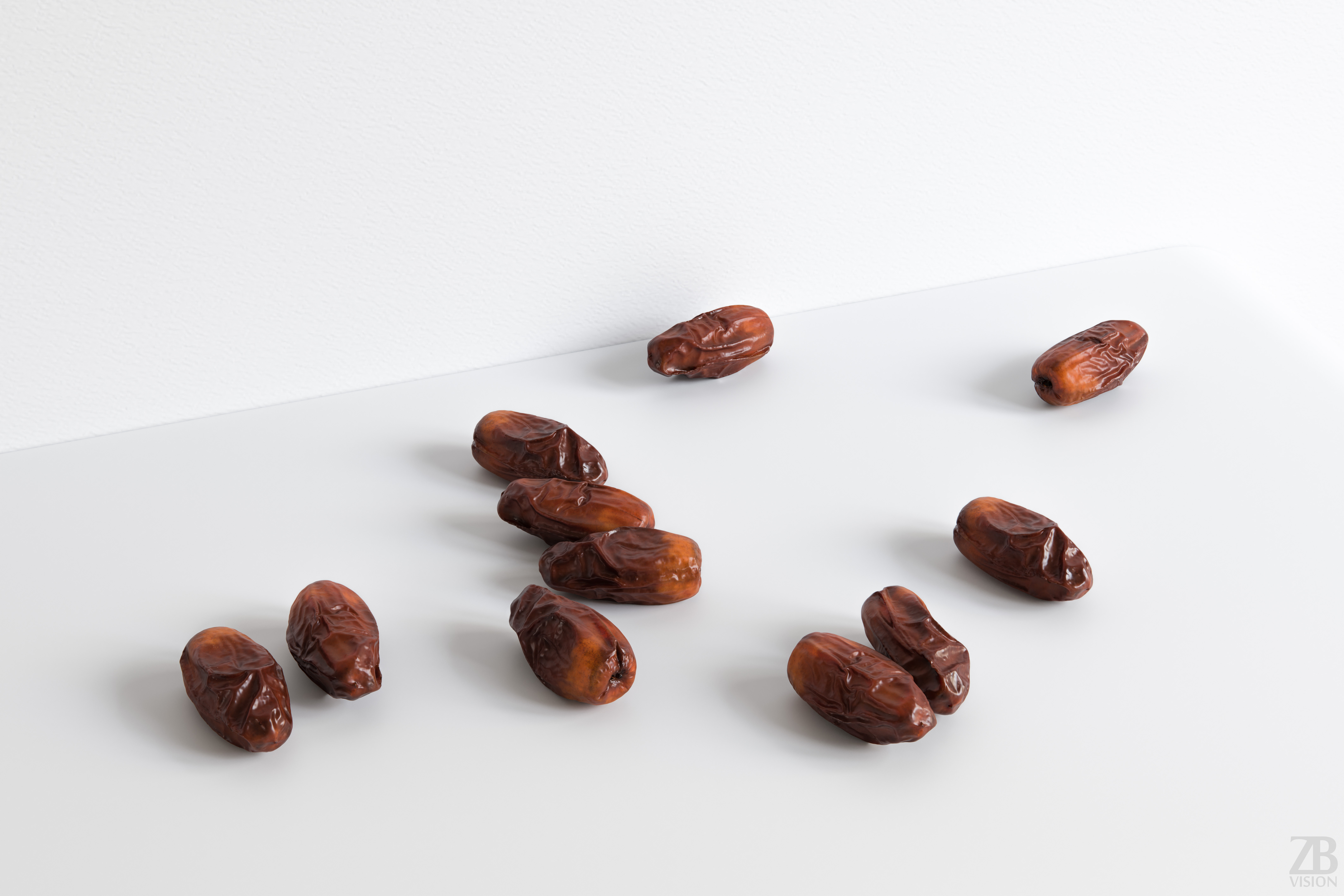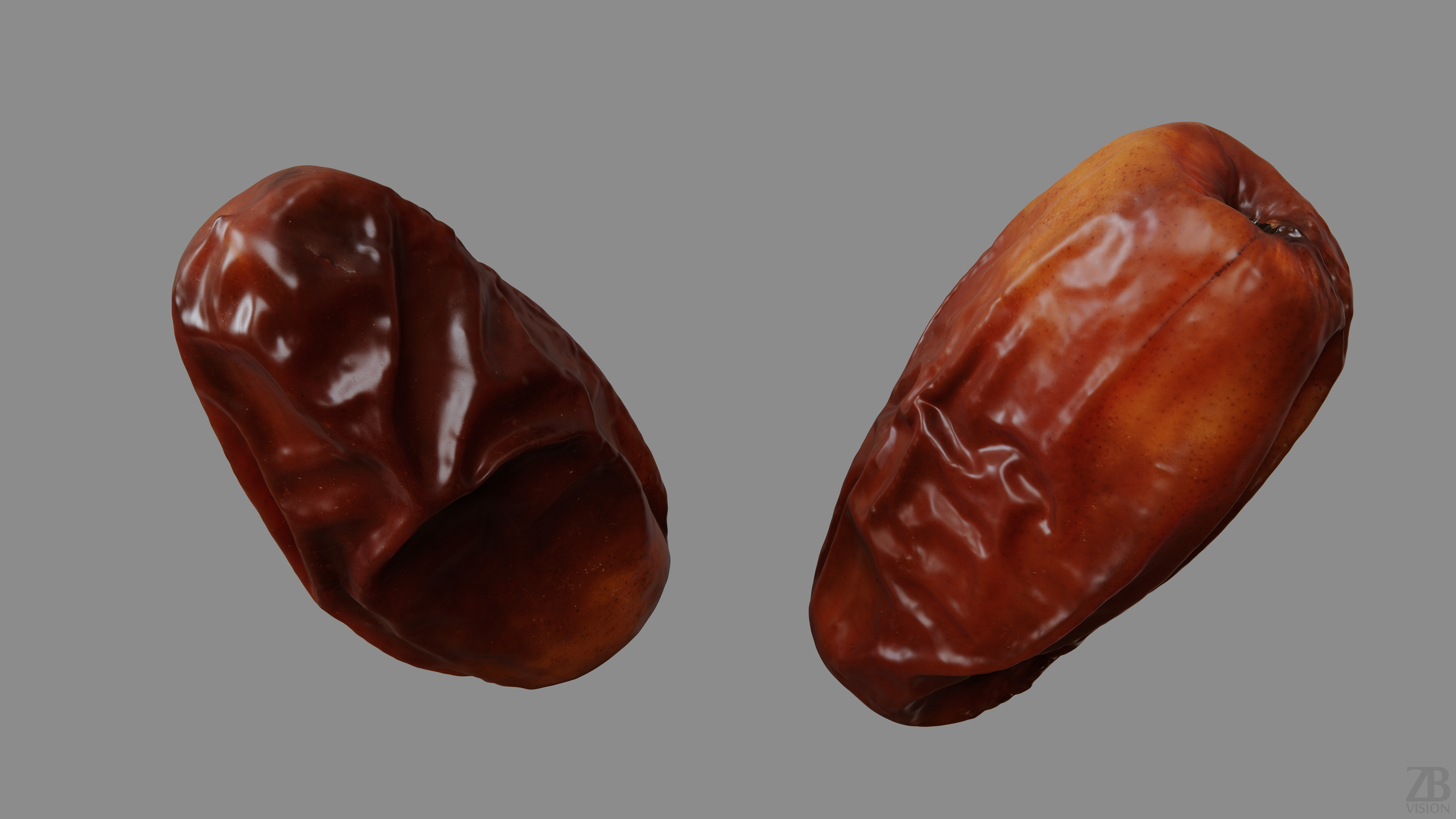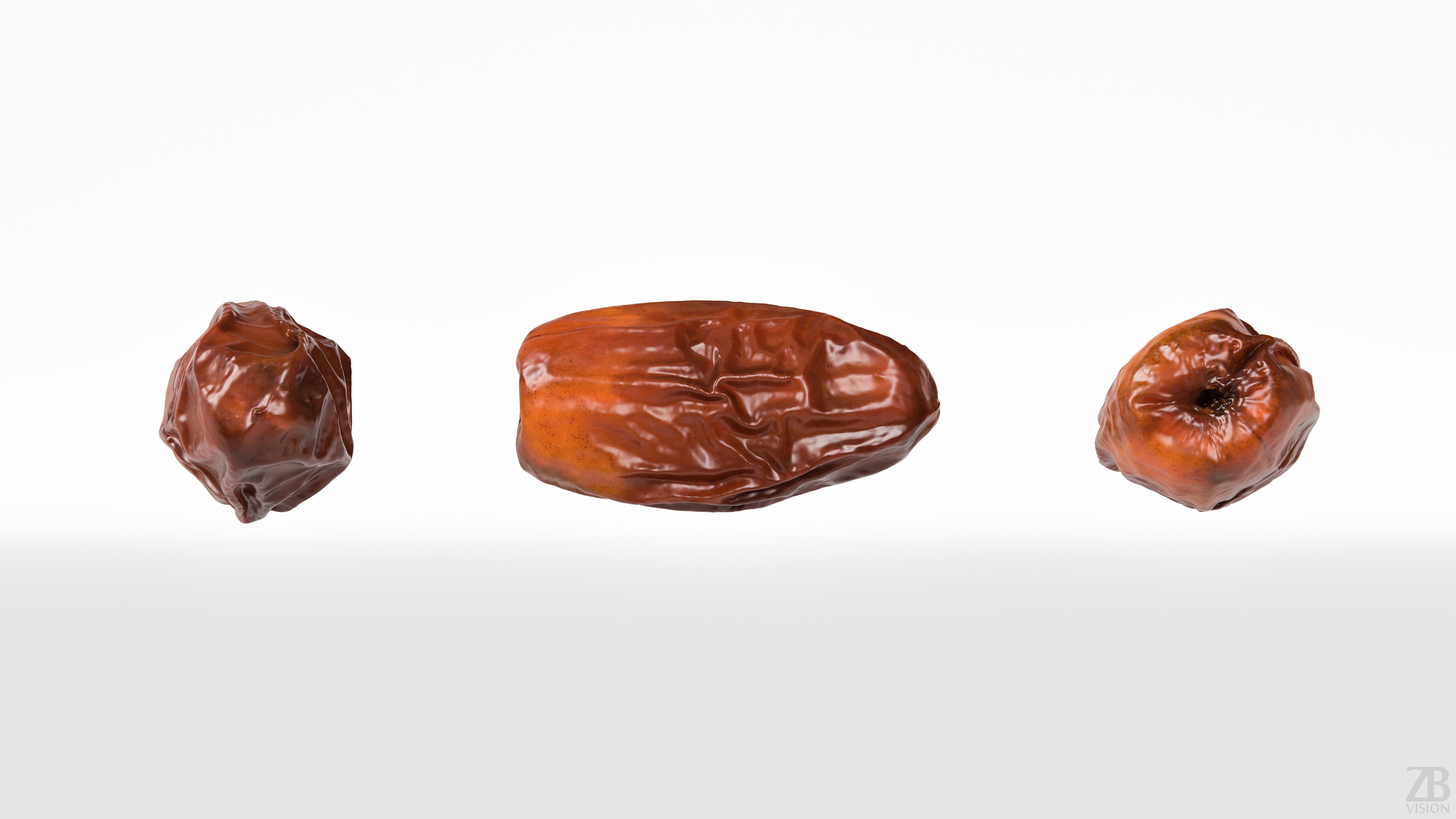 Dried date 3D model is available here: https://www.cgtrader.com/3d-models/food/fruit/date-006
