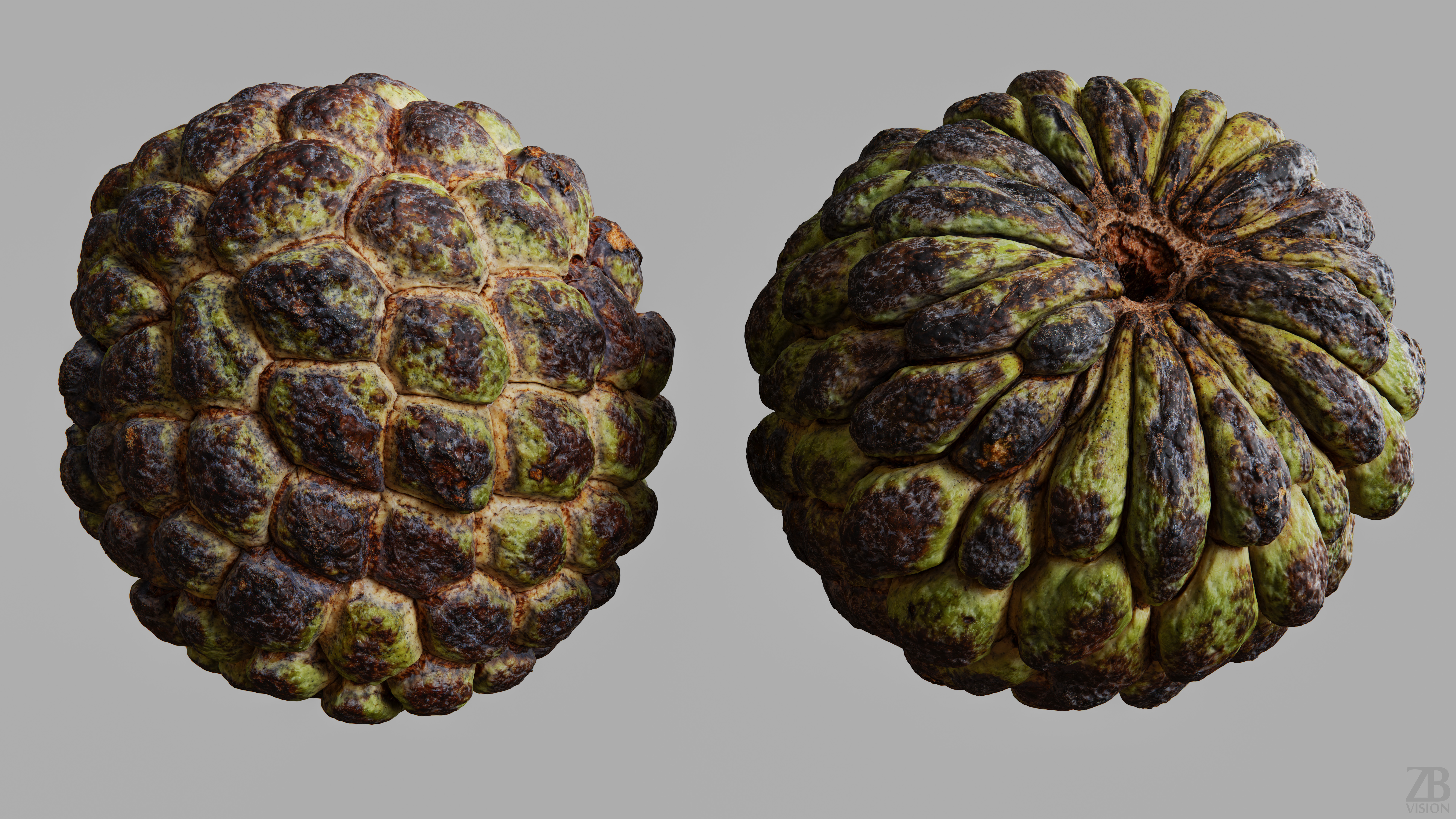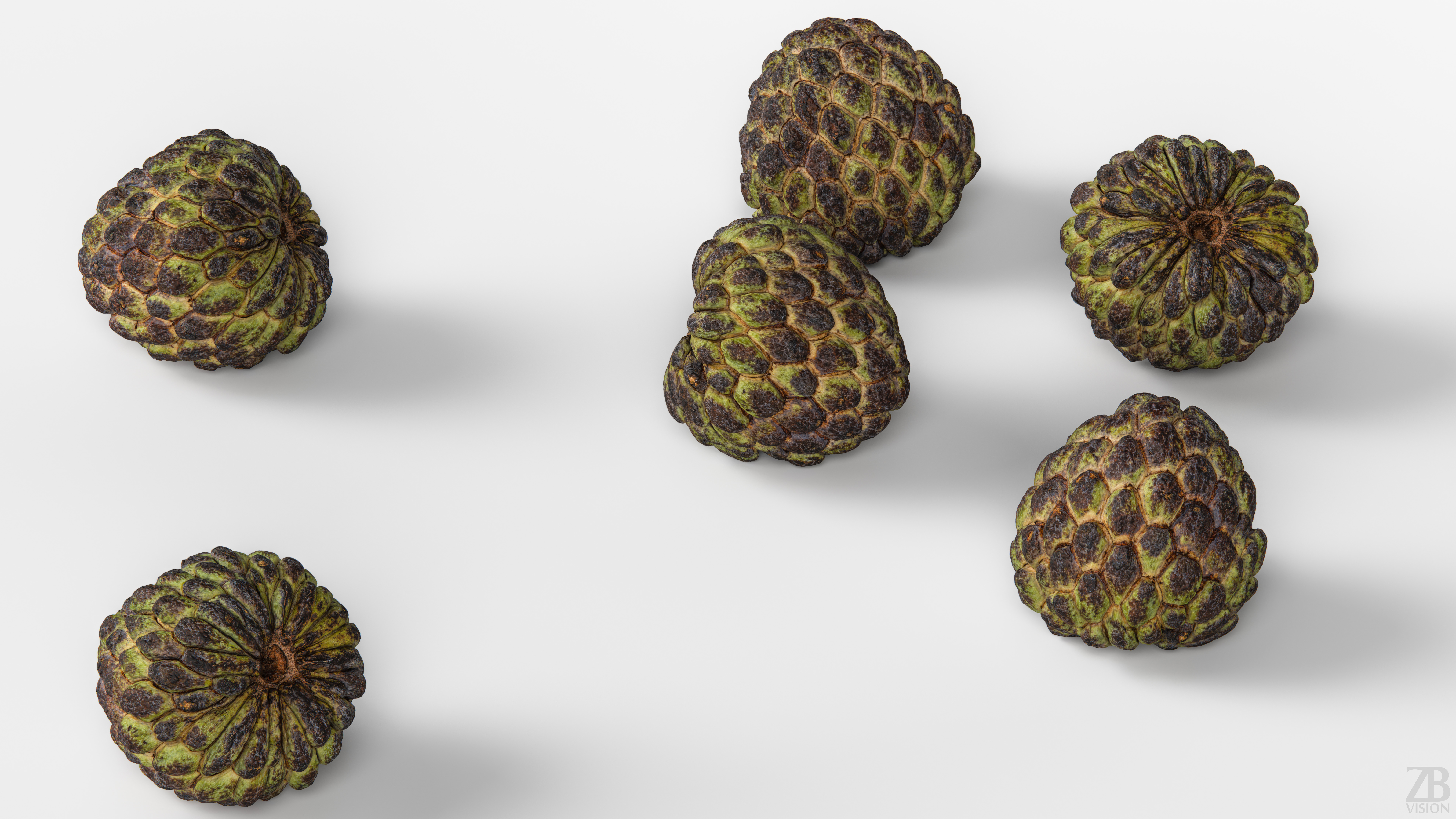 Cherimoya Custard Apple 3D model is available here: https://www.cgtrader.com/3d-models/food/fruit/cherimoya-003