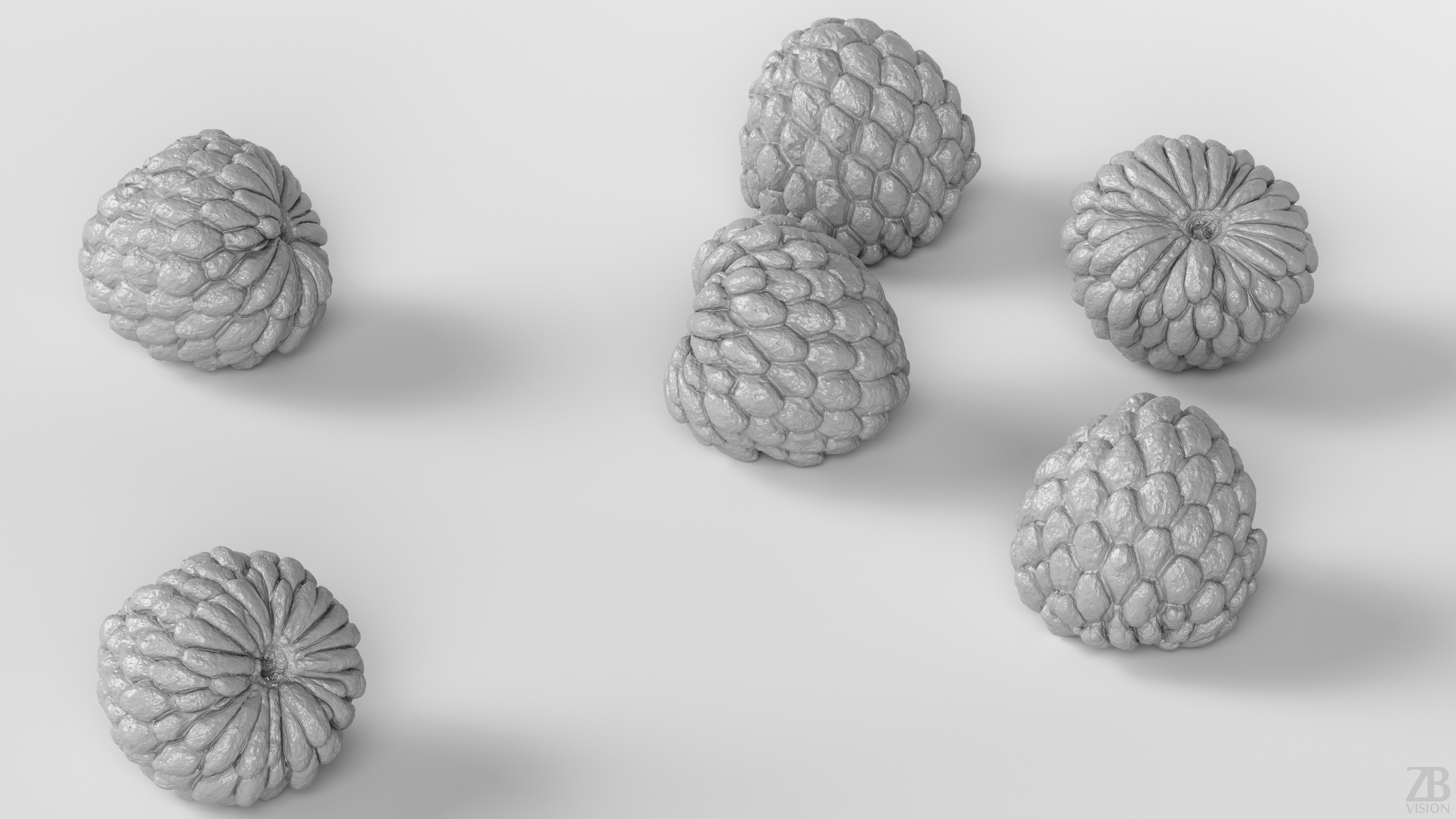 All preview images were rendered with Corona Renderer. You will get only the chirimuya and not the scenes used for the preview renders. Please also take into consideration that the preview images are the result of the post-production and the look of cherimola 3d model in your scene may differ due to the specific settings of your own scene. Product is ready to render out-of-the-box. Please note that the lights, cameras, and any background not described above objects are not included in the product. The model is clean and alone in the provided files, centred at origin and has real-world scale.