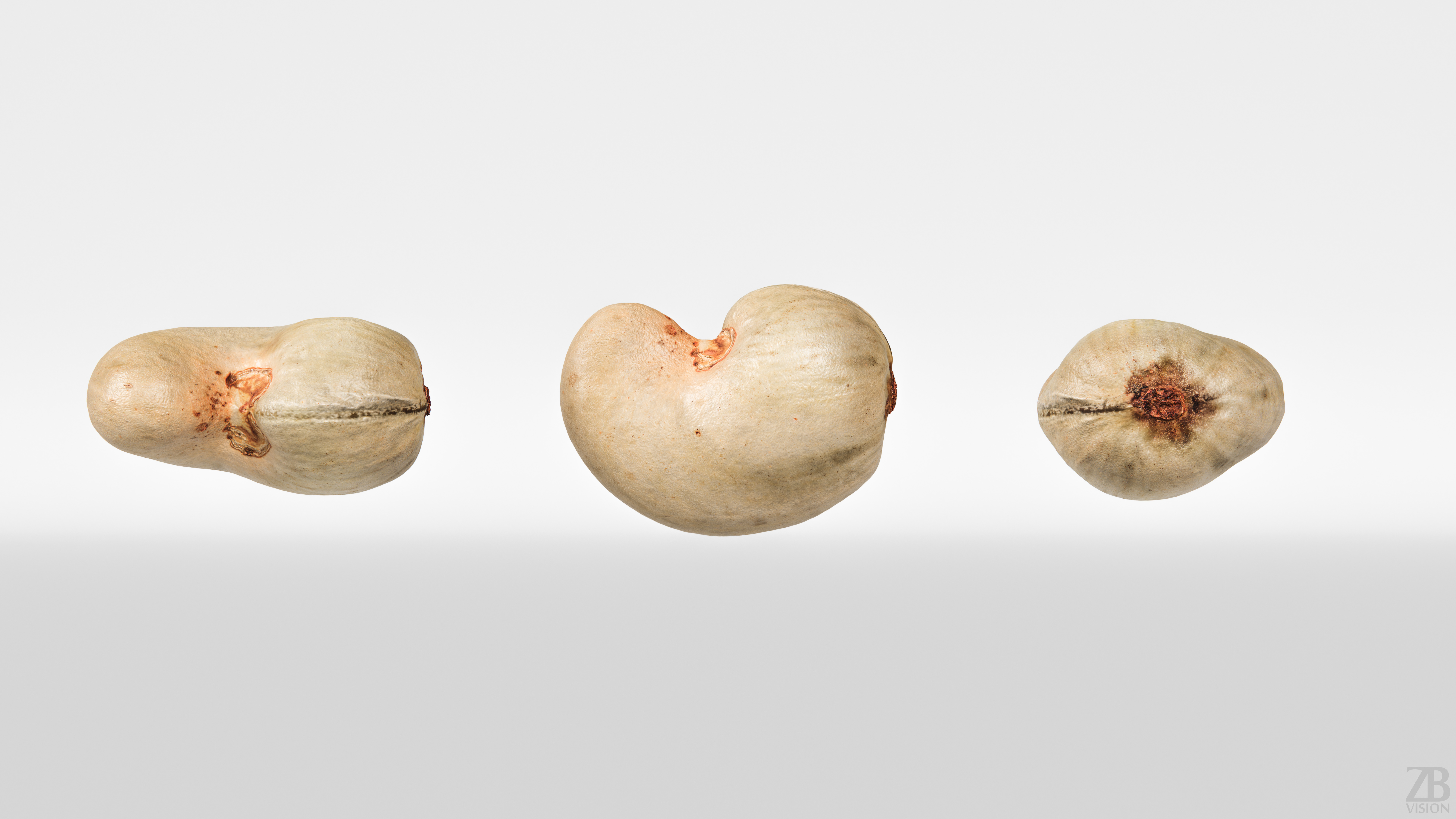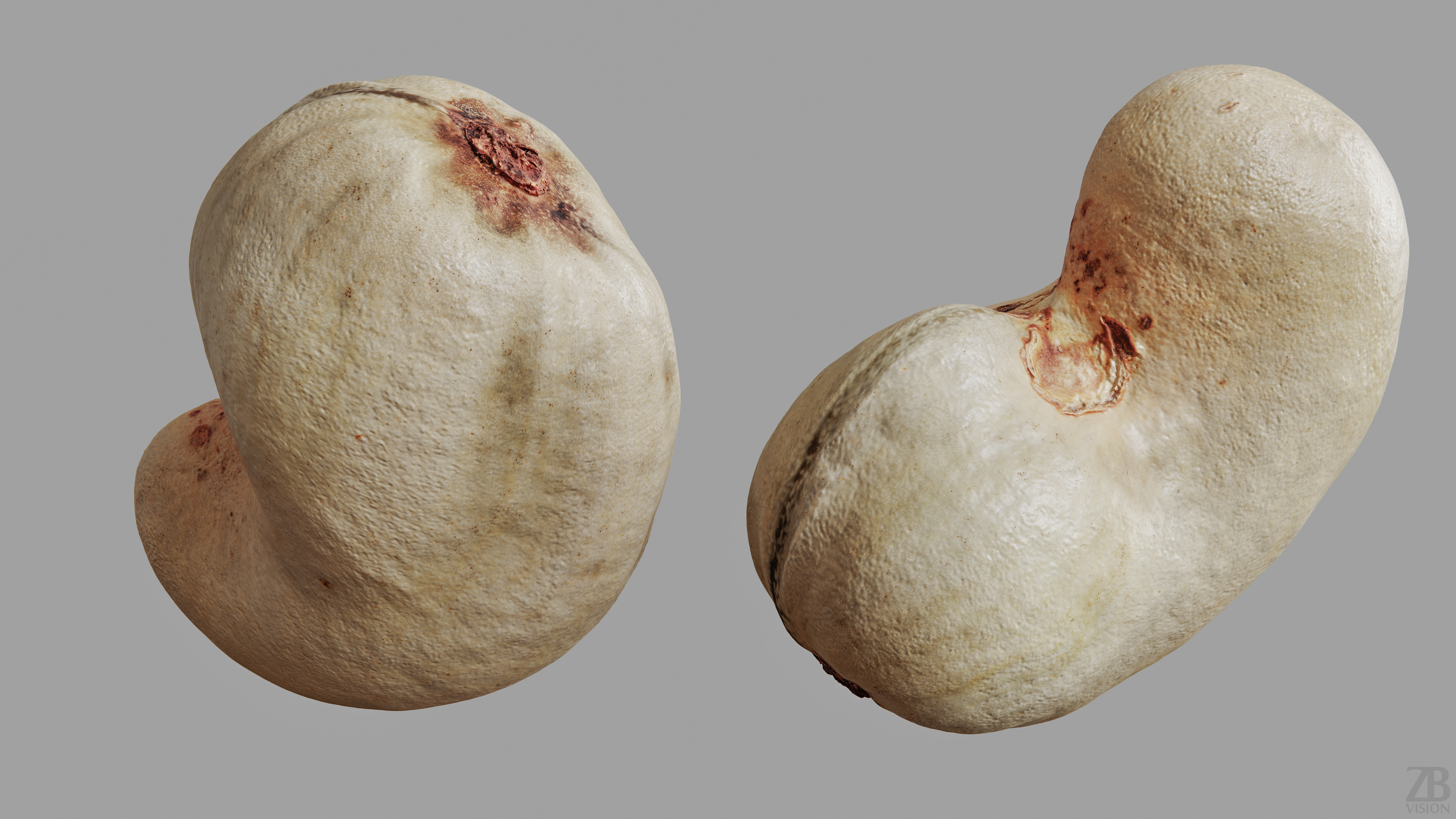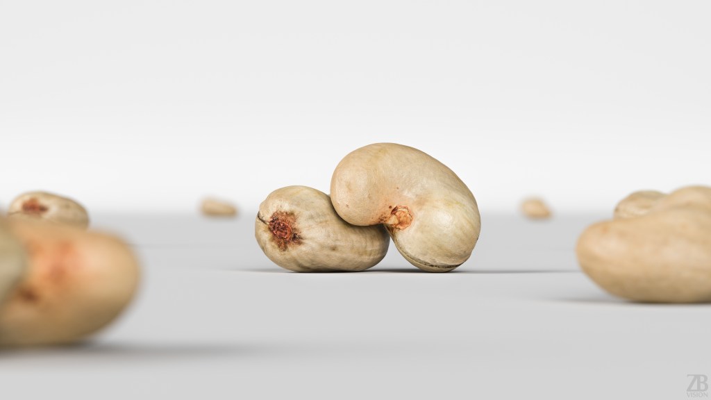 This is a 3d model of a cashew nut shell. It was scanned and prepared for photorealistic renderings, close-ups, stills and animation. The cashew nut model is ready to be inserted in your scene out of the box.