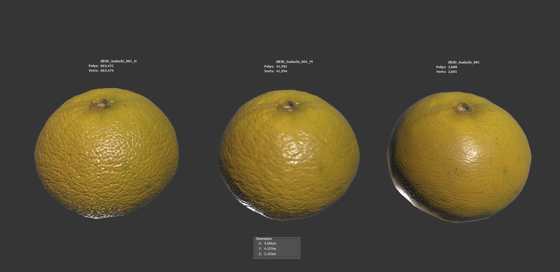 This is a 3d model of a sudachi. It was scanned and prepared for photorealistic renderings, close-ups, stills and animation. The sudachi model is ready to be inserted in your scene out of the box.