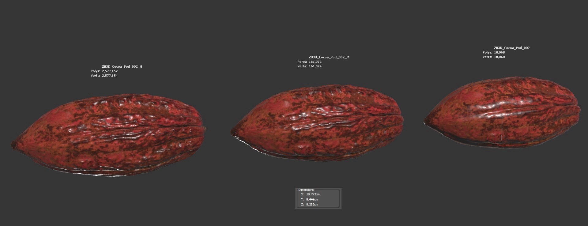 Enhance your visualizations, product designs, or still-life projects with this ultra-realistic 3D cocoa pod model. Meticulously photogrammetry scanned and textured, it boasts multiple levels of detail (10K, 161K, and 2577K polycounts) for close-ups and broader scenes.