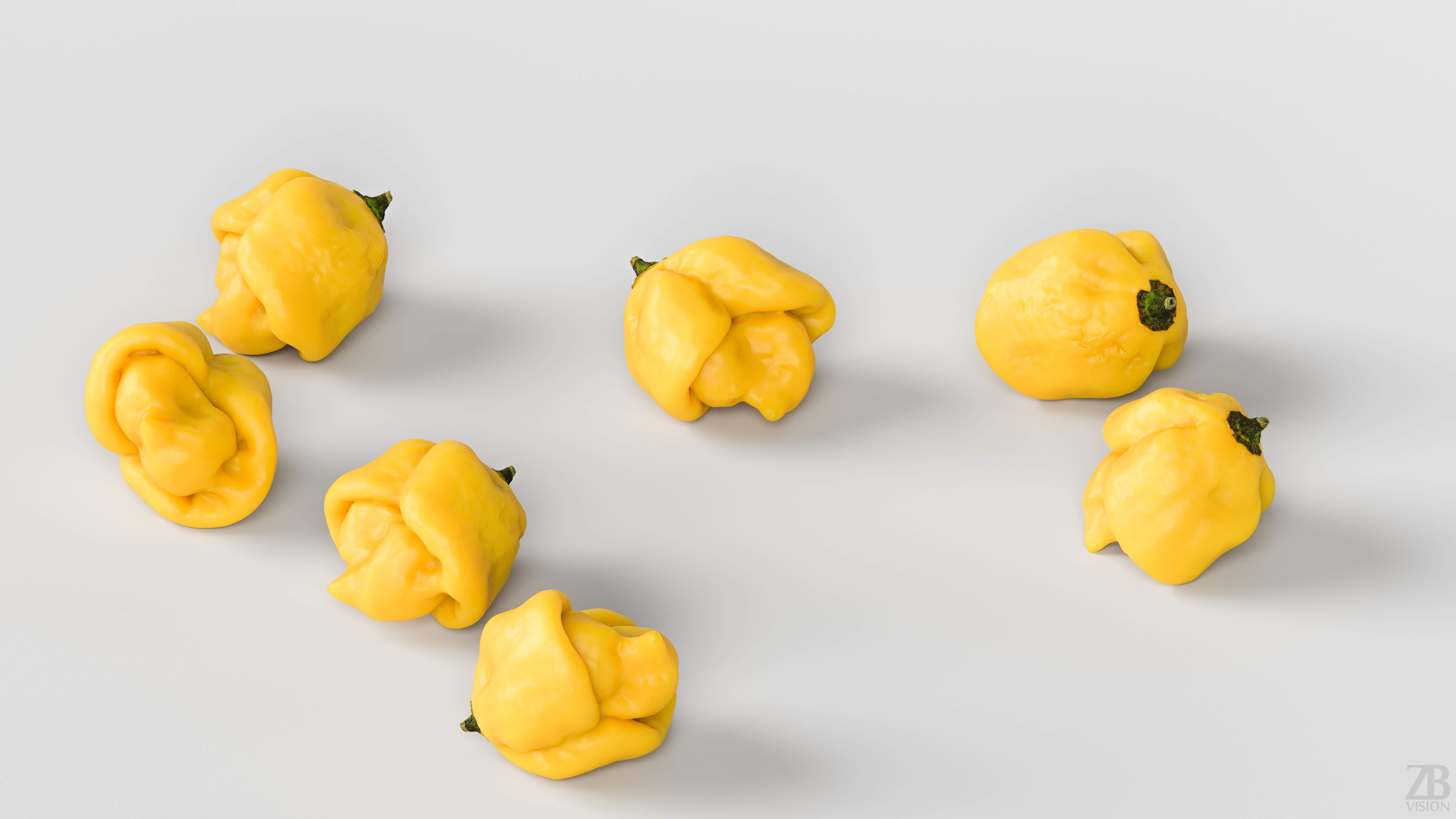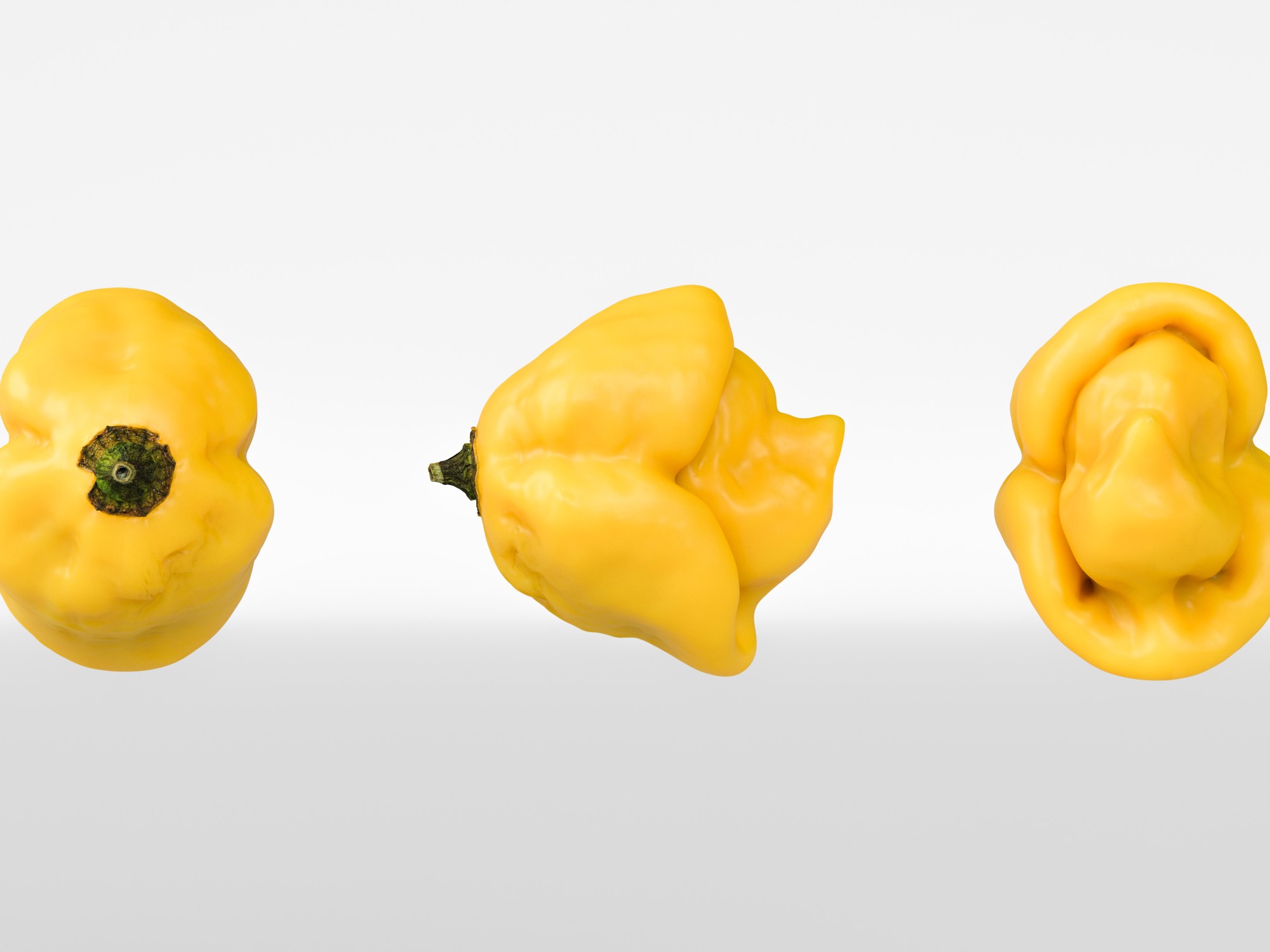 This is a 3d model of a yellow carolina reaper. It was scanned and prepared for photorealistic renderings, close-ups, stills and animation. The chili pepper model is ready to be inserted in your scene out of the box.
