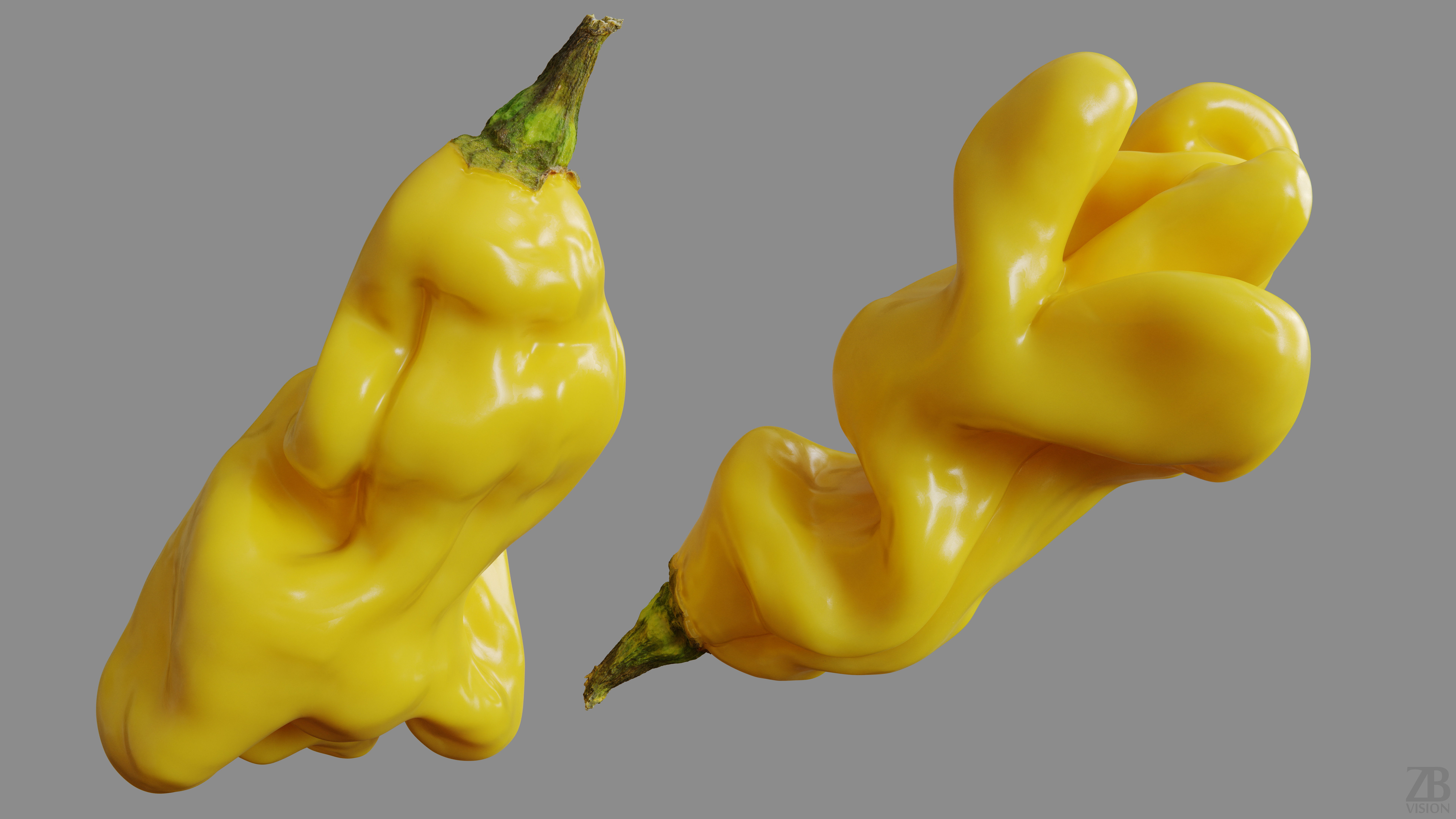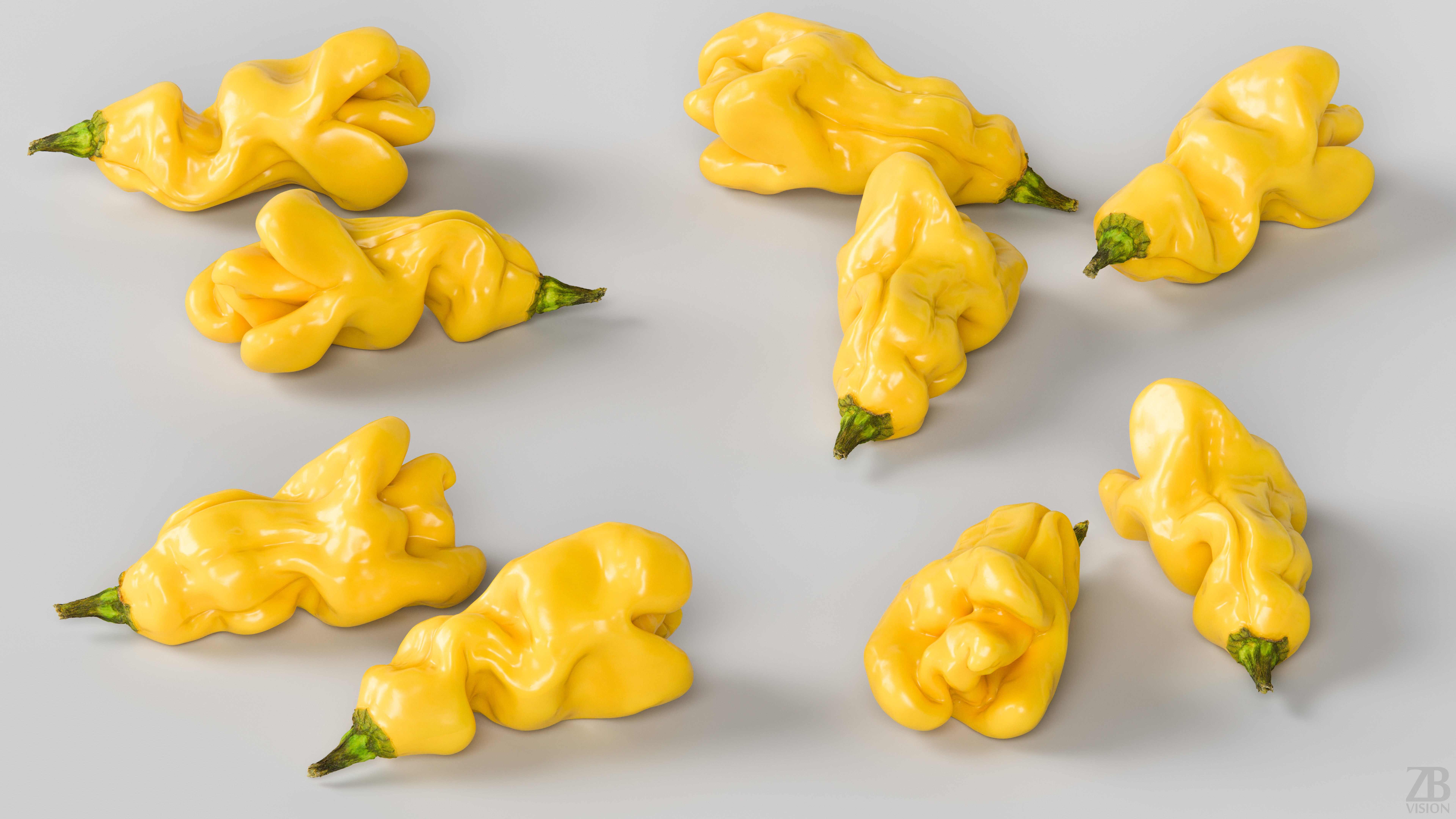 This is a 3d model of a lemon habanero aka madame jeanette. It was scanned and prepared for photorealistic renderings, close-ups, stills and animation. The habanero chili pepper model is ready to be inserted in your scene out of the box.