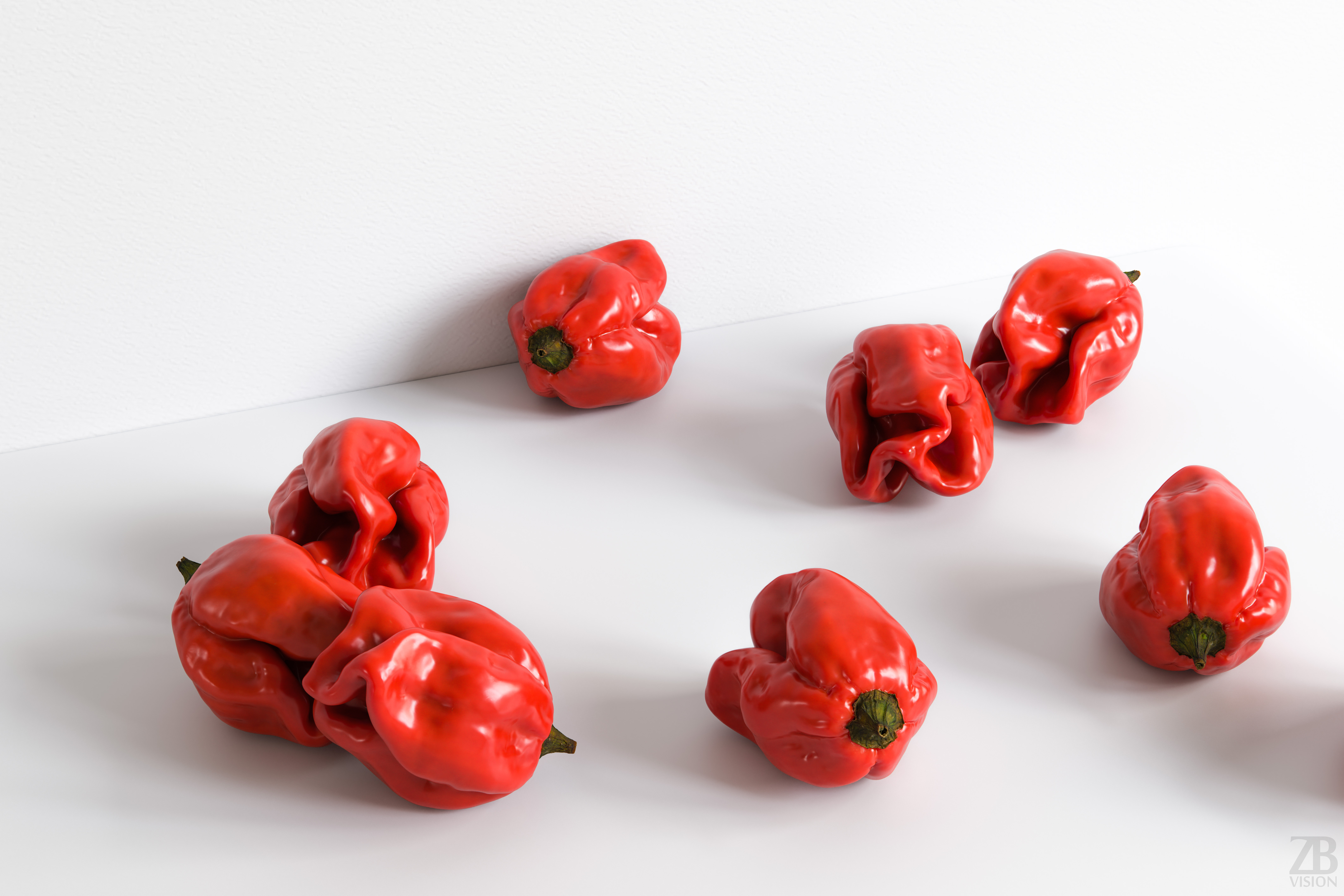 This is a 3d model of a trinidad scorpion chili pepper, aka trinidad moruga red. It was scanned and prepared for photorealistic renderings, close-ups, stills and animation. The moruga chili pepper model is ready to be inserted in your scene out of the box.