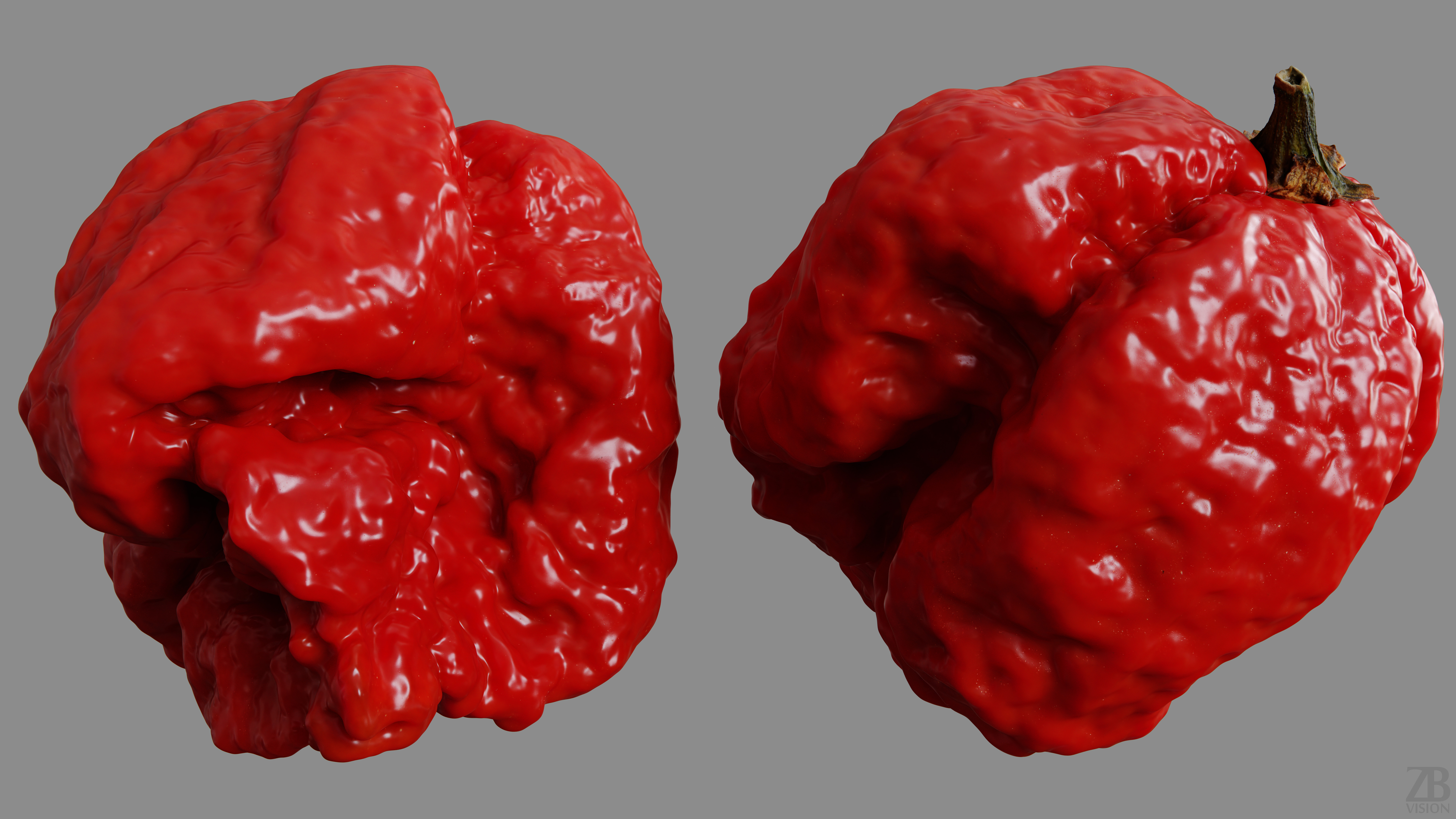 This is a 3d model of a red carolina reaper. It was scanned and prepared for photorealistic renderings, close-ups, stills and animation. The chili pepper model is ready to be inserted in your scene out of the box.