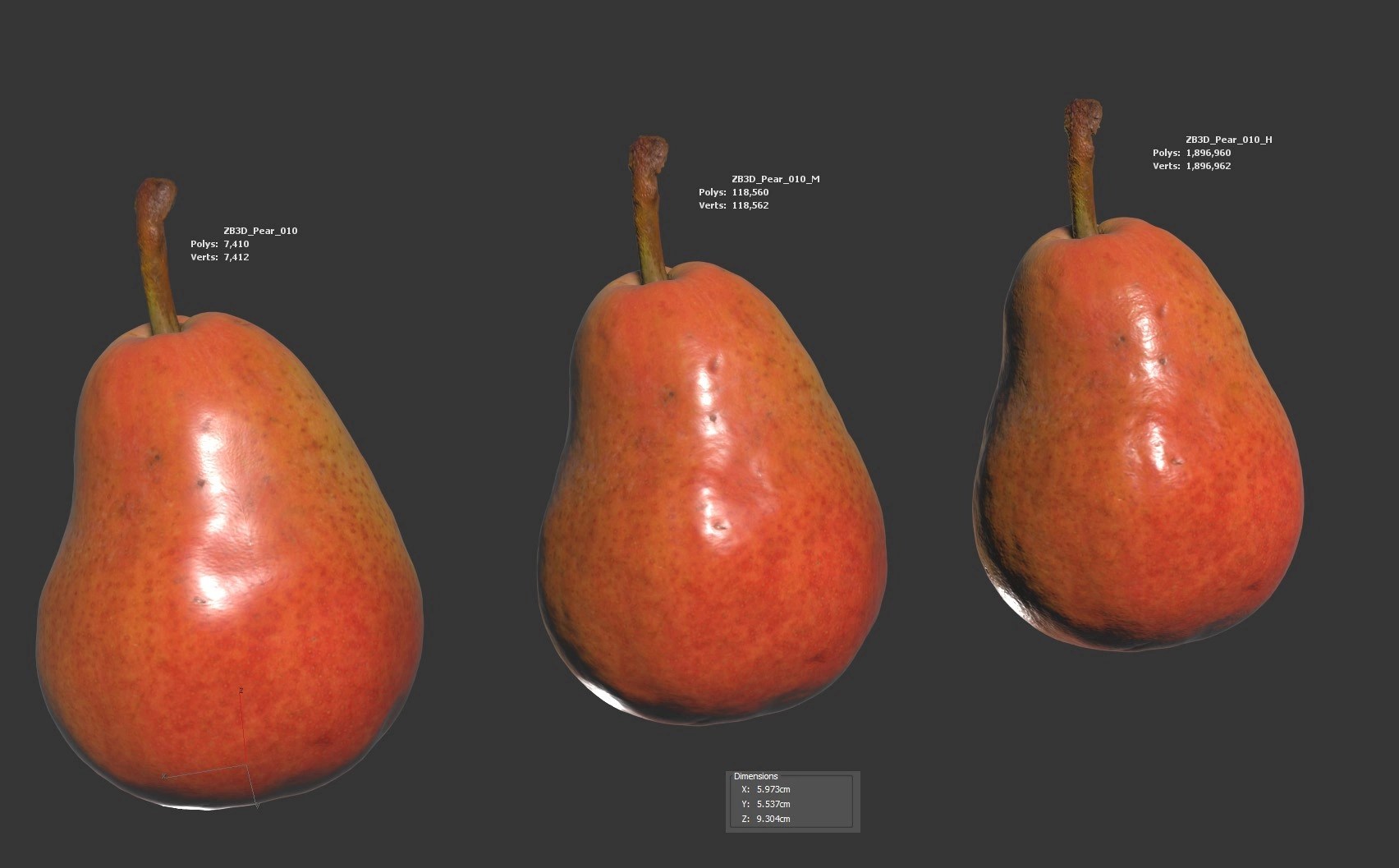 Enhance your visualizations, product designs, or still-life projects with this ultra-realistic 3D pear model. Meticulously photogrammetry scanned and textured, it boasts multiple levels of detail (7K, 118K, 1896K polycounts) for close-ups and broader scenes.