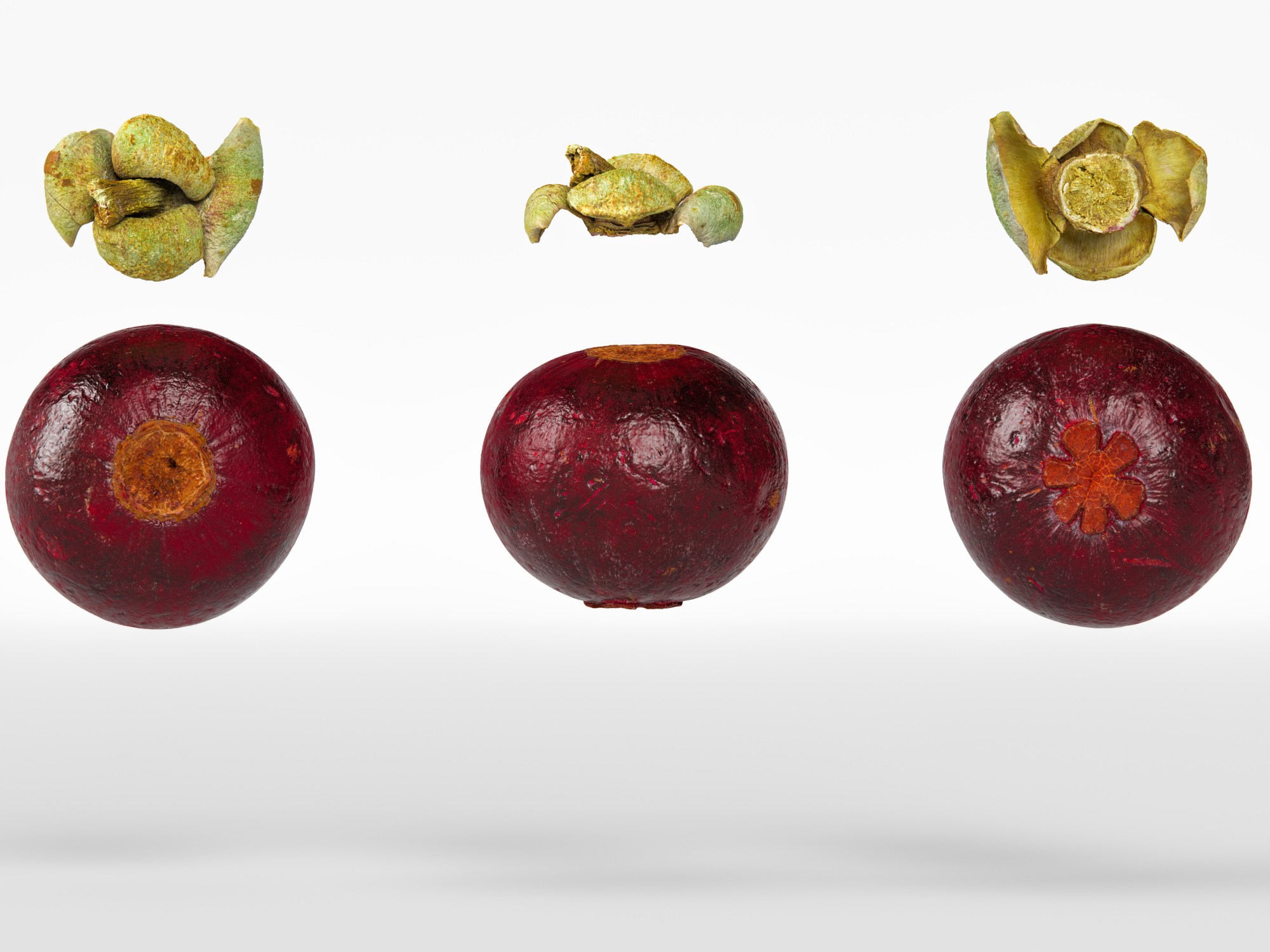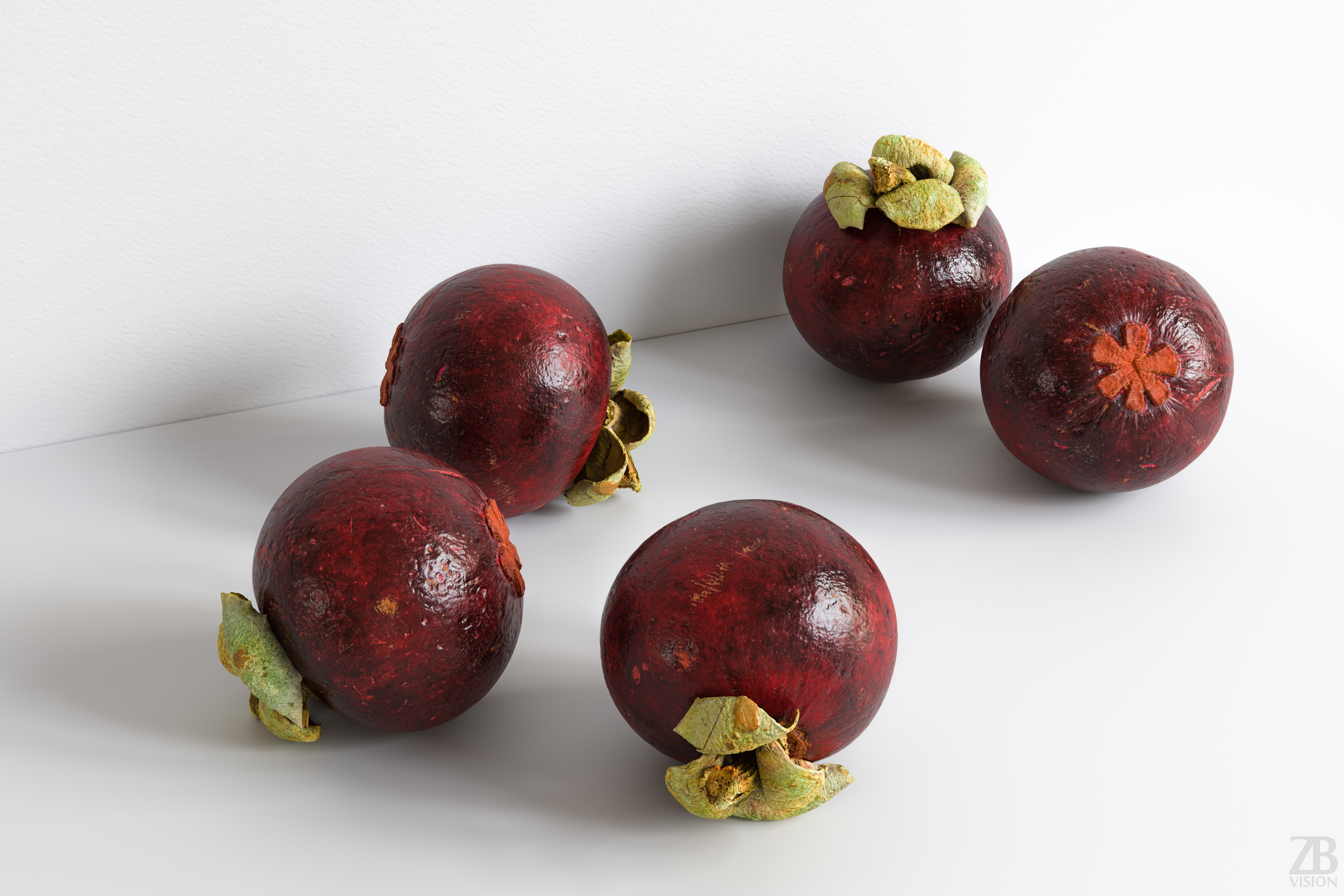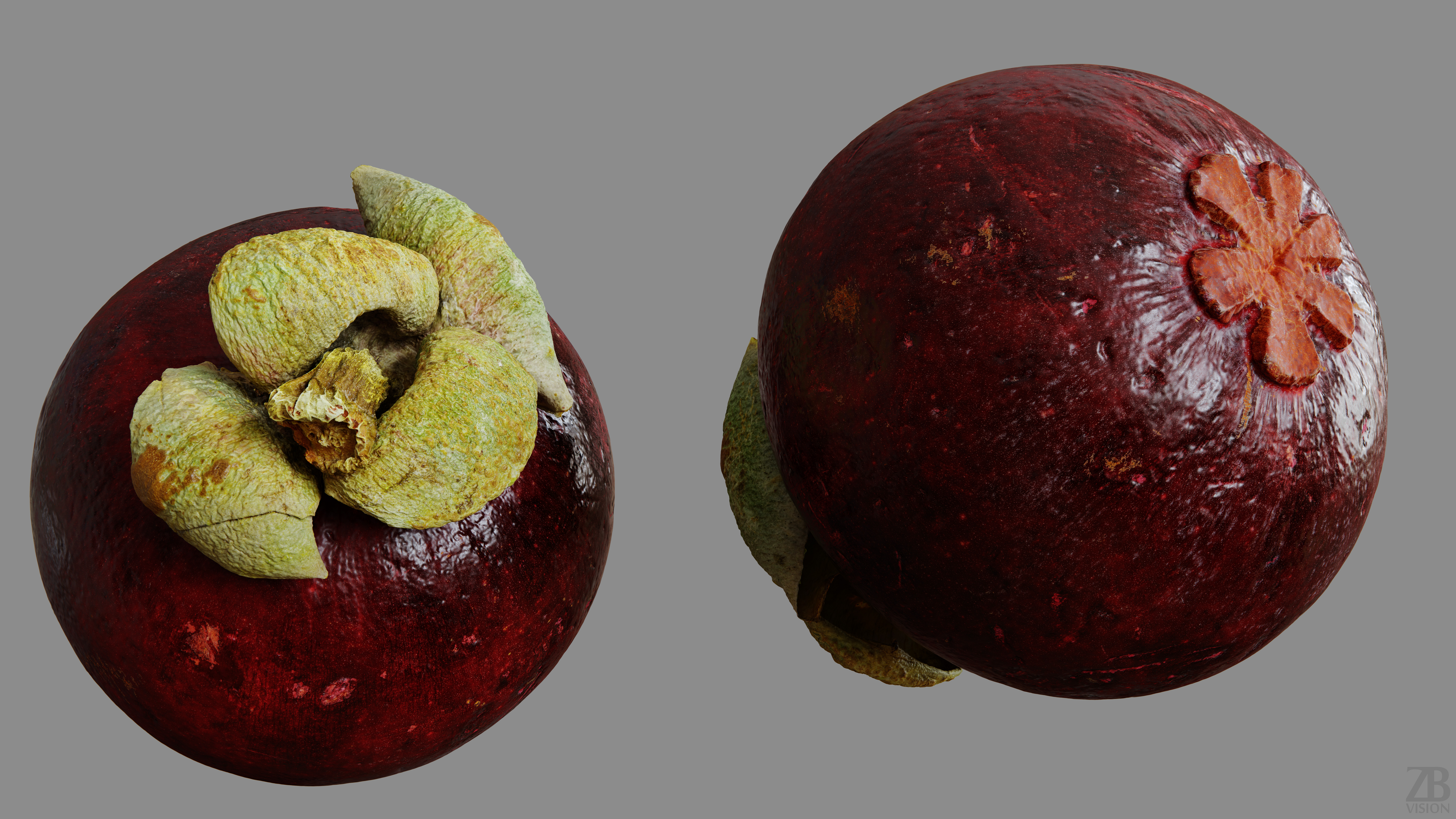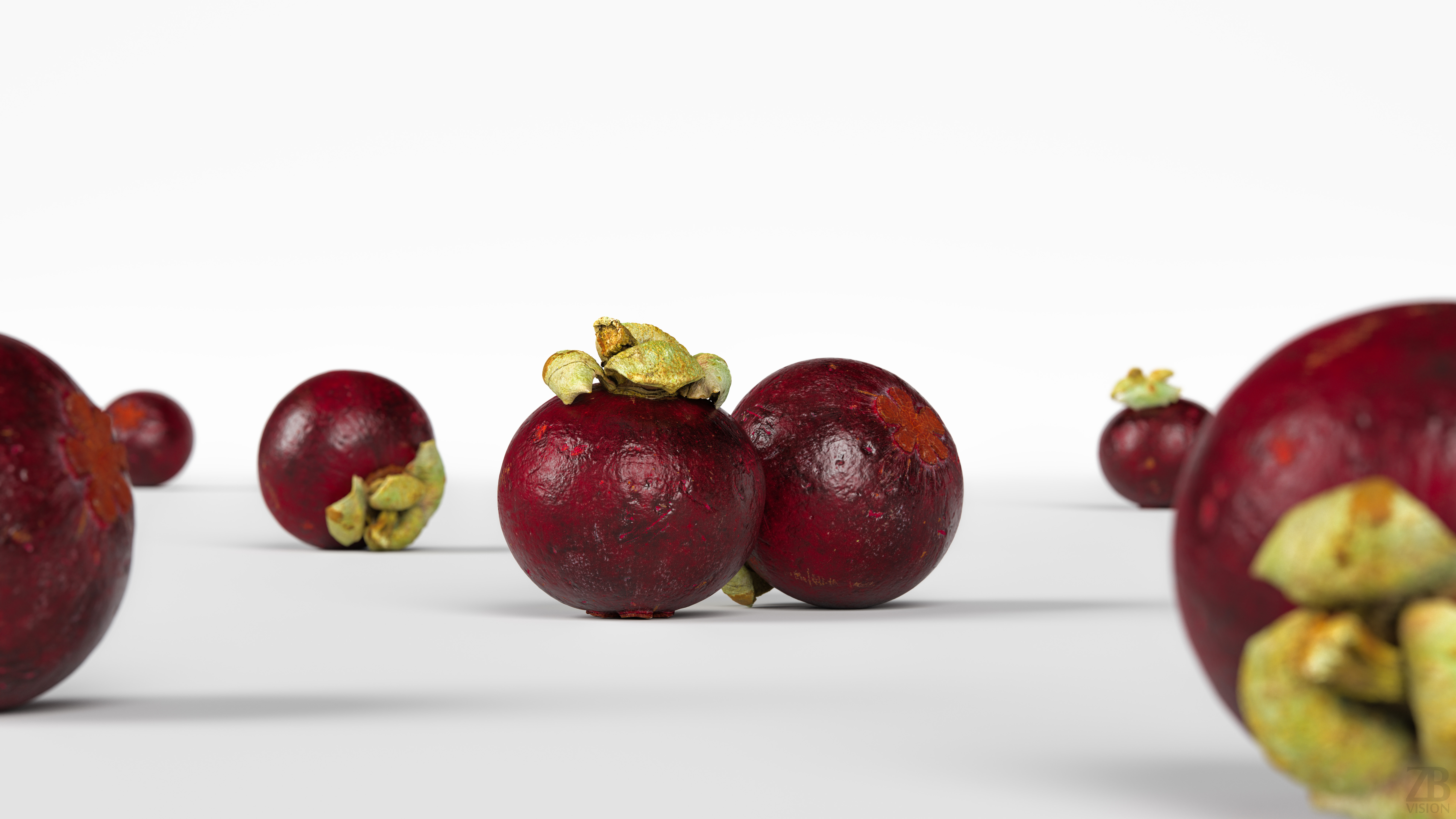 This is a 3d model of a mangosteen. It was scanned and prepared for photorealistic renderings, close-ups, stills and animation. The mangosteen model is ready to be inserted in your scene out of the box.