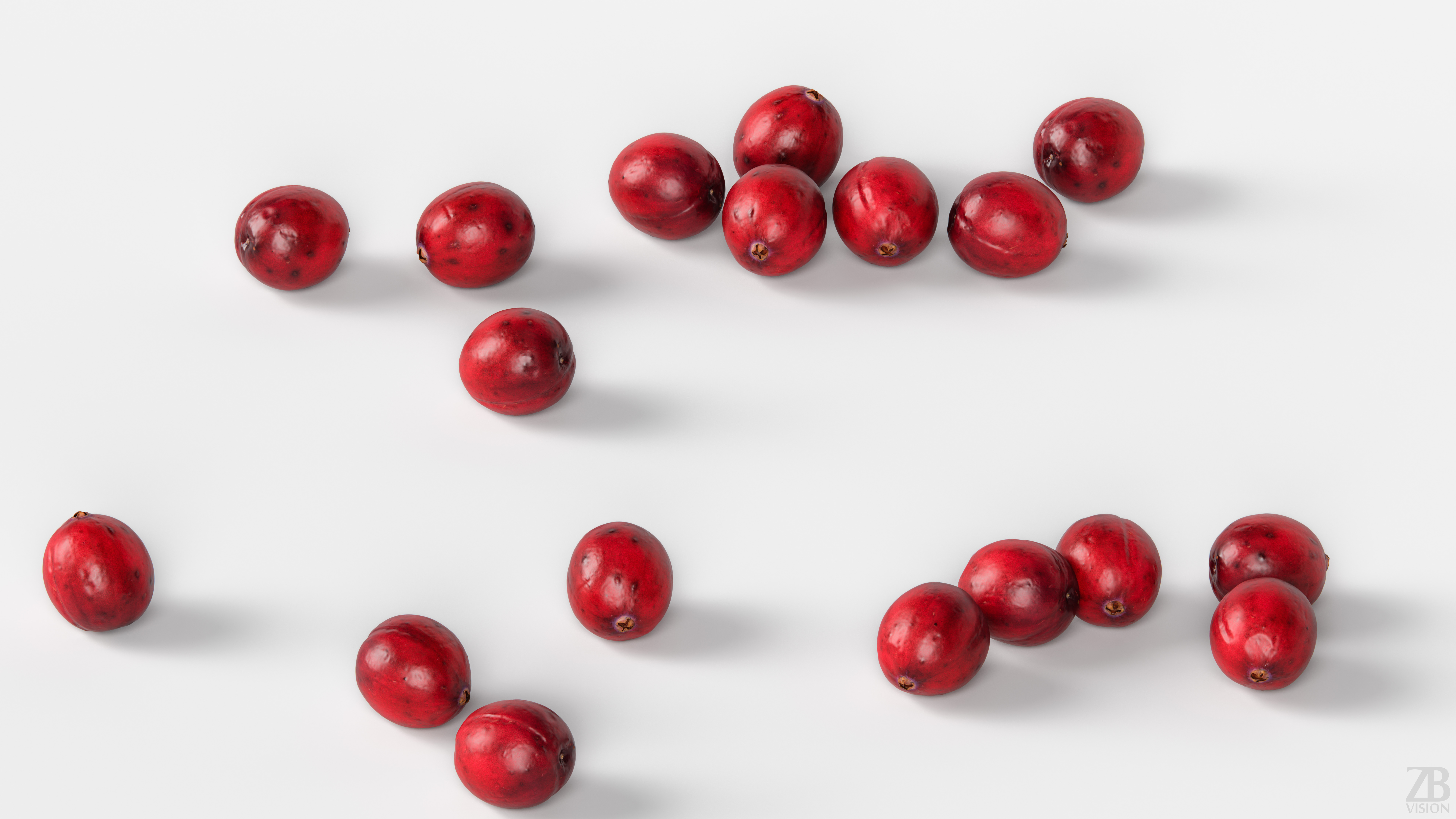 Cranberry 3D model is available here: https://www.cgtrader.com/3d-models/food/fruit/cranberry-002