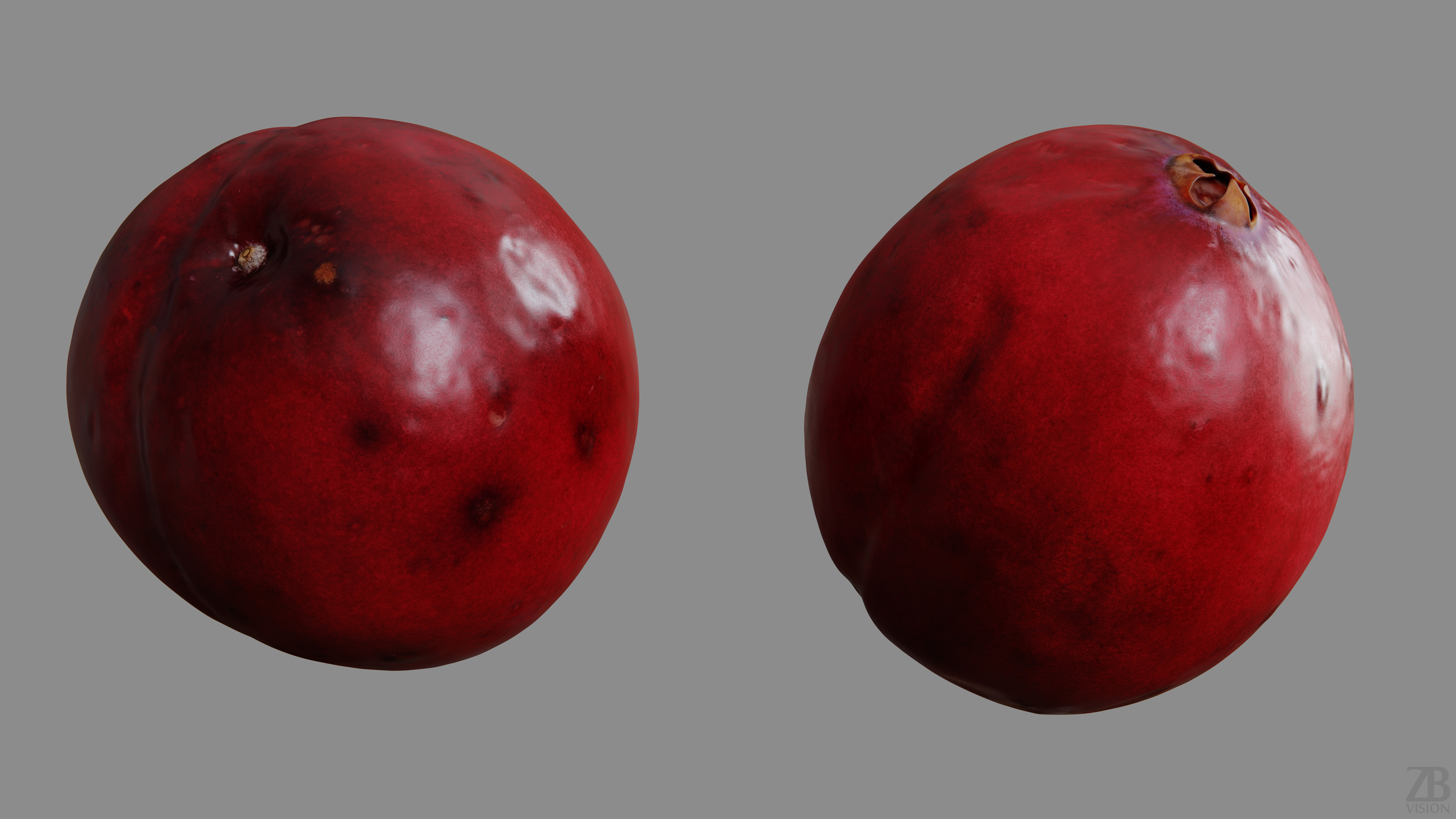 This is a 3d model of a cranberry. It was scanned and prepared for photorealistic renderings, close-ups, stills and animation. The cranberry model is ready to be inserted in your scene out of the box.