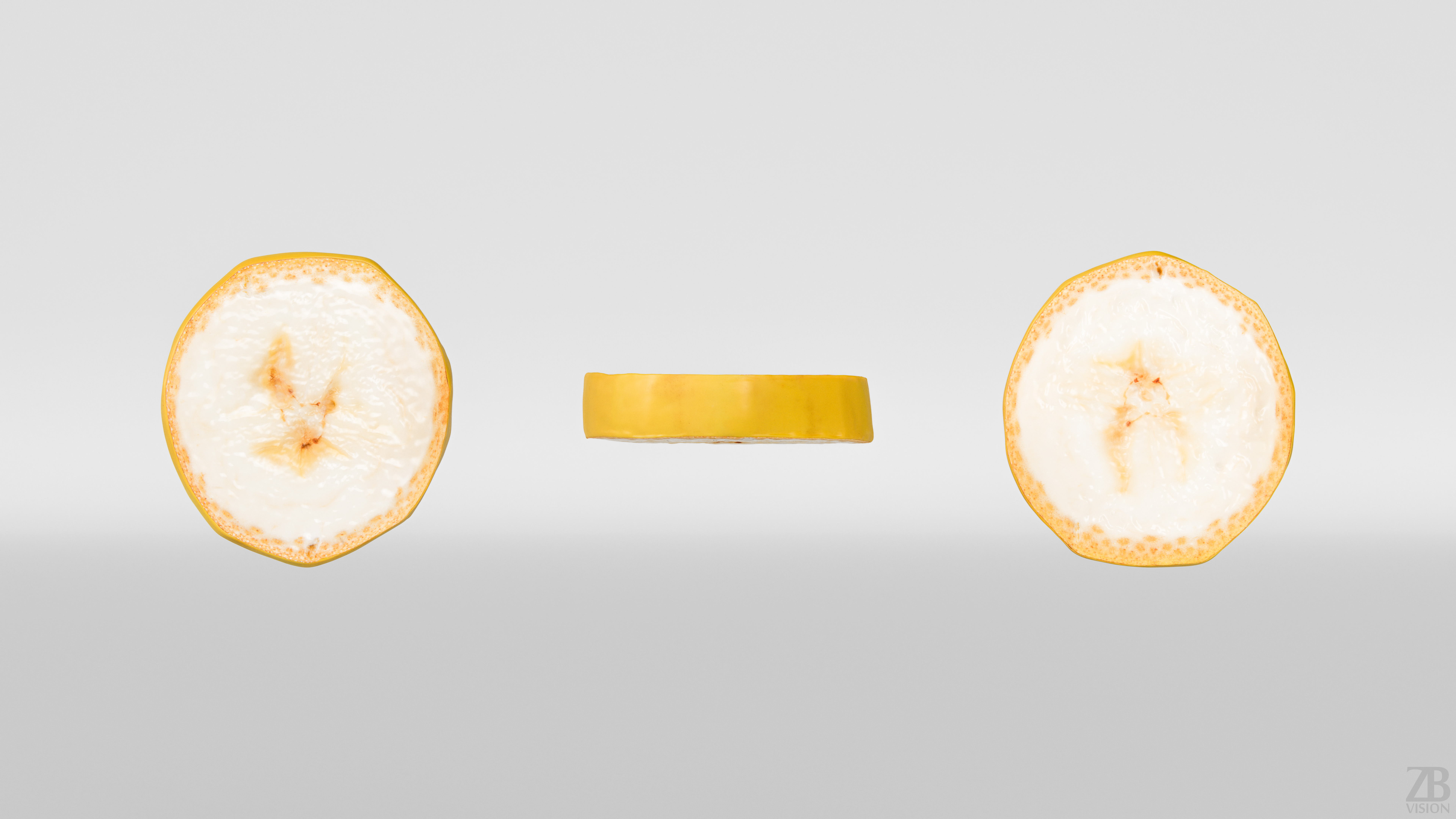 This is a 3d model of a banana slice. It was scanned and prepared for photorealistic renderings, close-ups, stills and animation. The banana model is ready to be inserted in your scene out of the box.