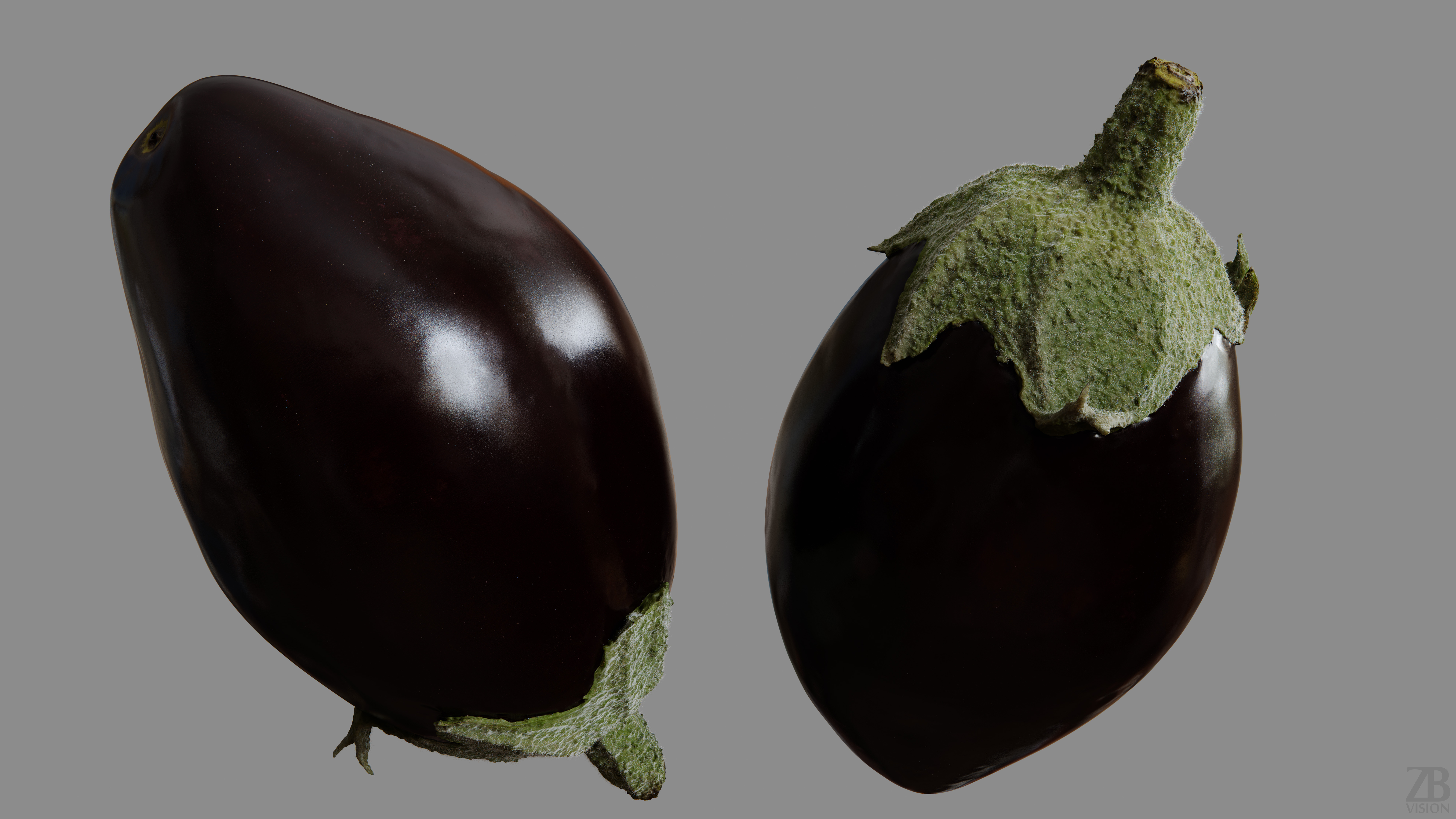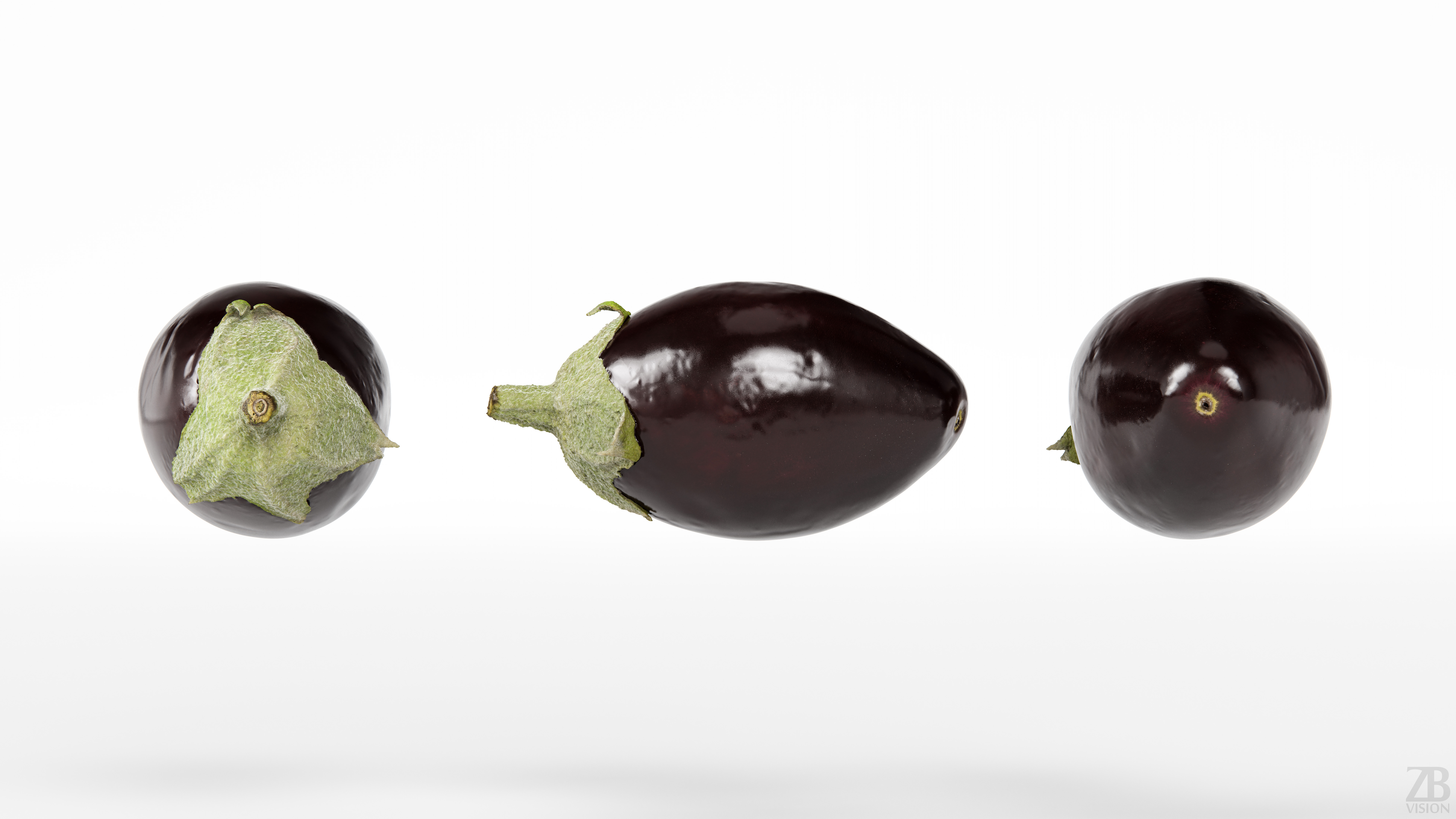 This is a 3d model of a eggplant, mini aubergine variety. It was scanned and prepared for photorealistic renderings, close-ups, stills and animation. The eggplant model is ready to be inserted in your scene out of the box.