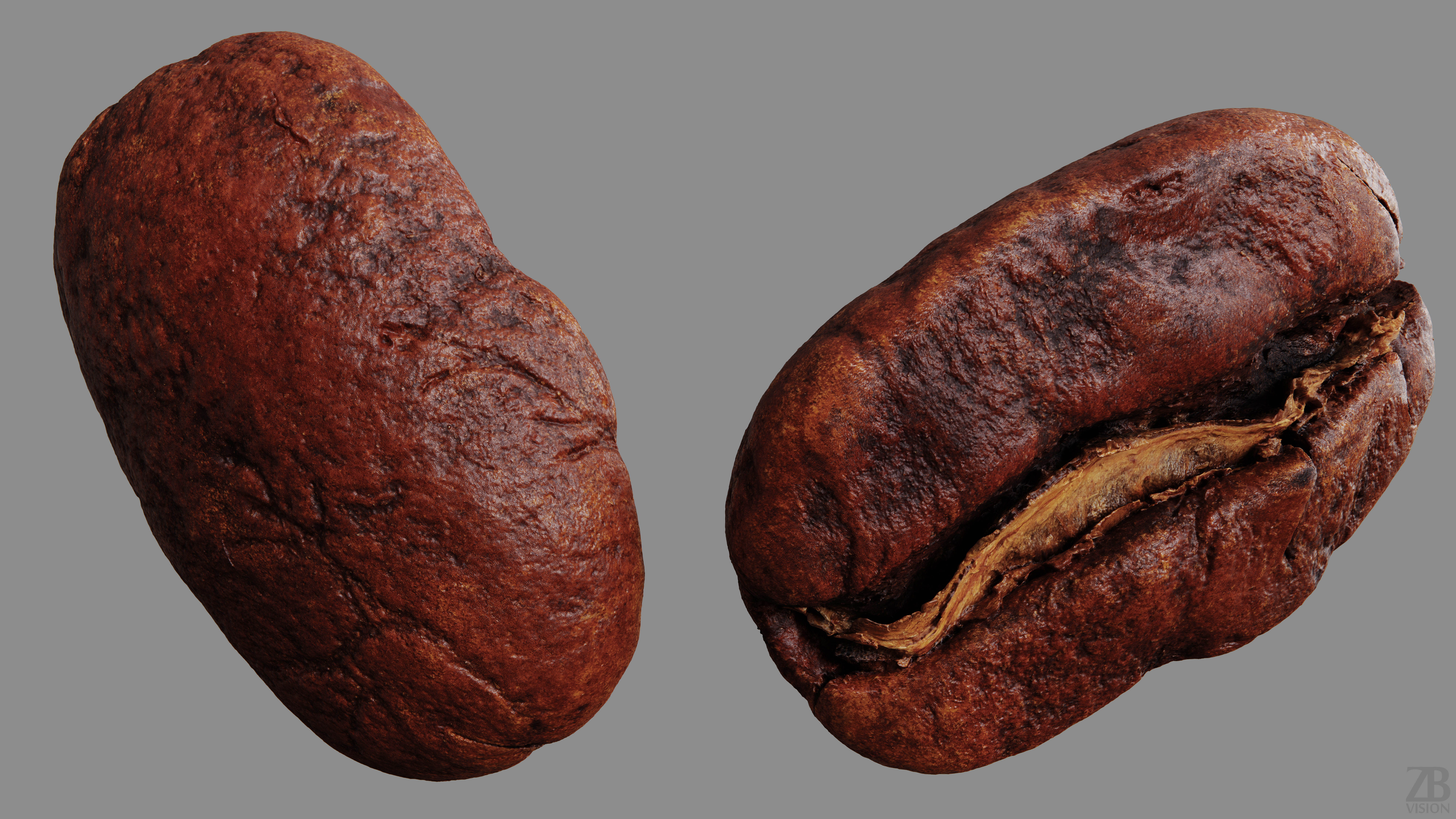 This is a 3d model of a coffee bean. It was macro scanned and prepared for photorealistic renderings, extreme close-ups, stills and animation. The coffee bean model is ready to be inserted in your scene out of the box.
