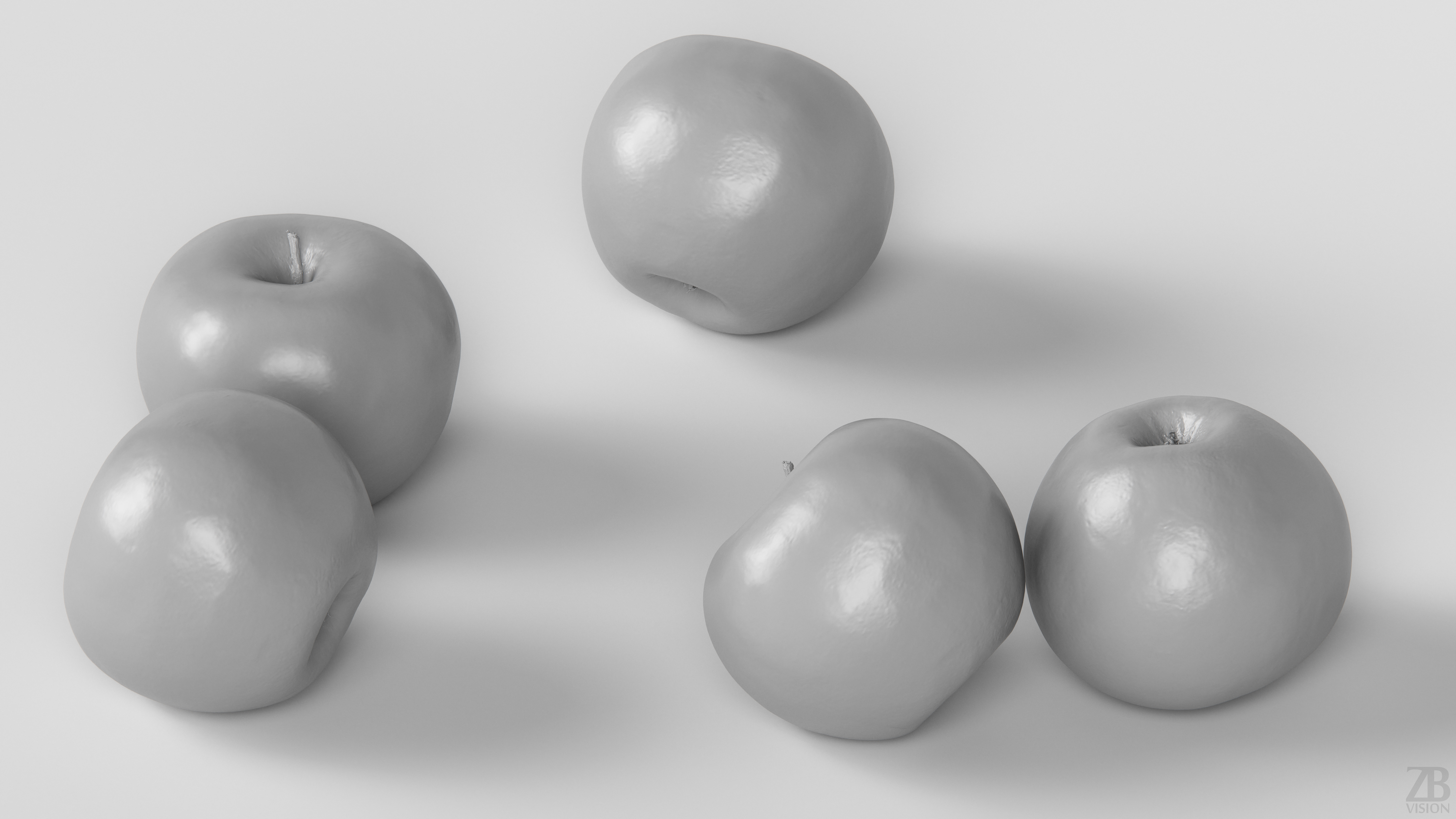 6 maps are supplied with this model. Textures supplied are in JPG format and are in 2K, 4K and 8K resolution. The texture maps include ao, diffuse, glossiness, roughness, normal and displacement(tif). The apple model is uvw unwrapped. 16K diffuse included.