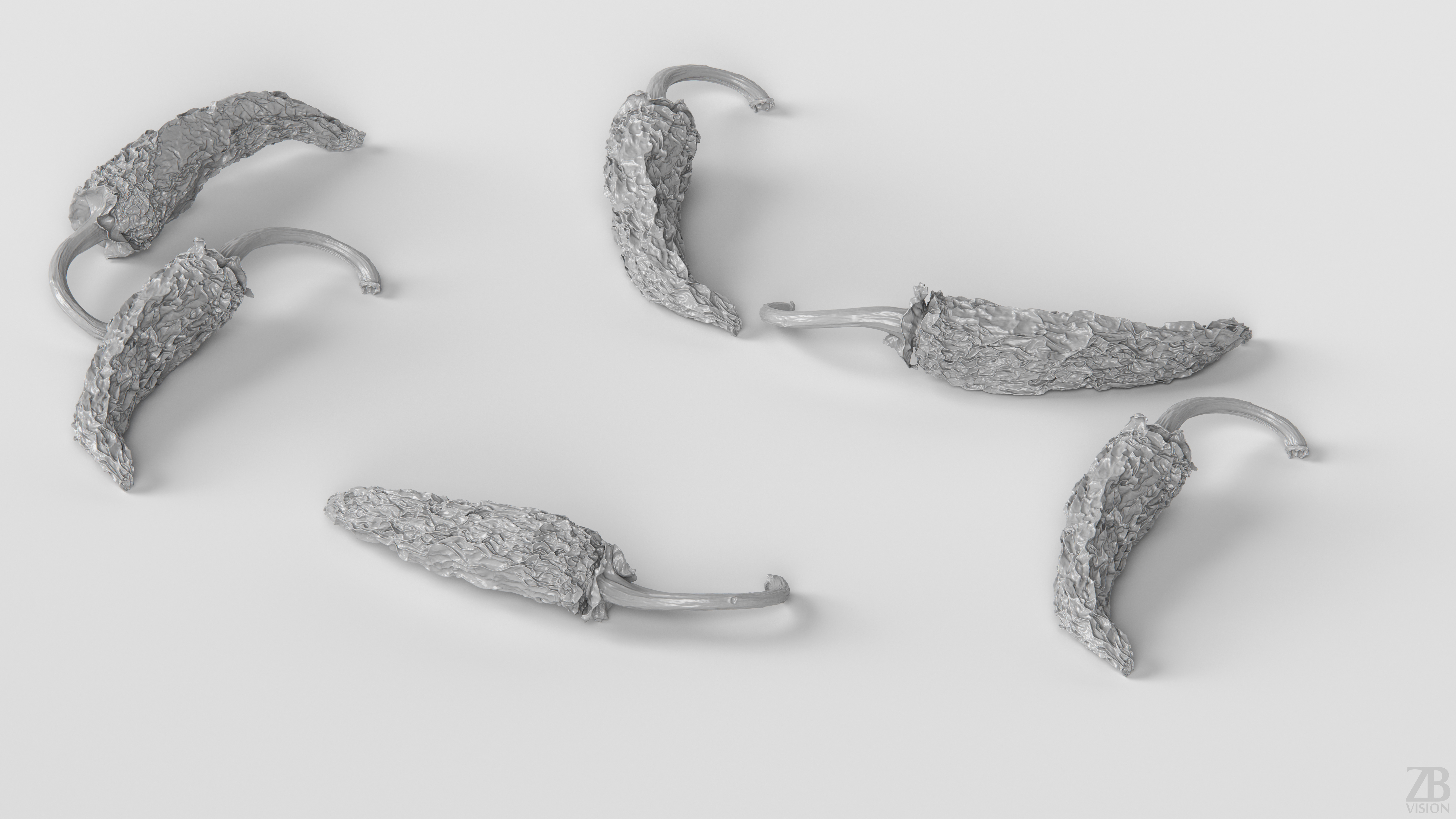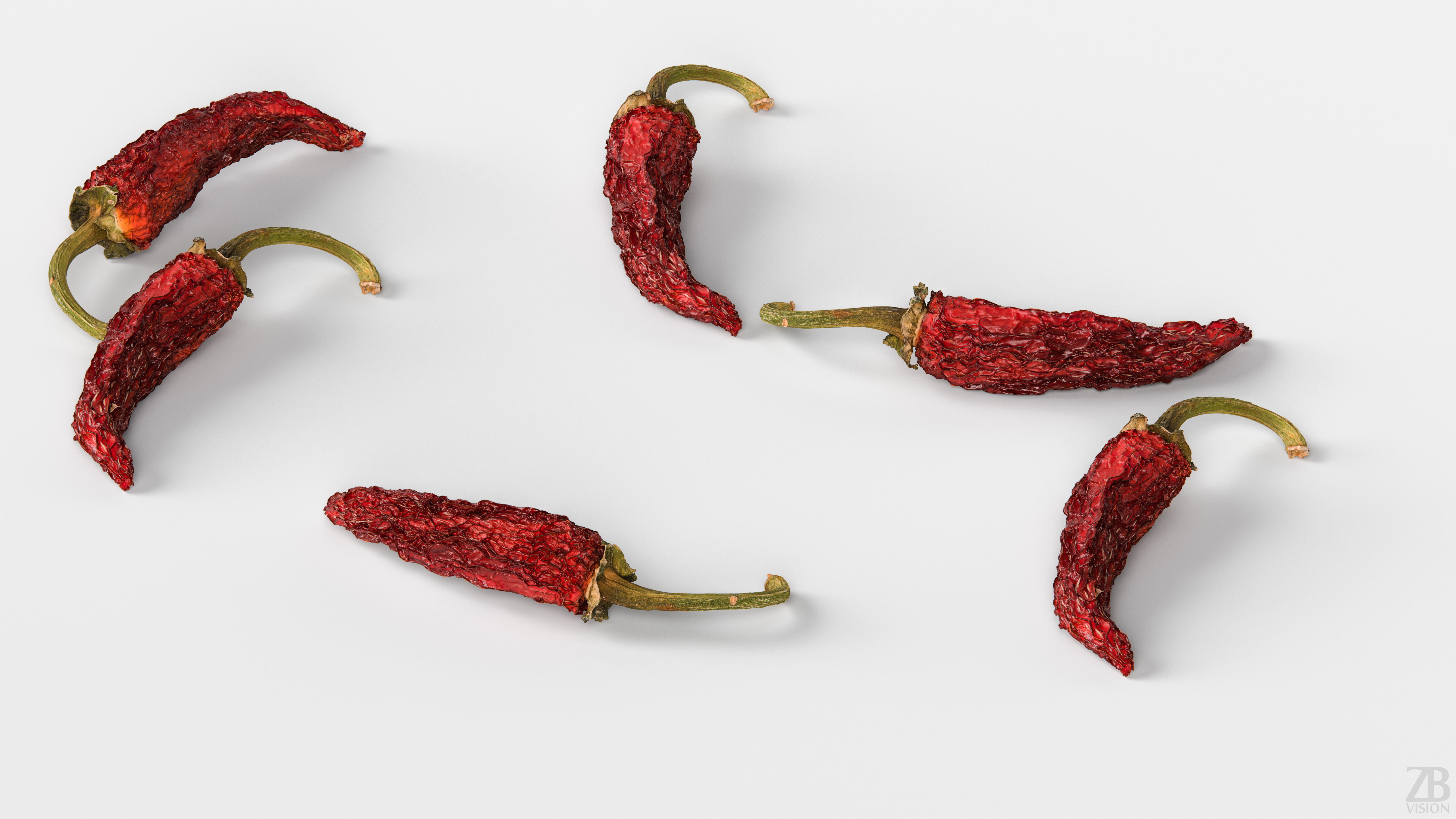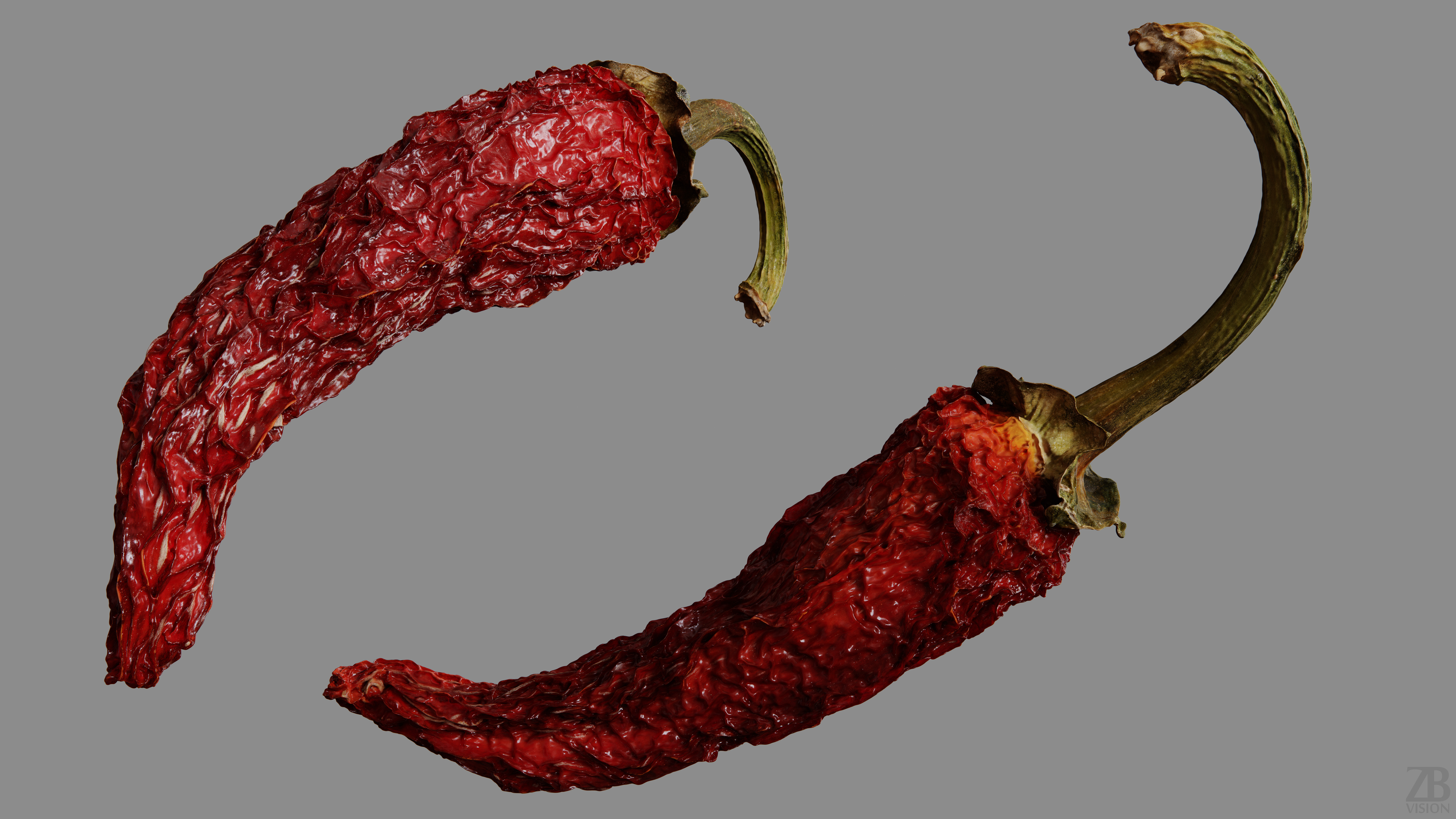 This is a 3d model of dry chili pepper. It was scanned and prepared for photorealistic renderings, close-ups, stills, and animation. The chili pepper model is ready to be inserted into your scene out of the box.