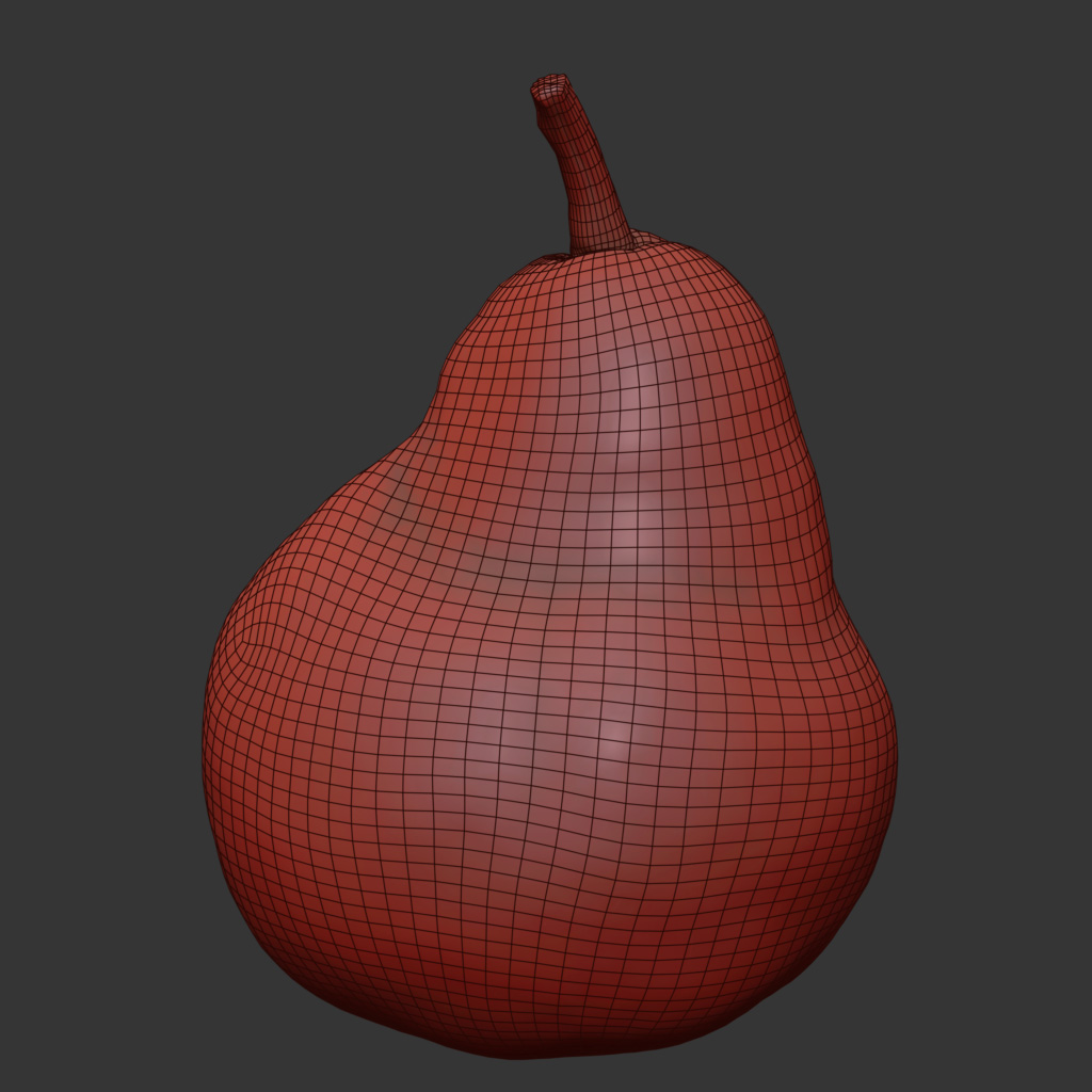 The pear model is presented as a single mesh in 3 subdivision levels: low, mid, and high. Meshes are quad based. The polycounts are 5K, 86K, and 1383K. The high-detail model is included in .max, .fbx, and .obj formats.