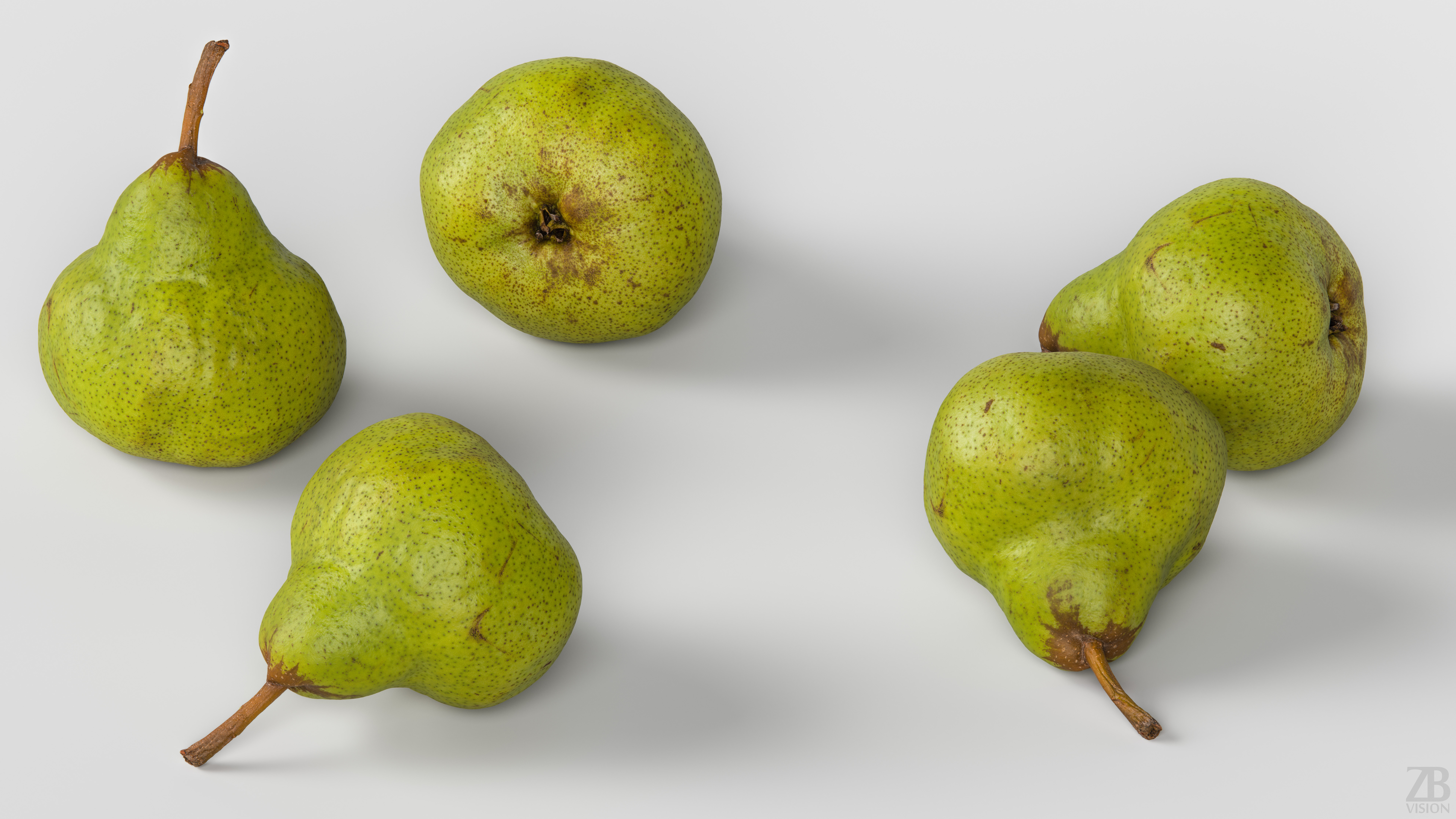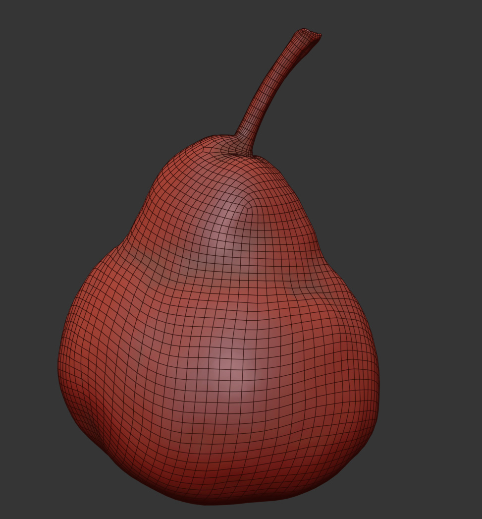 The pear model is presented as a single mesh in 3 subdivision levels: low, mid, and high. Meshes are quad based. The polycounts are 5K, 88K, and 1414K. The high-detail model is included in .max, .fbx, and .obj formats.