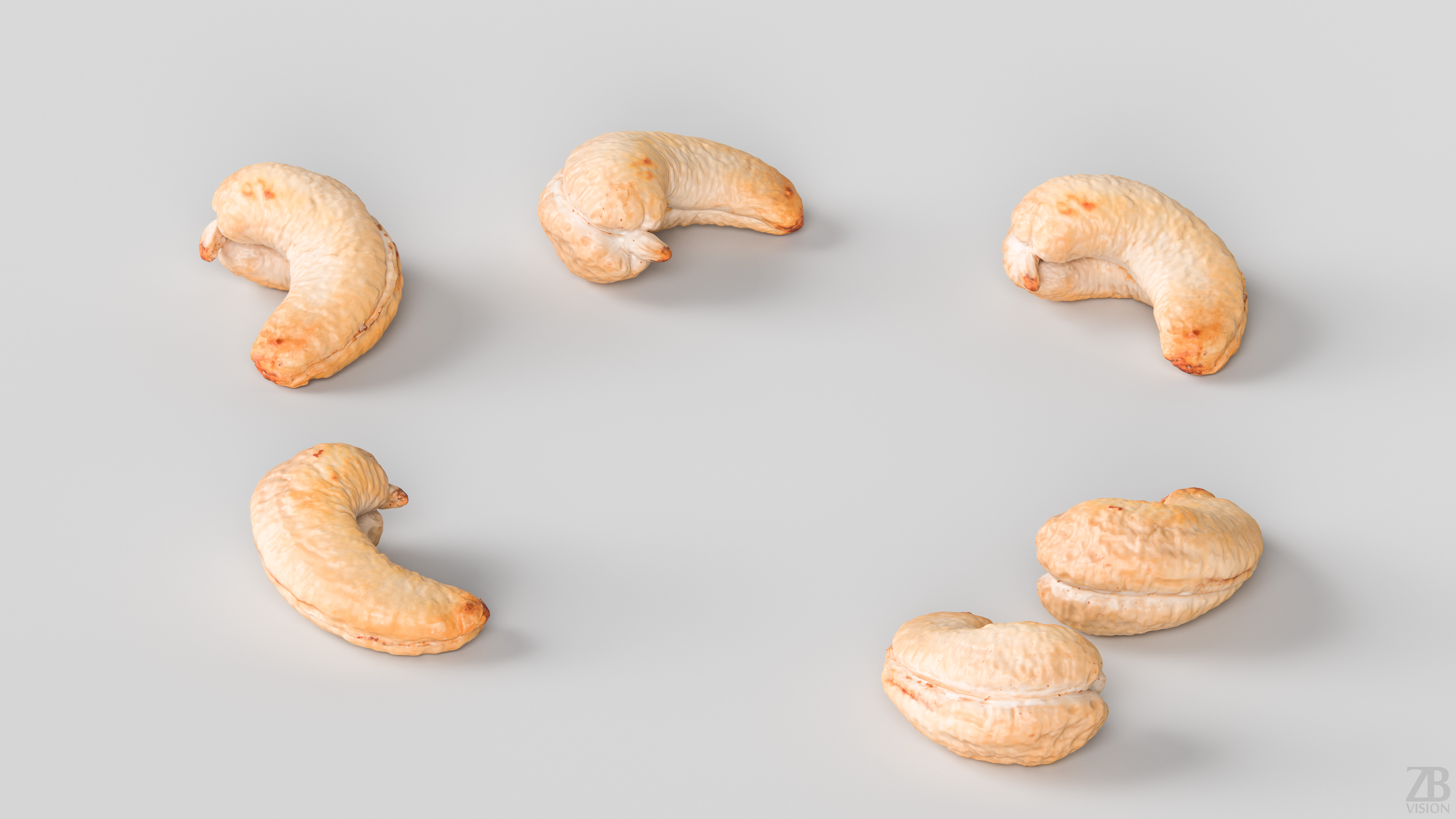 This is a 3d model of a cashew. It was scanned and prepared for photorealistic renderings, close-ups, stills, and animation. The cashew model is ready to be inserted into your scene out of the box.