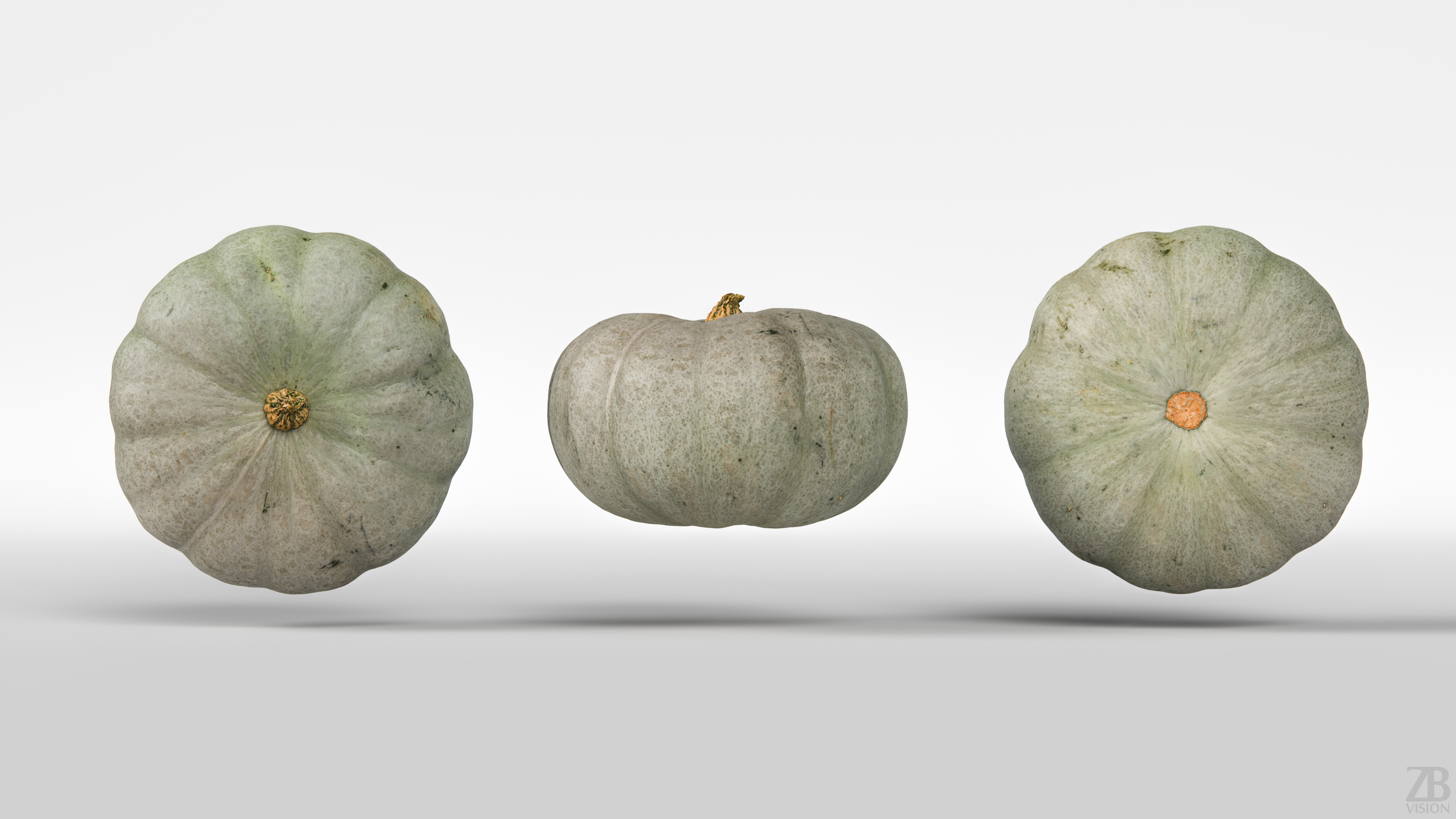 This is a 3d model of a pumpkin. It was scanned and prepared for photorealistic renderings, close-ups, stills, and animation. The pumpkin model is ready to be inserted into your scene out of the box.