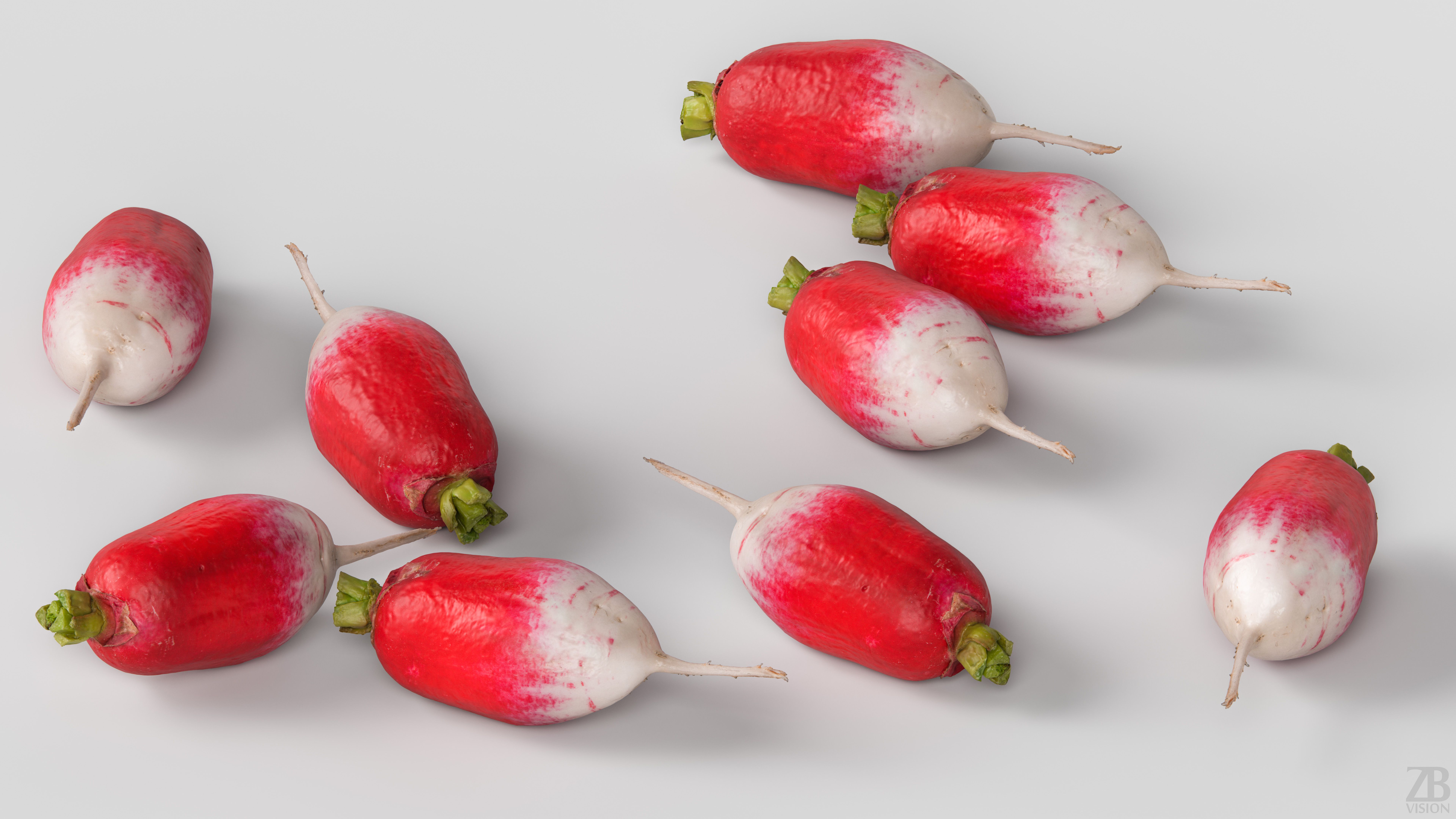 This is a 3d model of a radish. It was scanned and prepared for photorealistic renderings, close-ups, stills, and animation. The radish model is ready to be inserted into your scene out of the box.