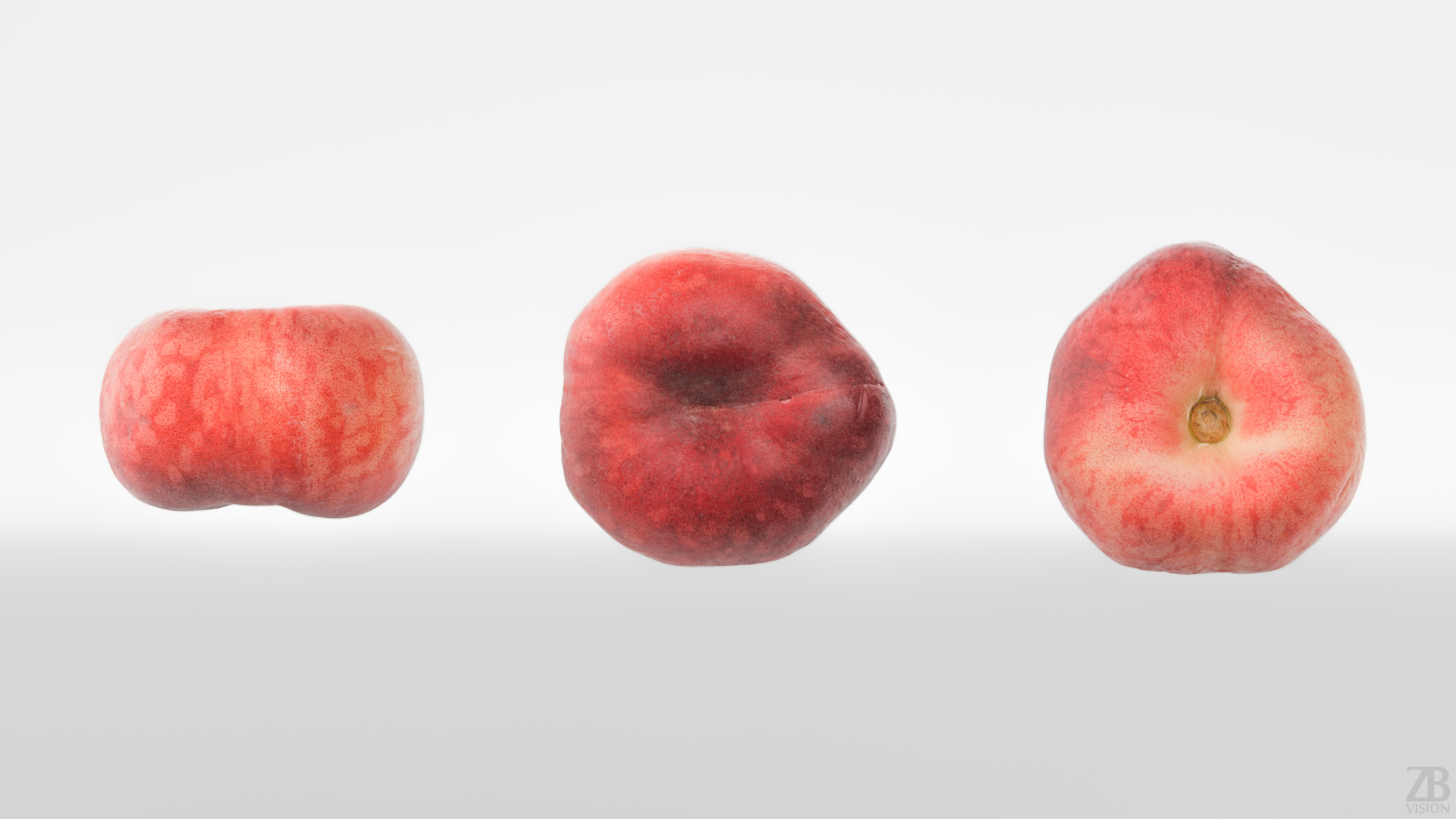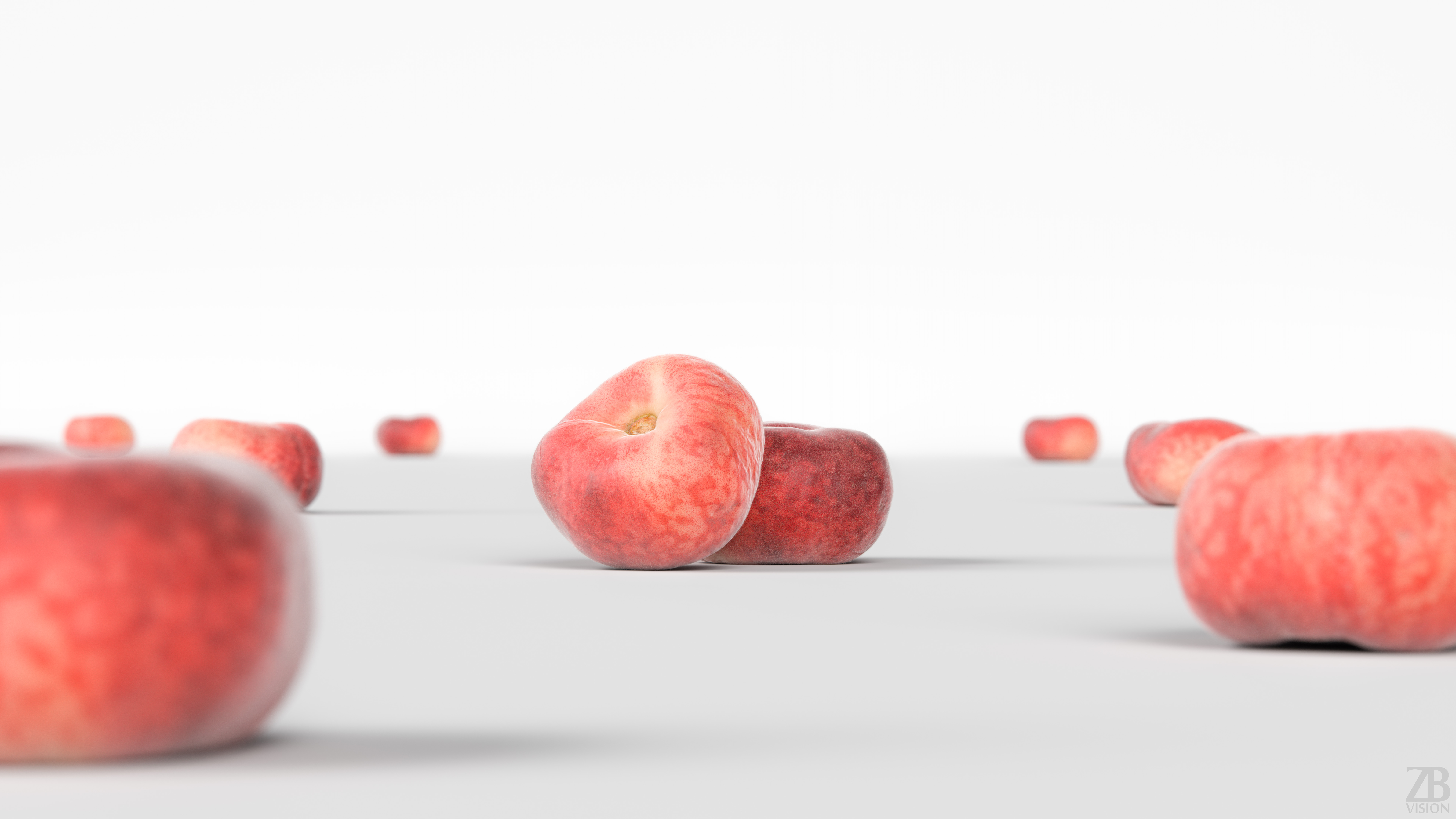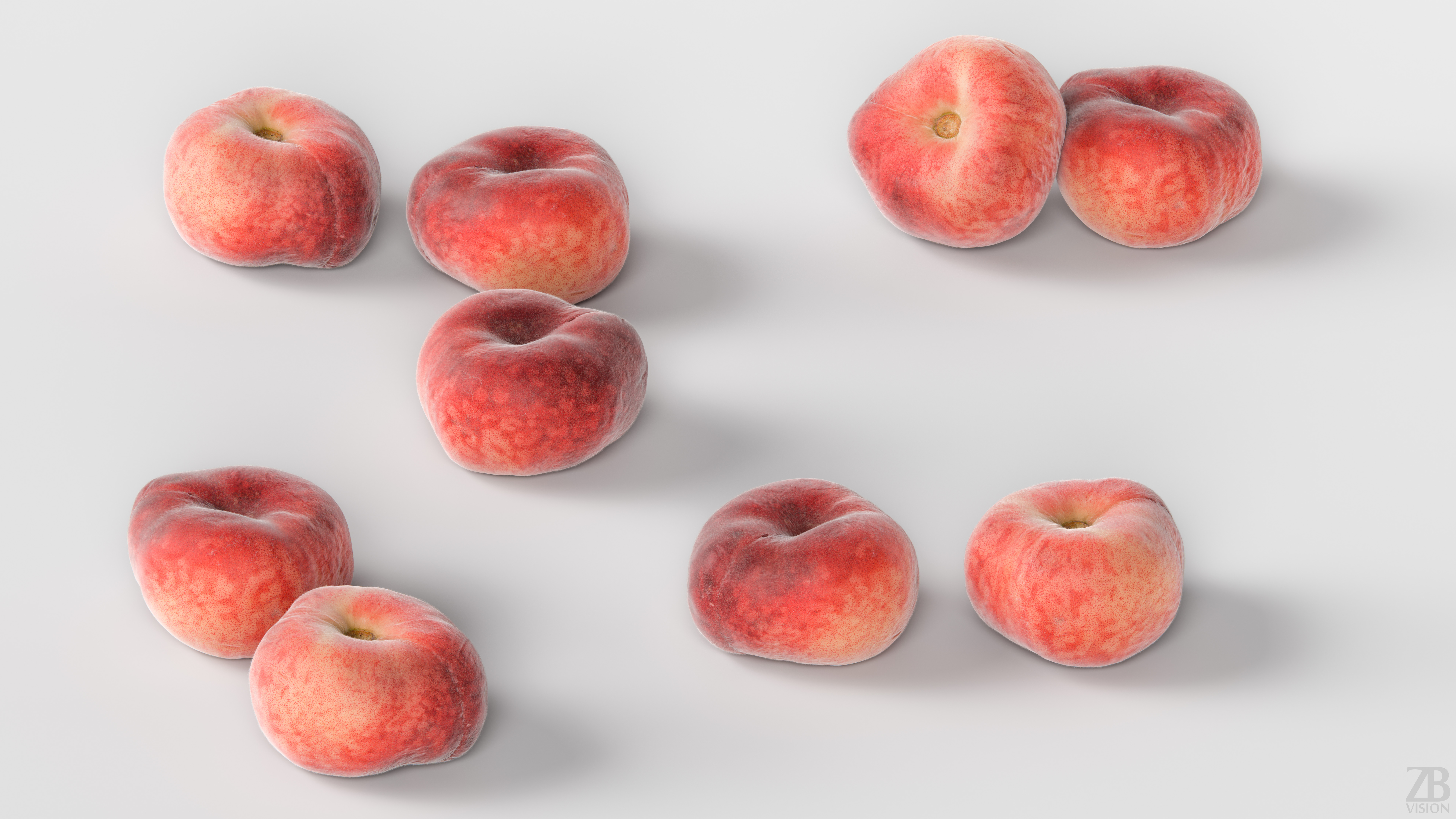 This is a 3d model of a doughnut peach, aka paraguayo flat peach. It was scanned and prepared for photorealistic renderings, close-ups, stills, and animation. The peach model is ready to be inserted into your scene out of the box.