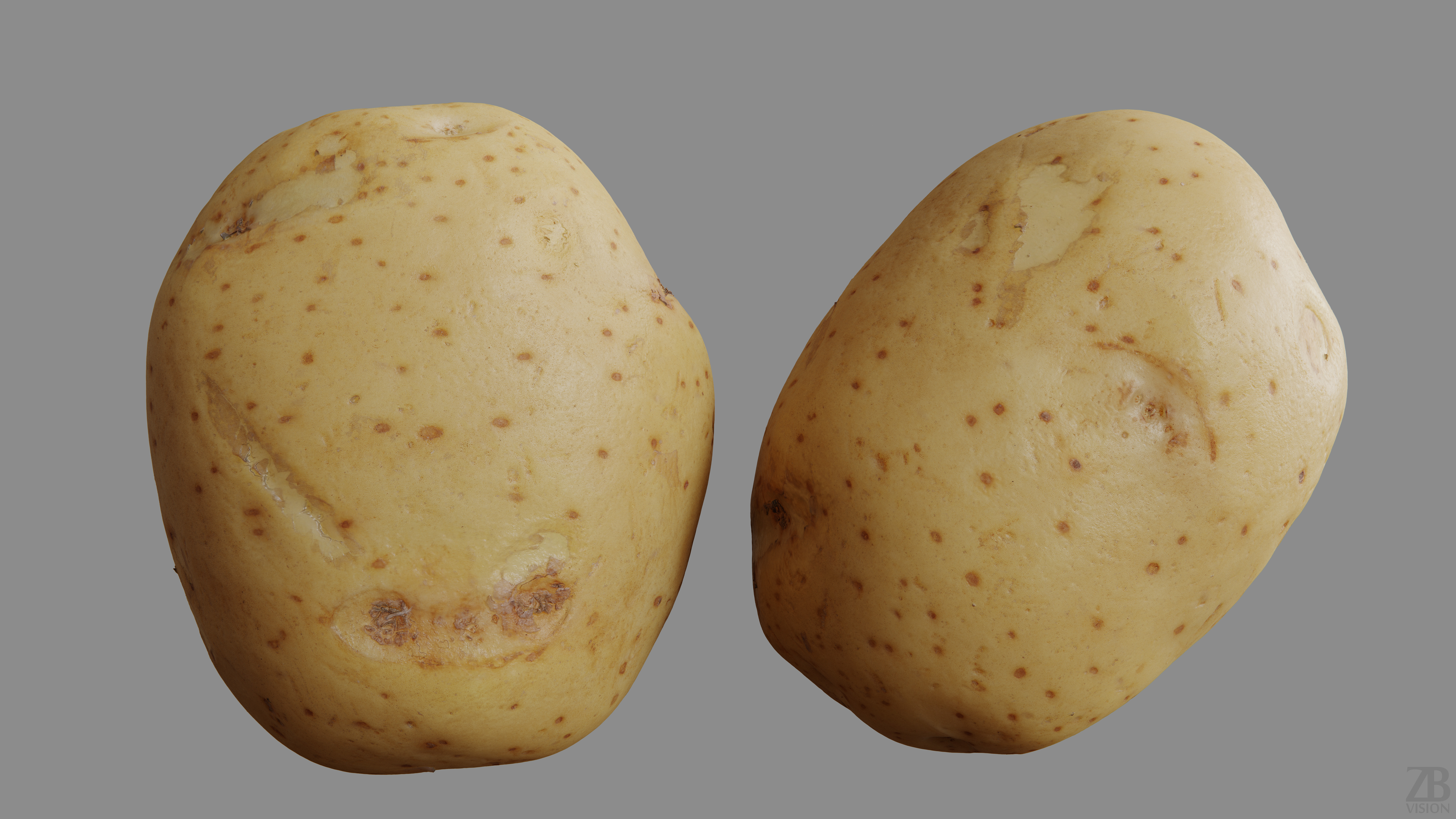 This is a 3d model of a potato. It was scanned and prepared for photorealistic renderings, close-ups, stills, and animation. The potato model is ready to be inserted into your scene out of the box.