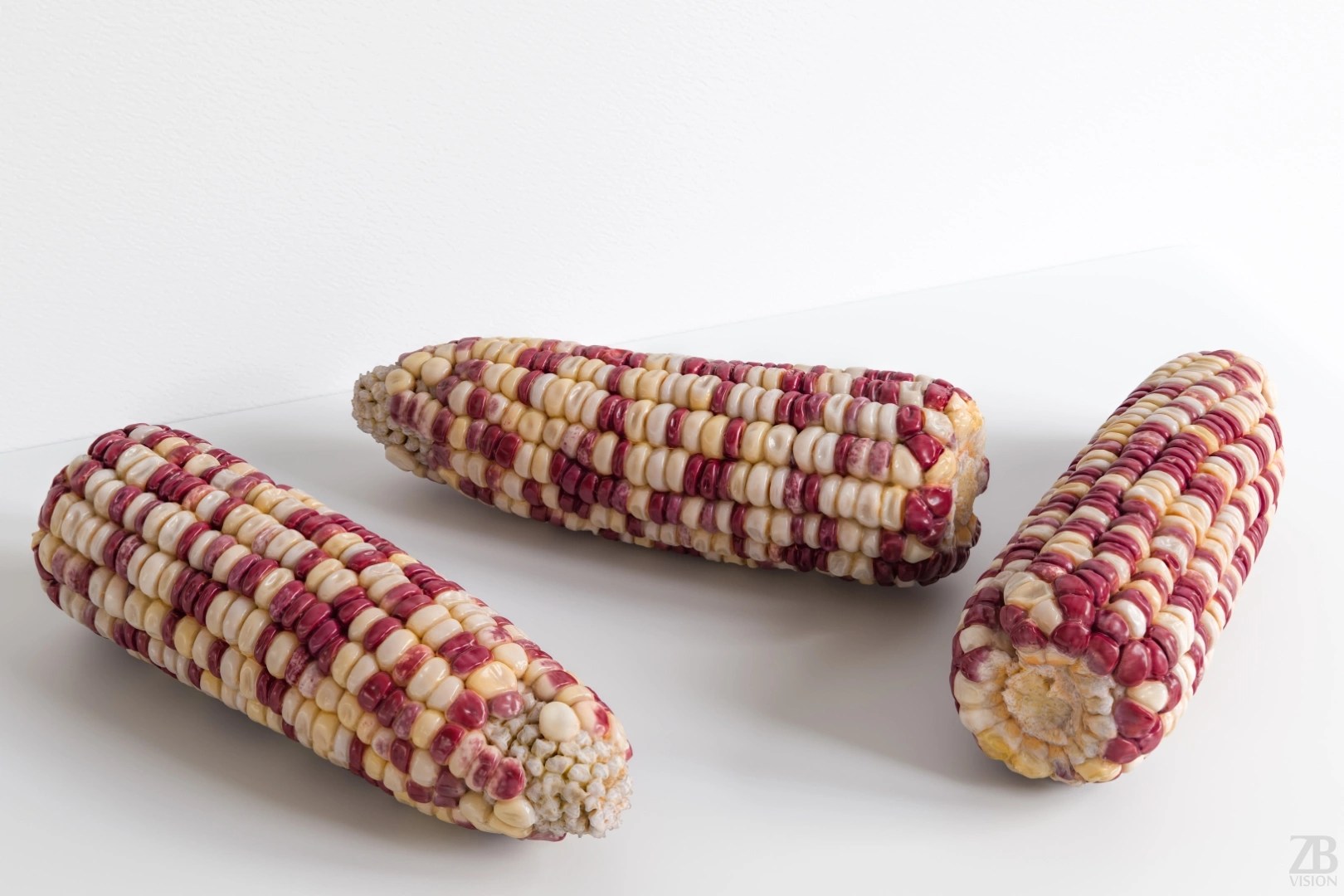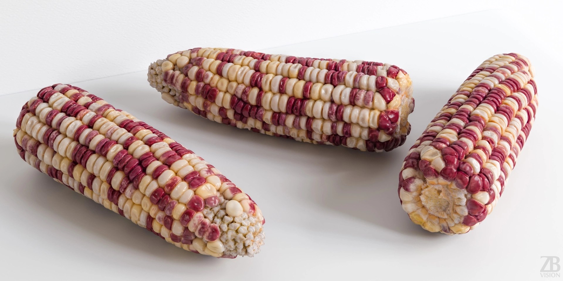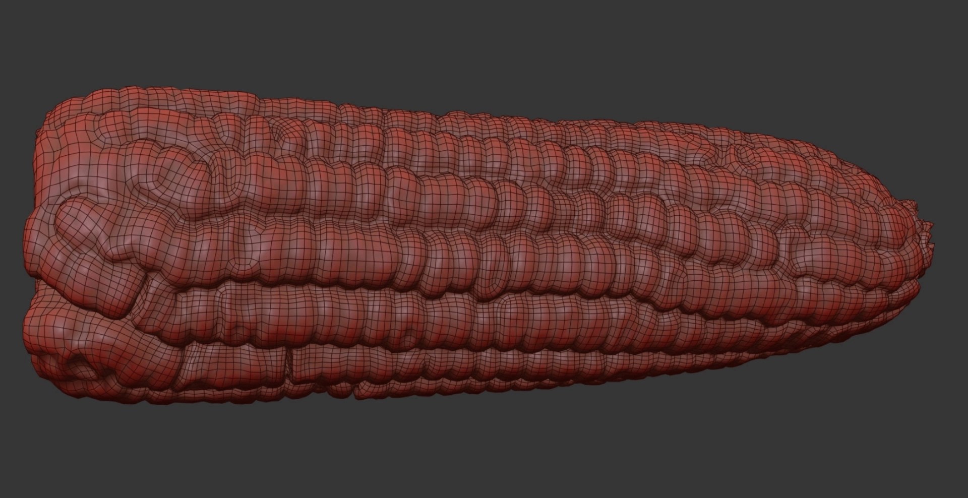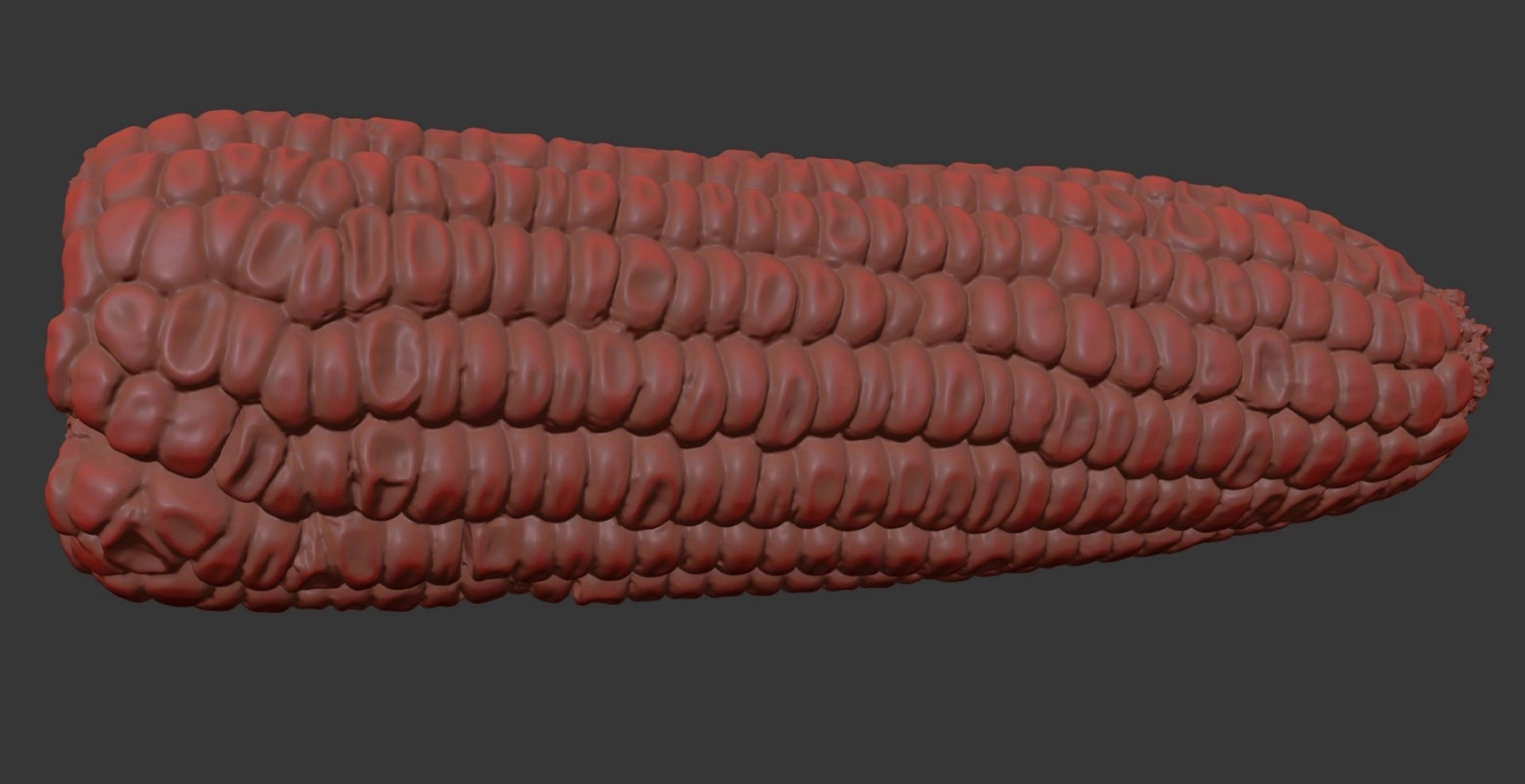 Photorealistic 3D model of a waxy corn cob.
