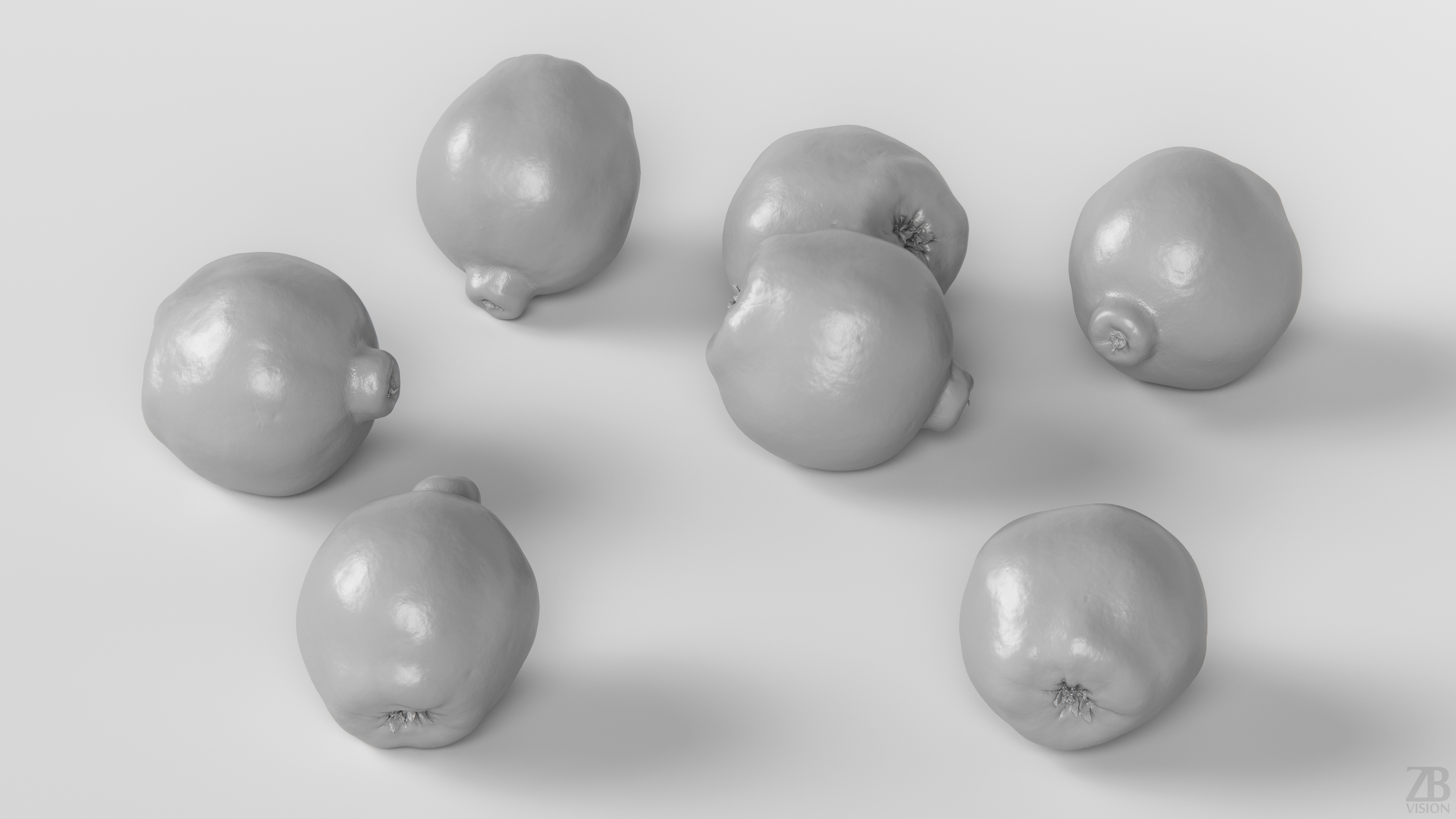 6 maps are supplied with this model. Textures supplied are in JPG format and are in 2K, 4K, and 8K resolution. The texture maps include ao, diffuse, glossiness, roughness, normal, and displacement(tif). The quince model is uvw unwrapped. 16K diffuse included.