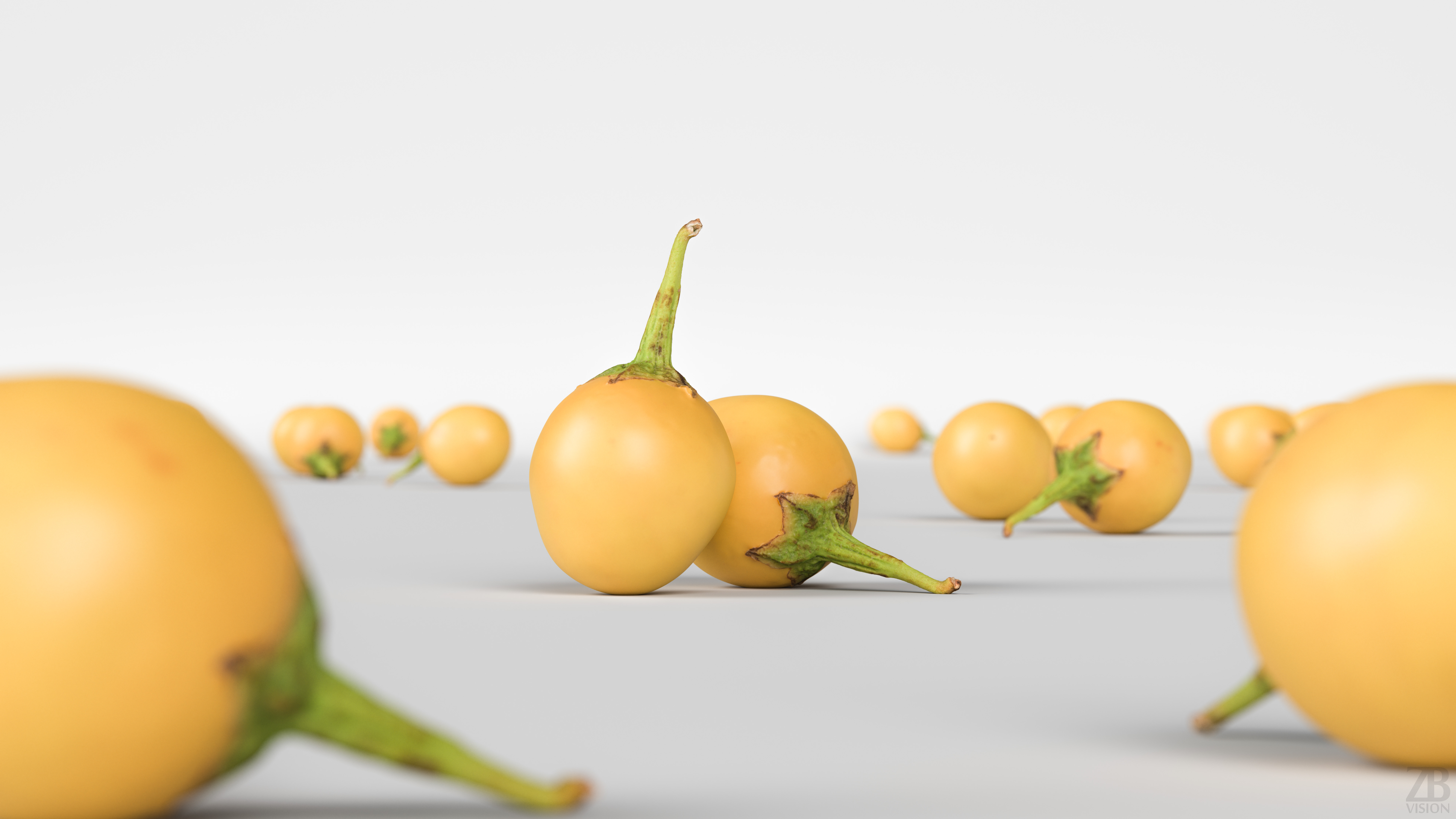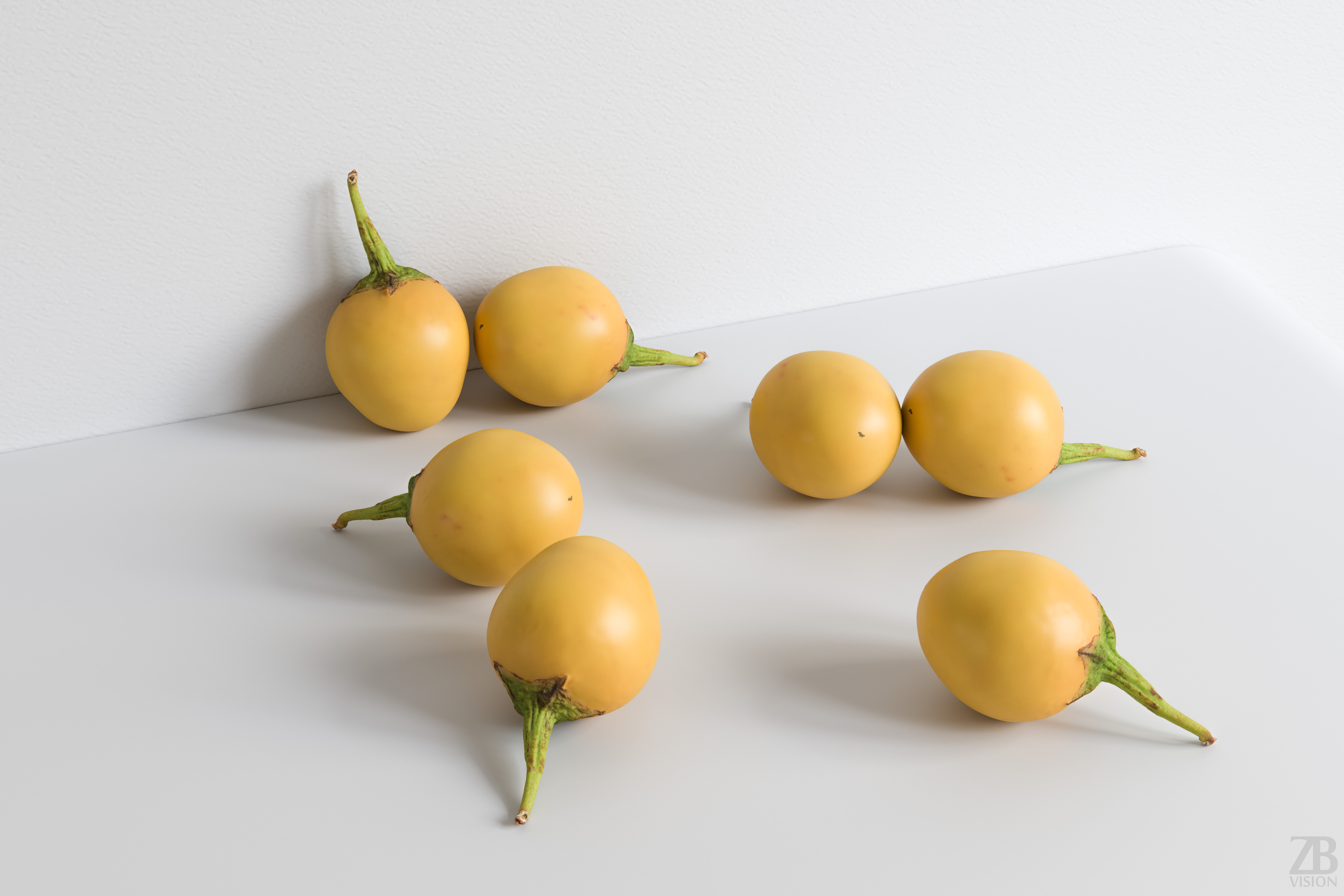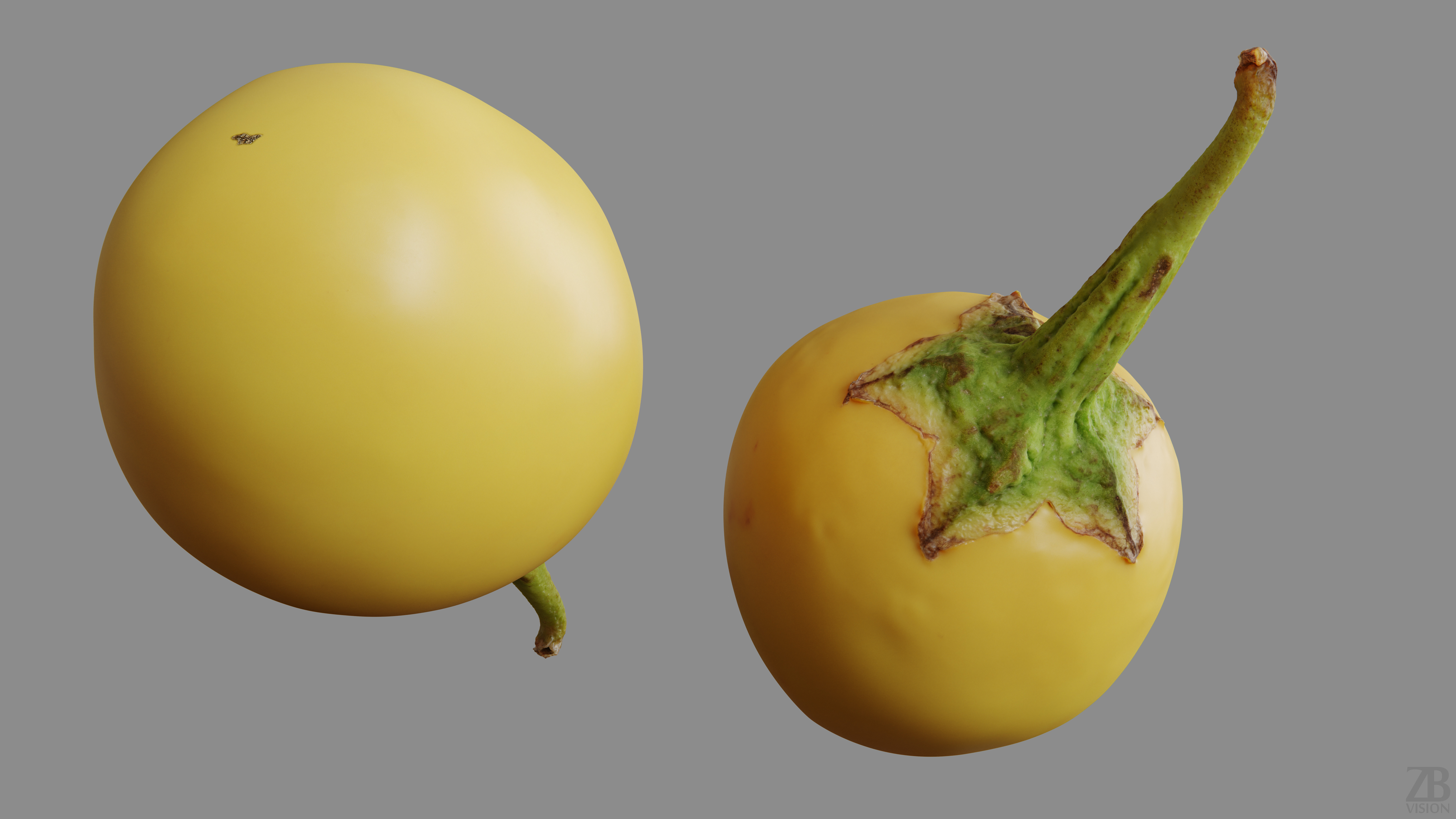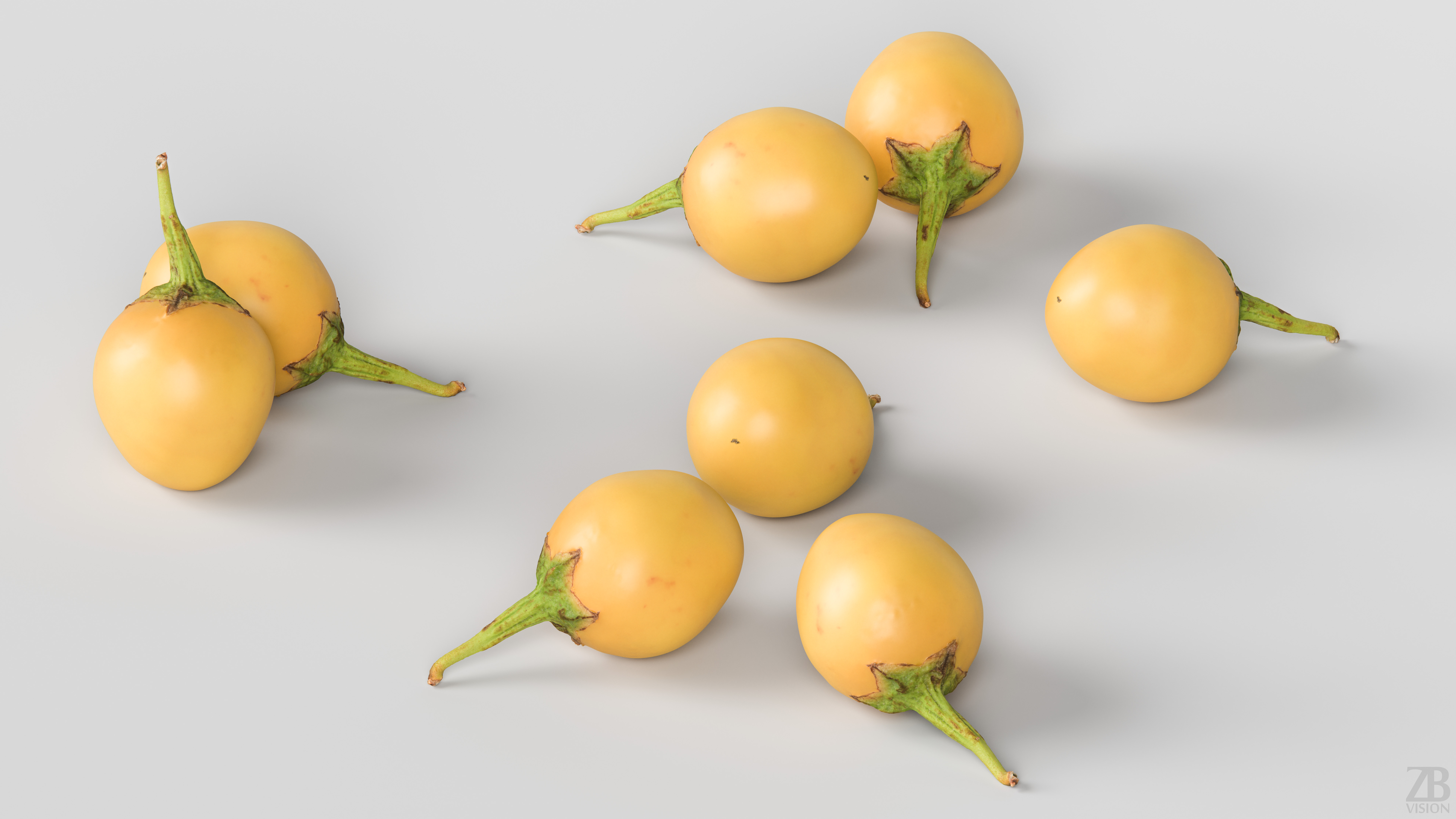 This is a 3d model of a yellow Thai eggplant. It was scanned and prepared for photorealistic renderings, close-ups, stills, and animation. The eggplant model is ready to be inserted into your scene out of the box.