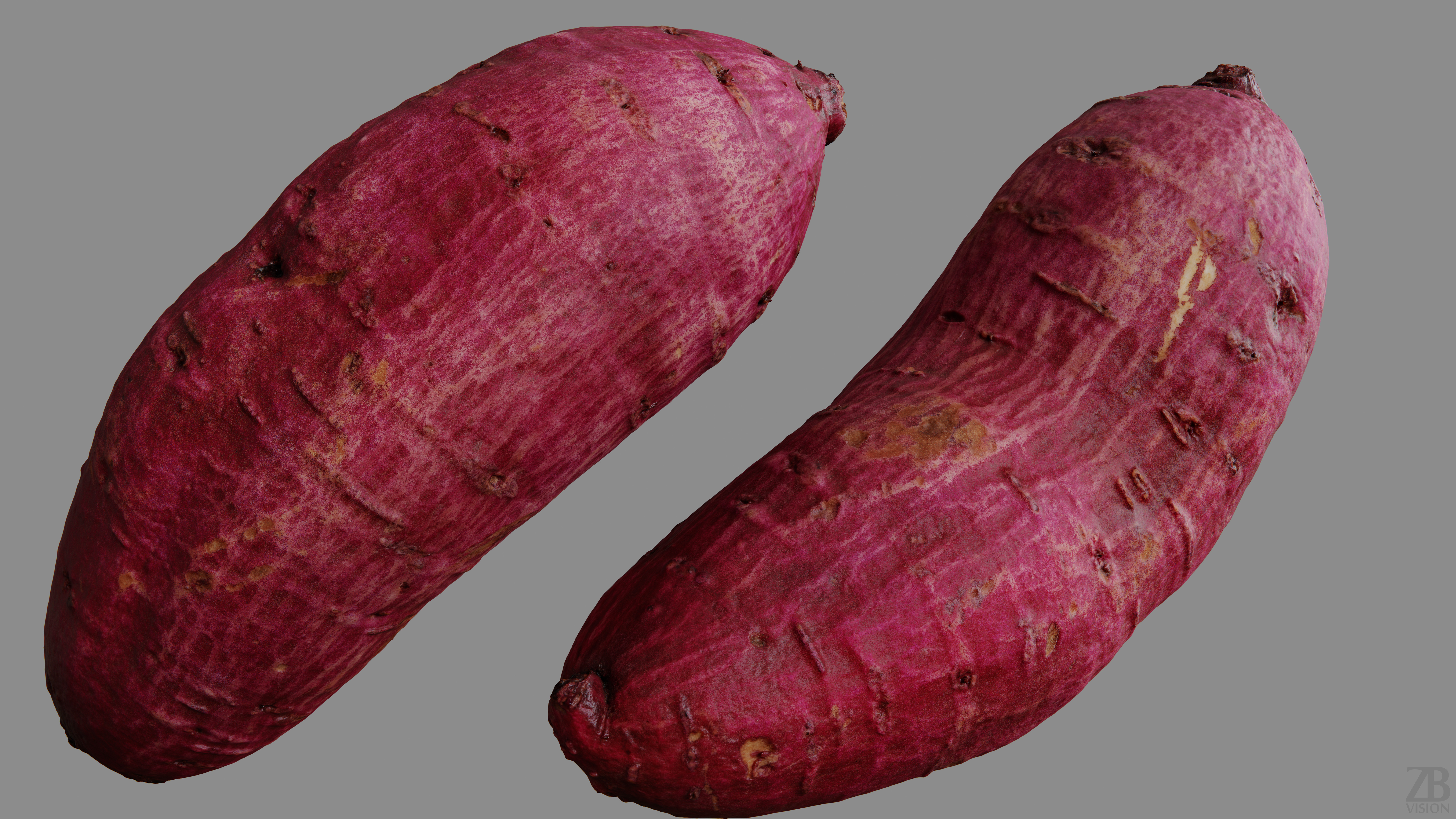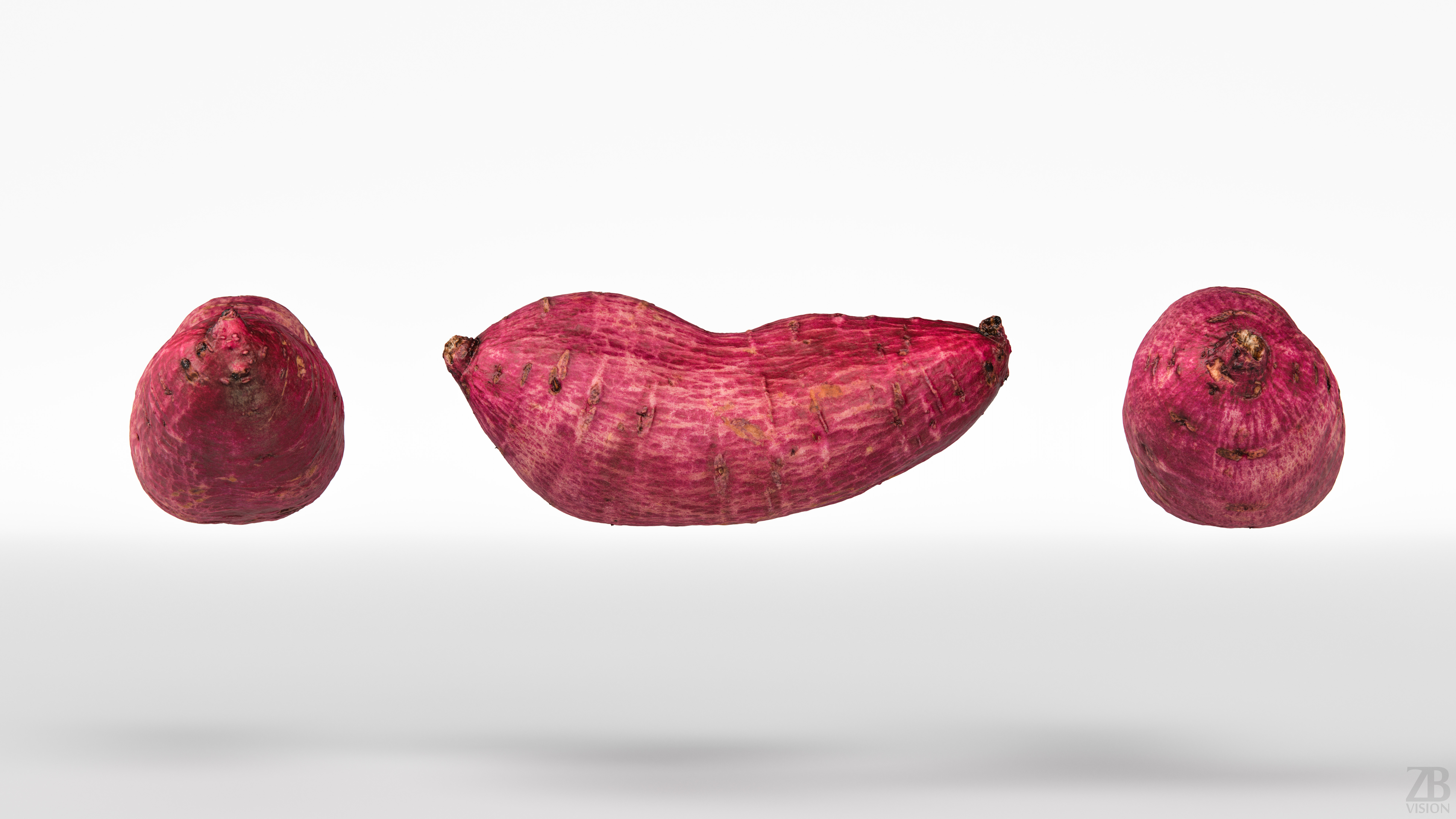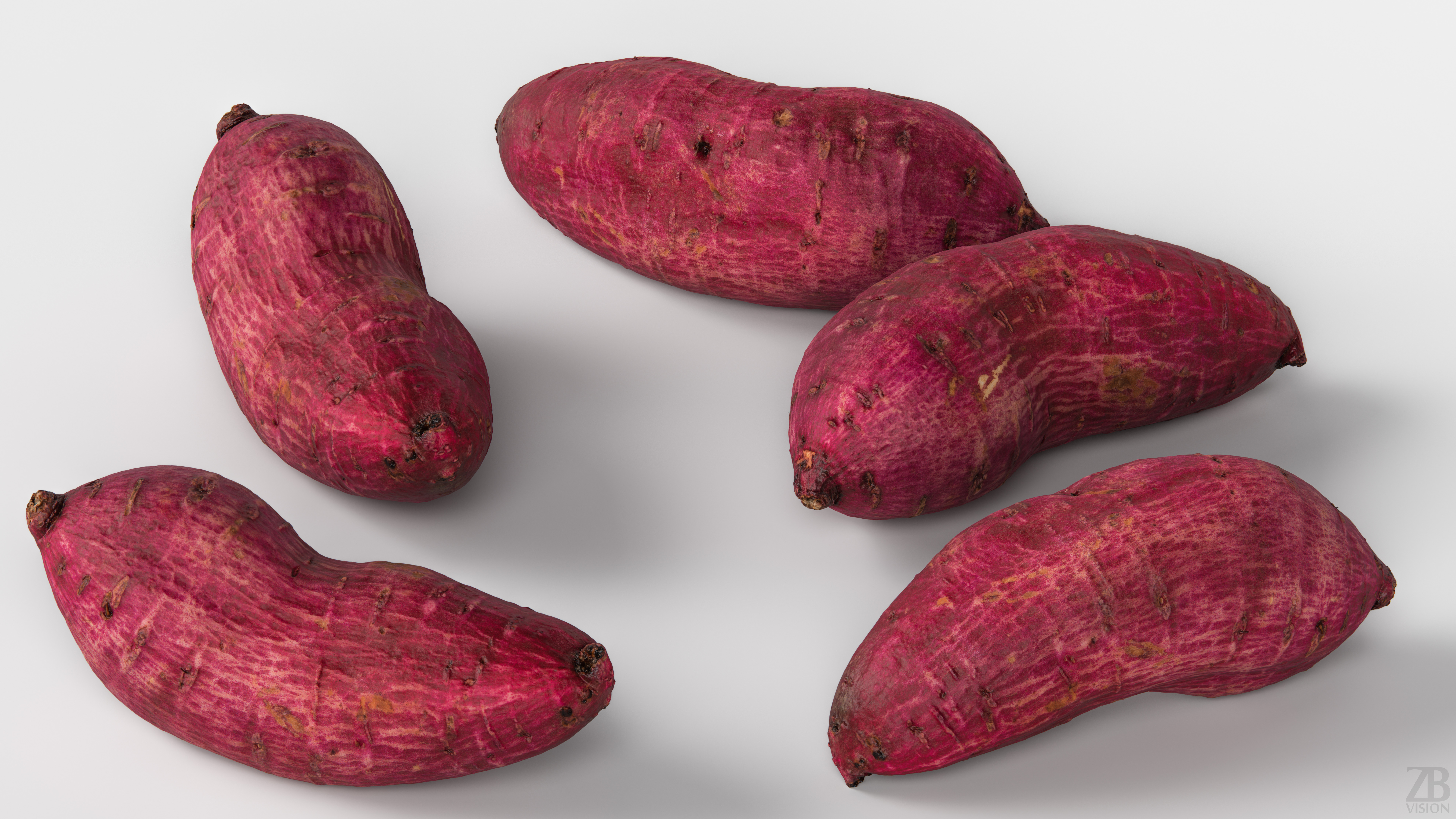 This is a 3d model of a red sweet potato. It was scanned and prepared for photorealistic renderings, close-ups, stills, and animation. The potato model is ready to be inserted into your scene out of the box.