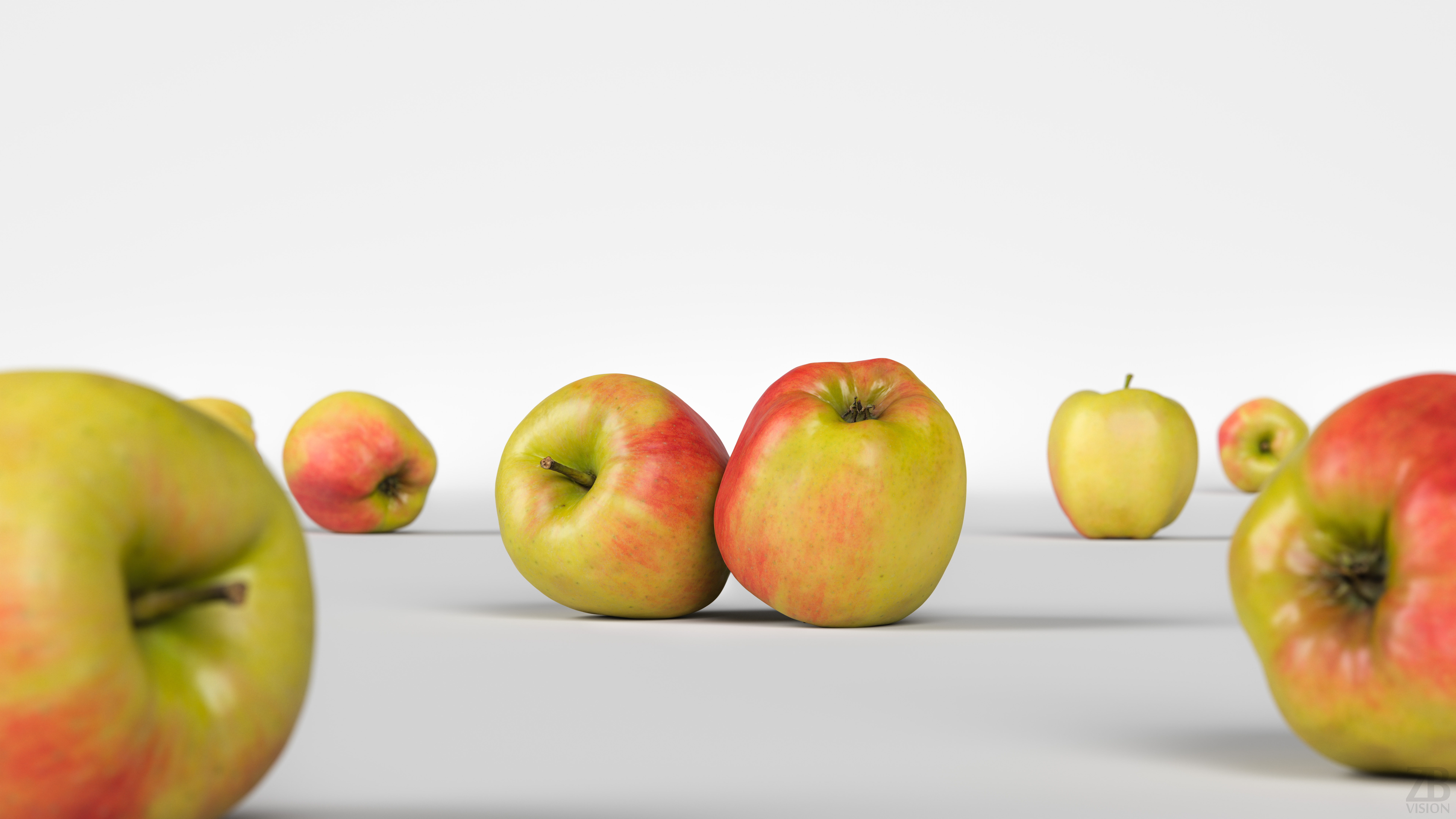 All preview images were rendered with Corona Renderer. You will get only the apple, not the scenes used for preview renders. Please also take into consideration that the preview images are the result of the post-production and the look of the apple 3d model in your scene may differ due to the specific settings of your 3d setup. The product is ready to render out-of-the-box. Please note that the lights, cameras, and any background not described above objects are not included in the product. The model is clean and alone in the provided files, centered at the origin, and has a real-world scale.