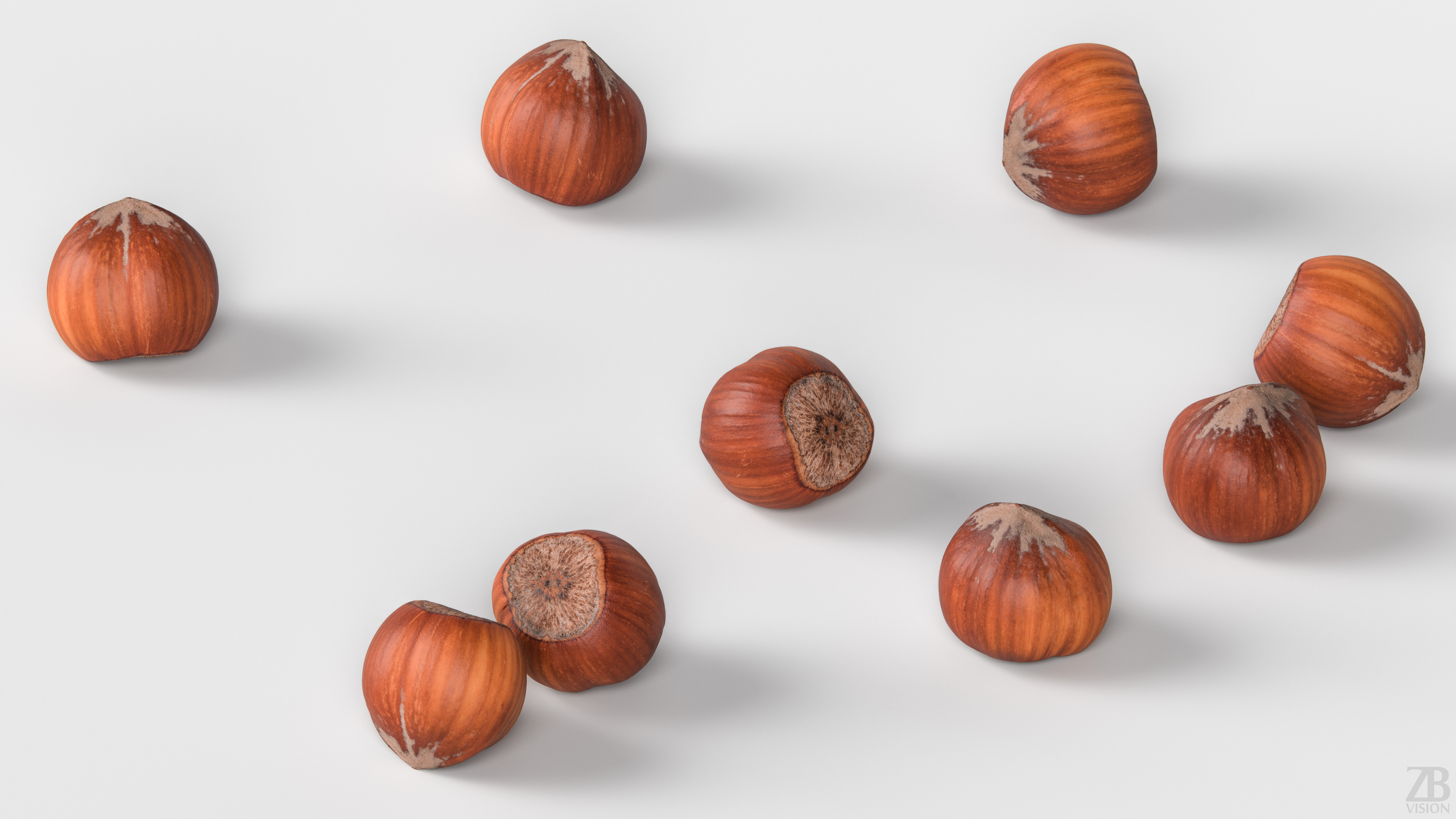 This is a 3d model of a hazelnut. It was scanned and prepared for photorealistic renderings, close-ups, stills, and animation. The hazelnut model is ready to be inserted into your scene out of the box.