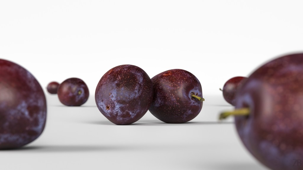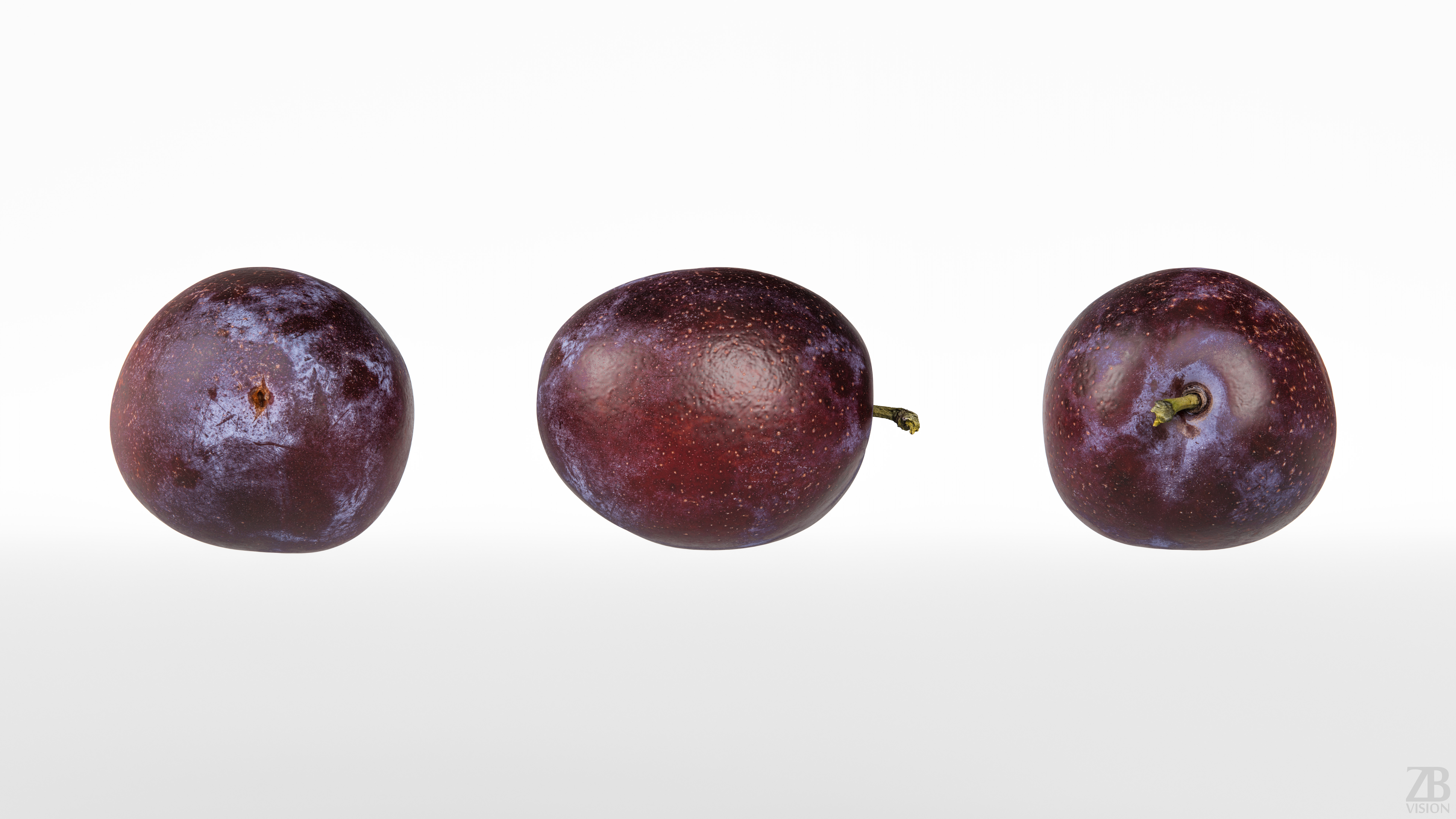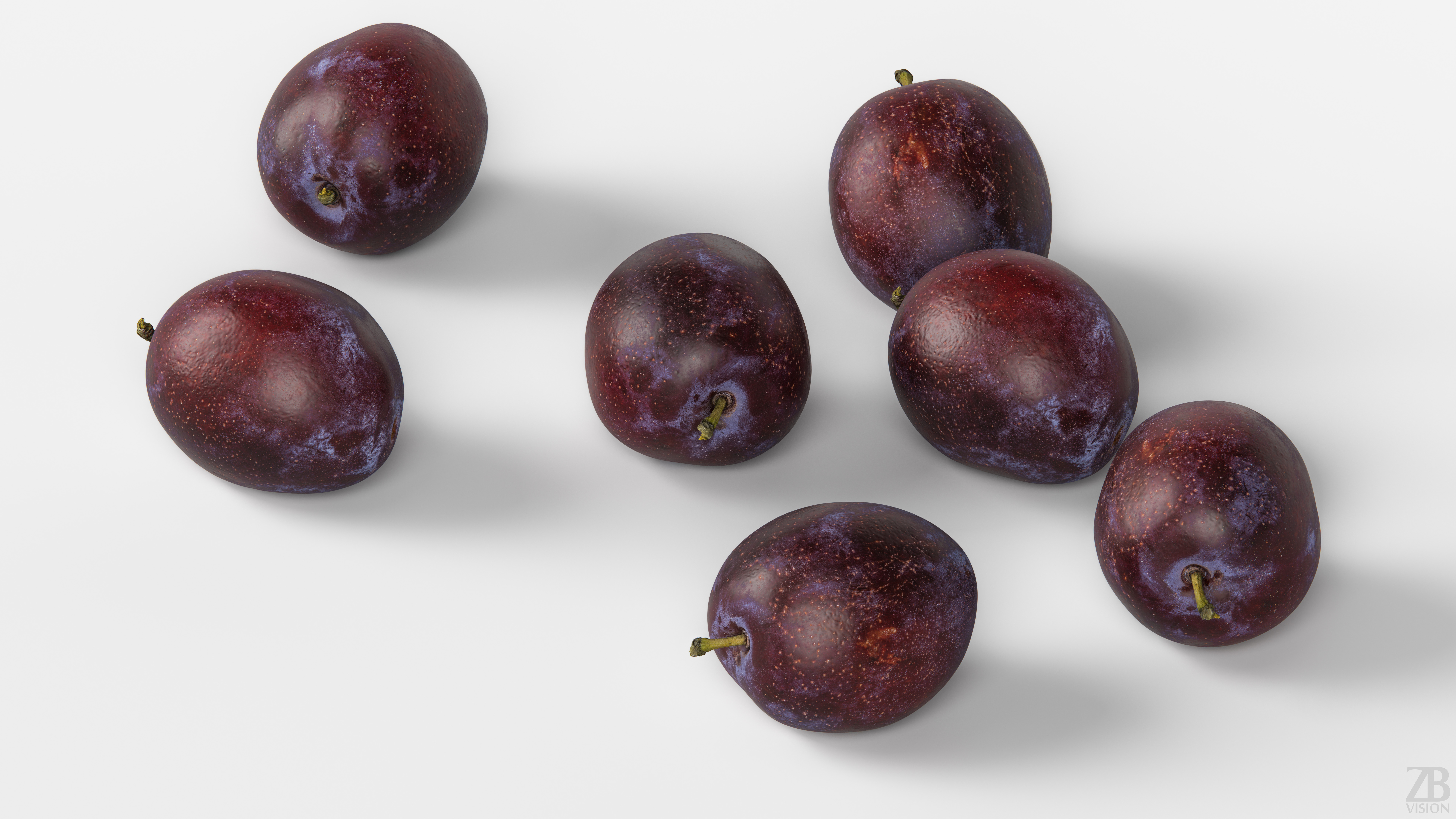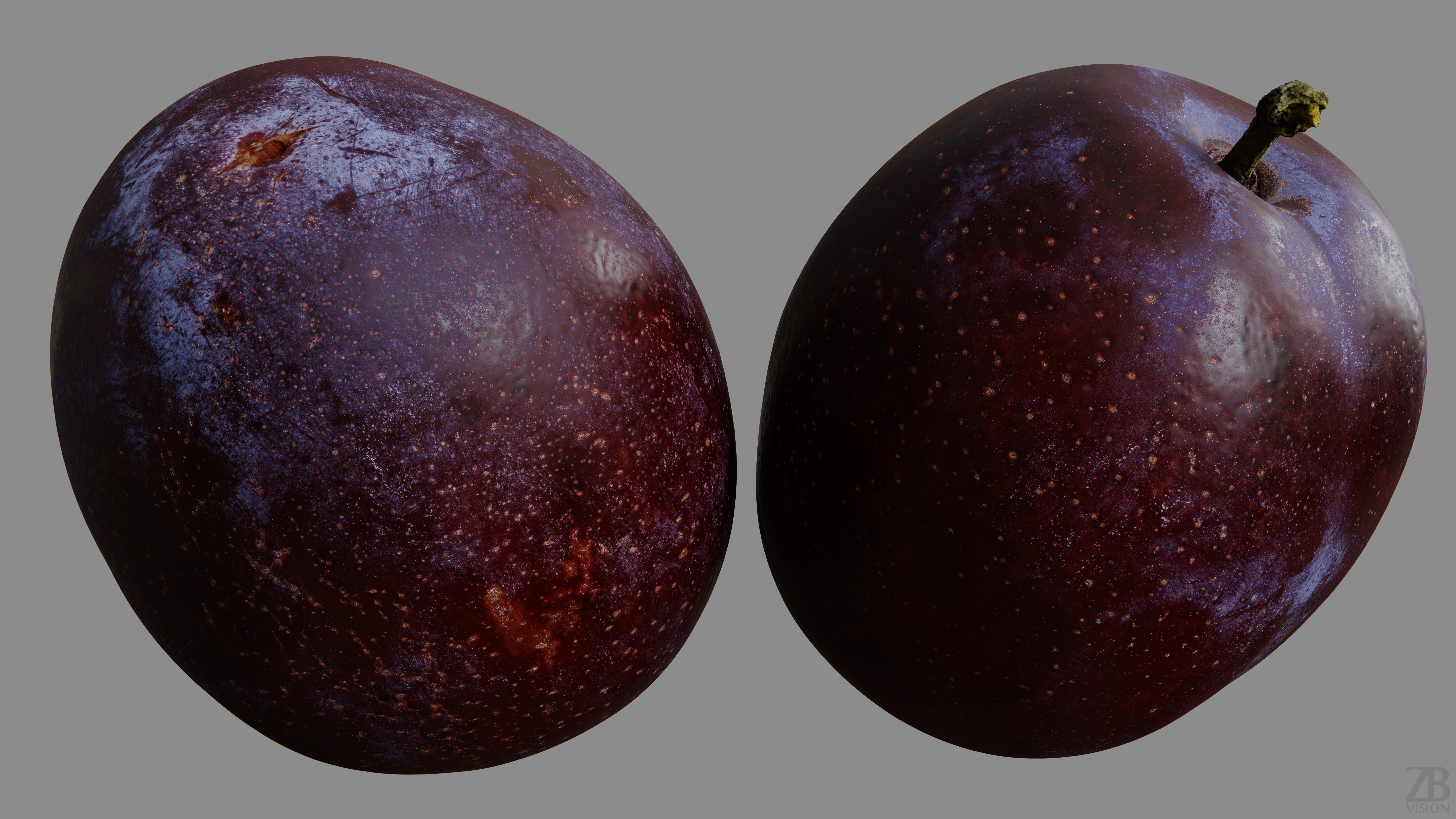 This is a 3d model of a plum. It was scanned and prepared for photorealistic renderings, close-ups, stills, and animation. The plum model is ready to be inserted into your scene out of the box.