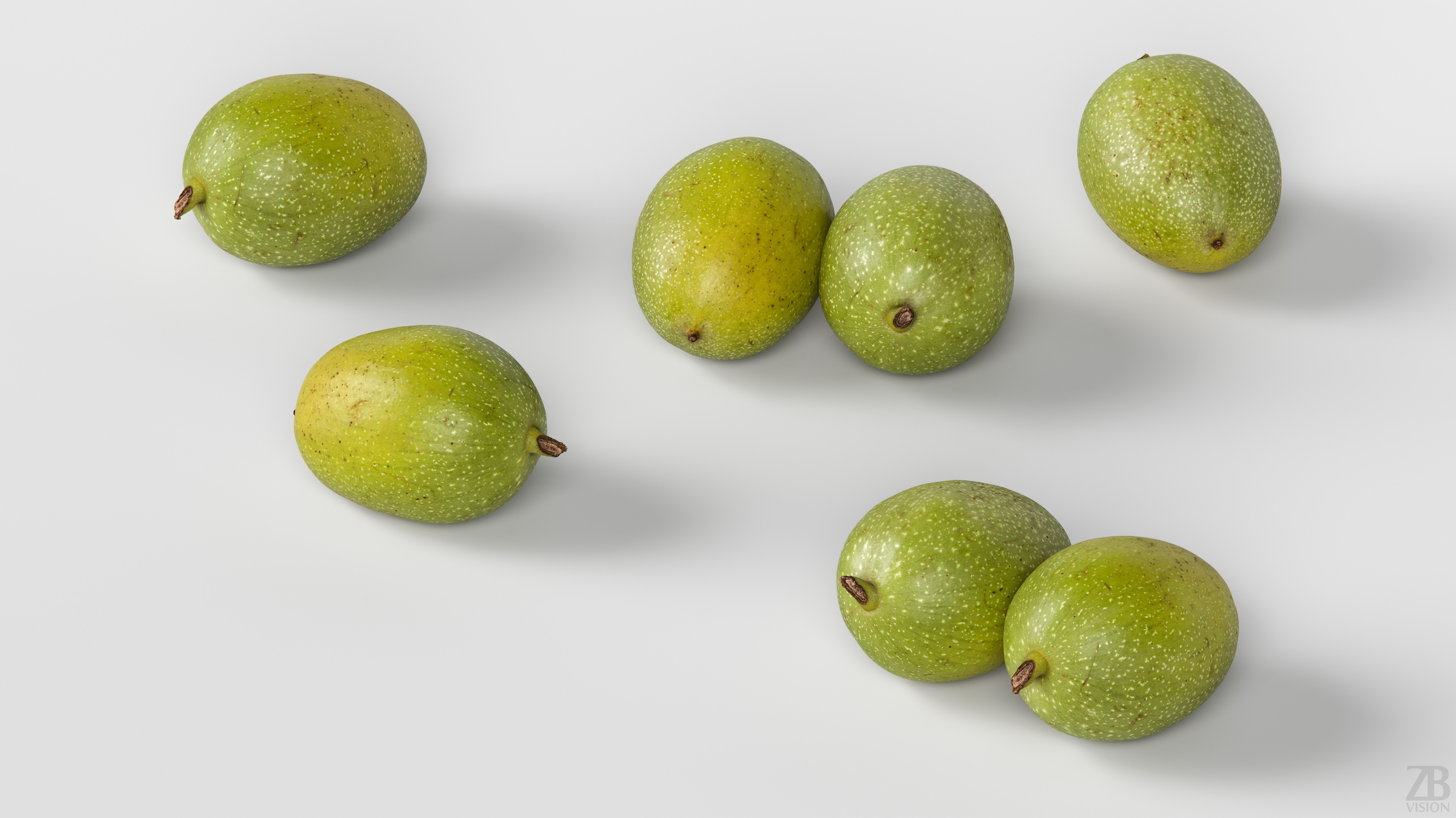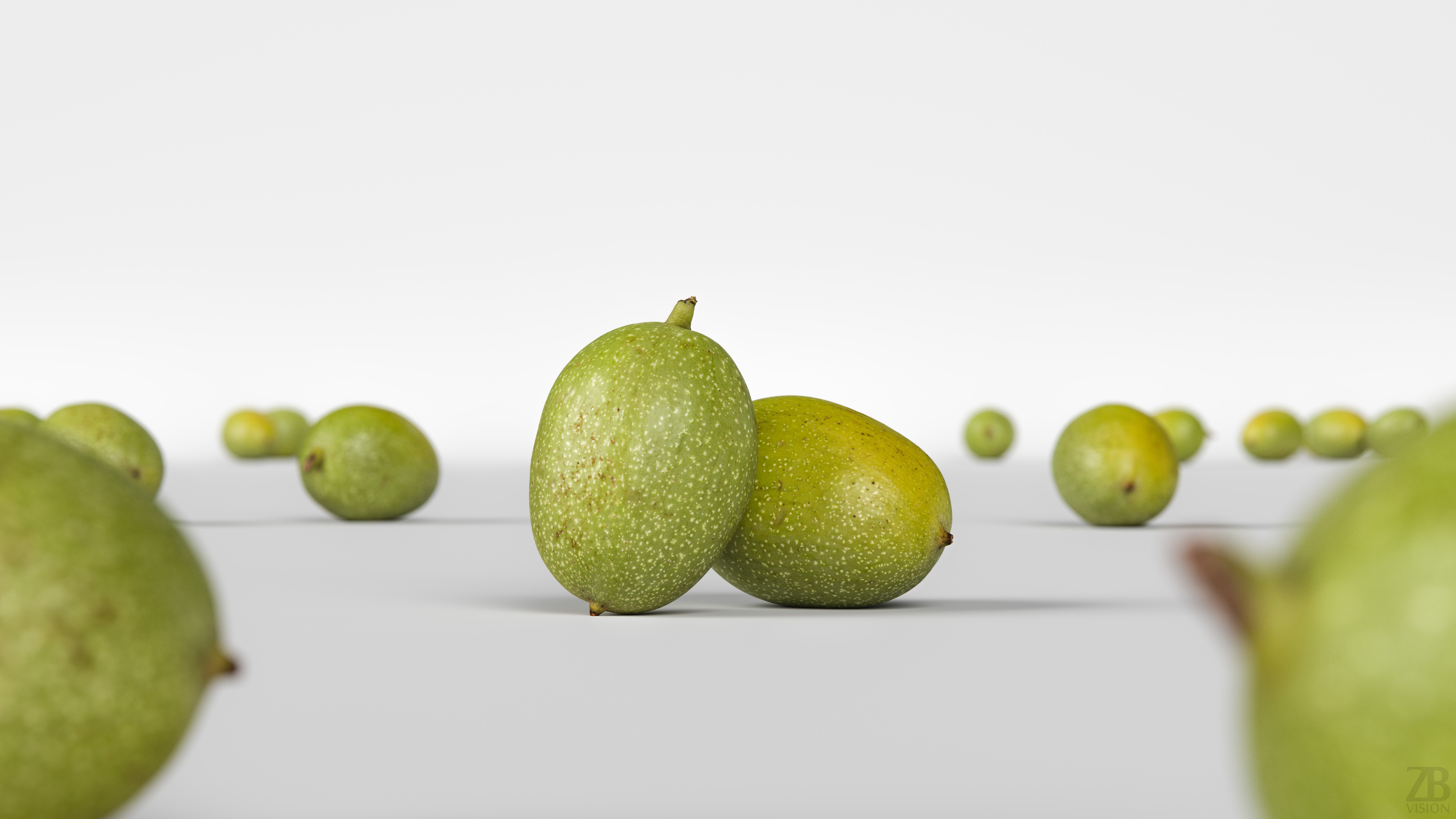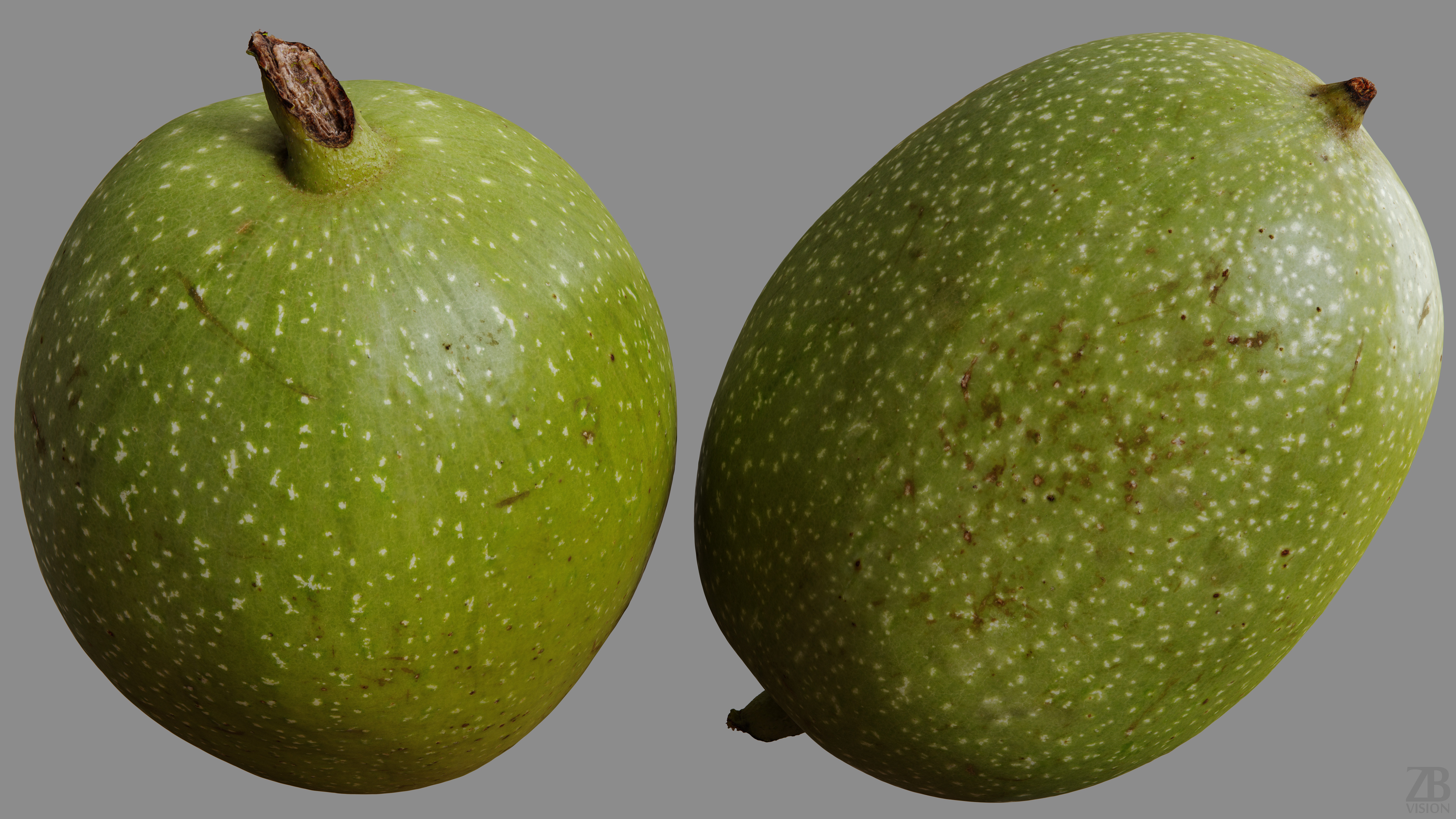This is a 3d model of a green fresh walnut. It was scanned and prepared for photorealistic renderings, close-ups, stills, and animation. The walnut model is ready to be inserted into your scene out of the box.