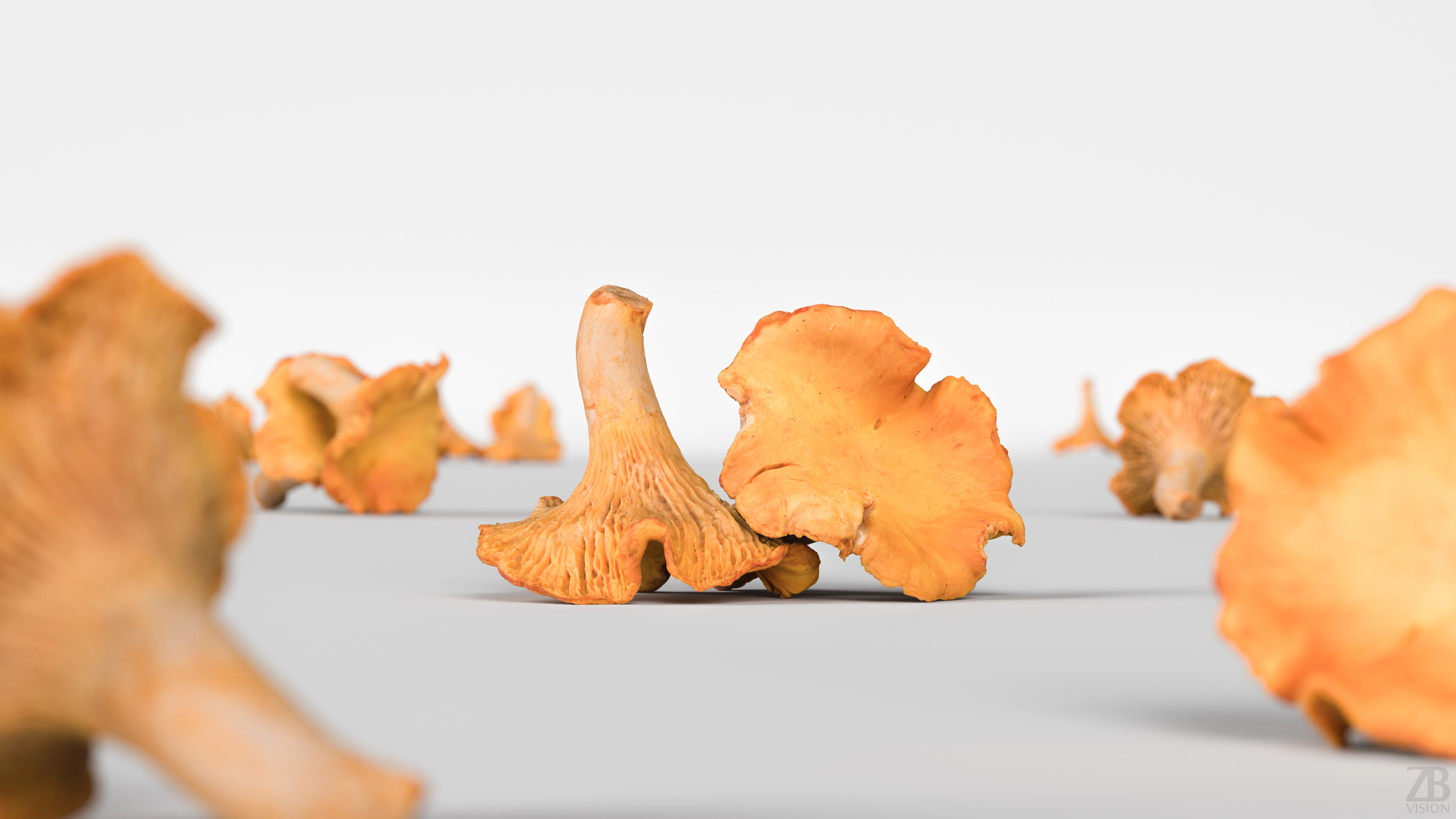 Photorealistic 3D model of a mushroom, chantarelle variety.