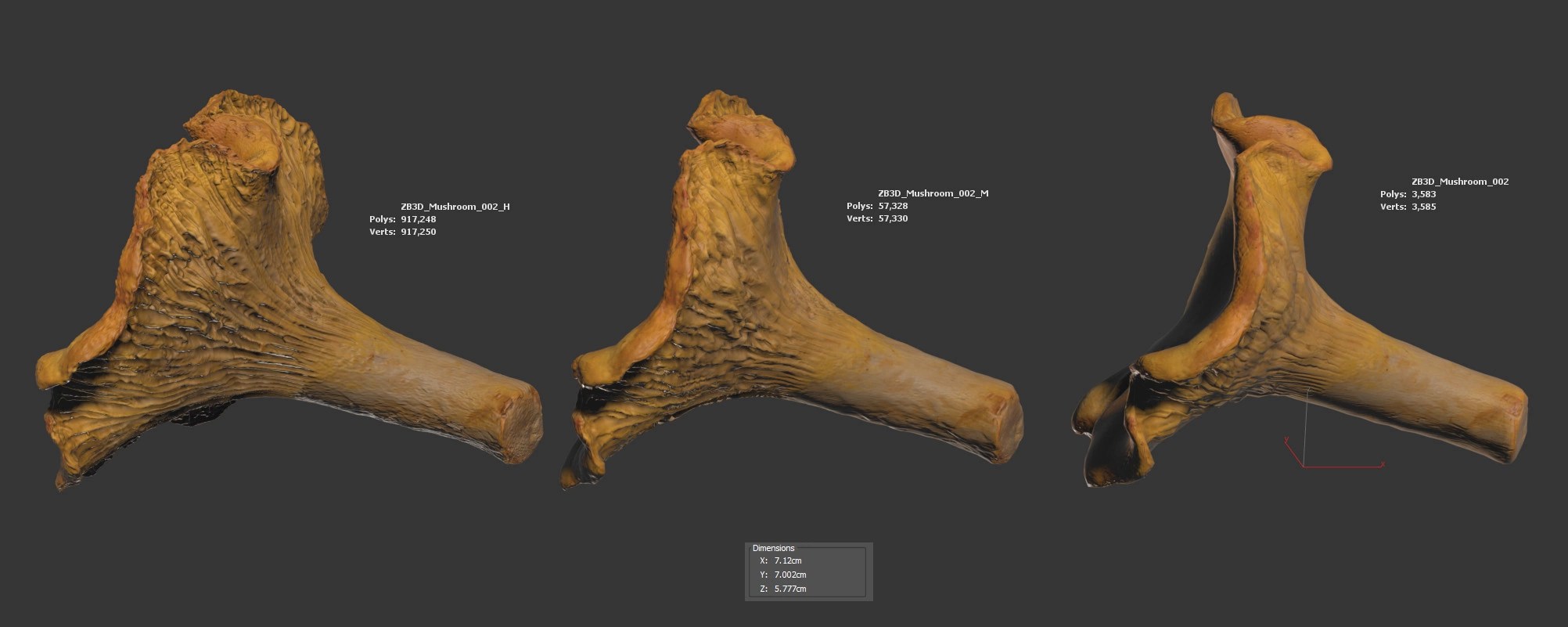 Enhance your visualizations, product designs, or still-life projects with this ultra-realistic 3D mushroom model. Meticulously photogrammetry scanned and textured, it boasts multiple levels of detail (3K, 57K, 917K polycounts) for close-ups and broader scenes.