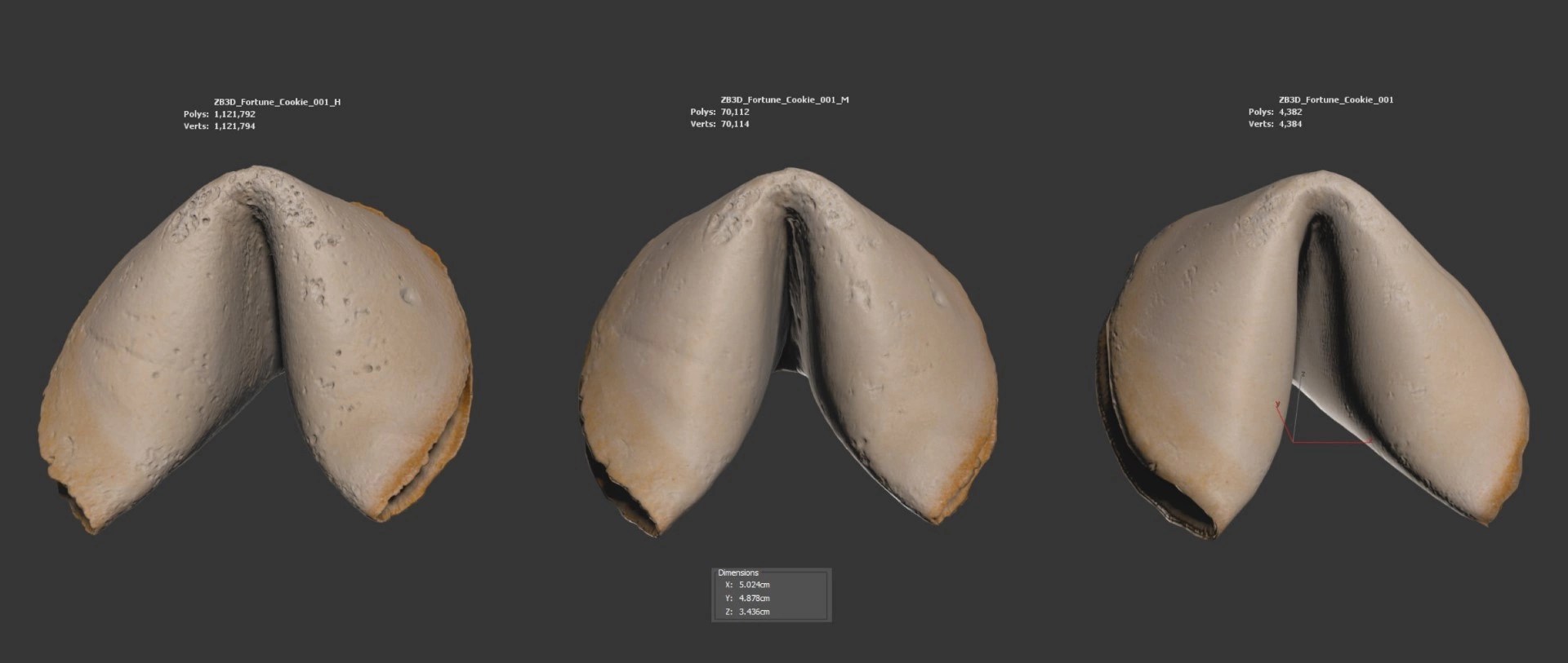 Enhance your visualizations, product designs, or still-life projects with this ultra-realistic 3D fortune cookie model. Meticulously photogrammetry scanned and textured, it boasts multiple levels of detail (4K, 70K, and 1121K polycounts) for close-ups and broader scenes.